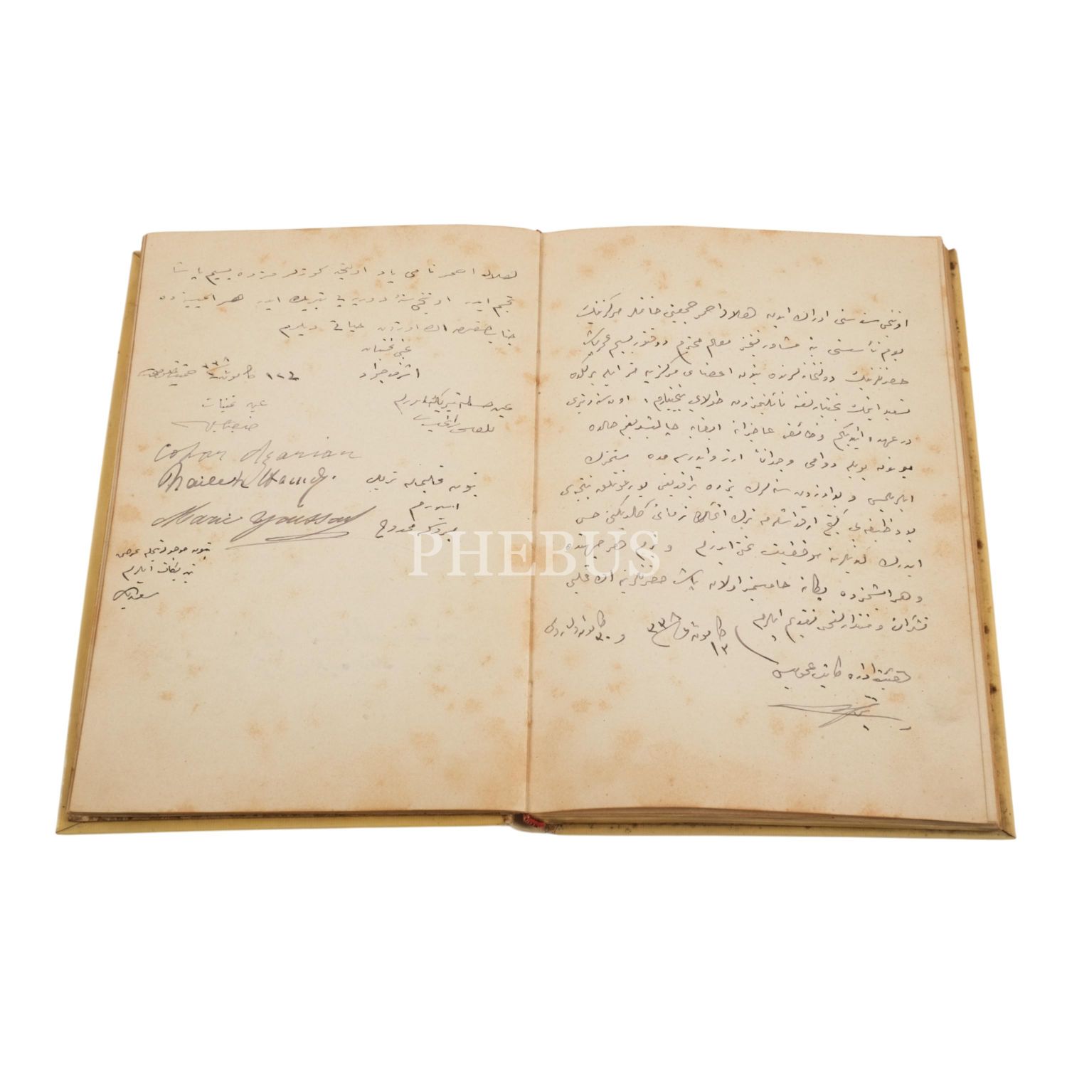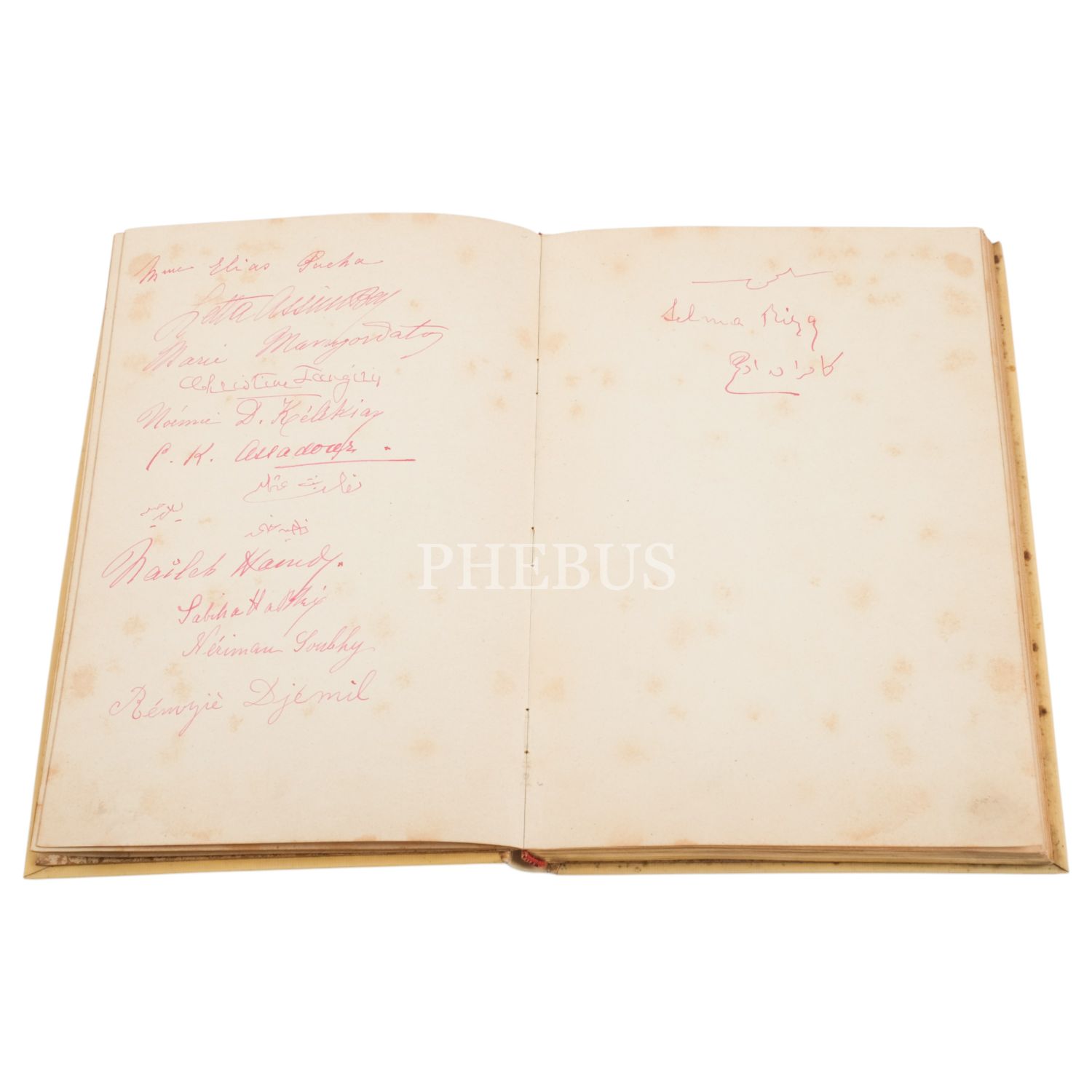 Hilal-i Ahmer Hanımlar Merkezi´nin kurucu üyelerinden birçok hanımefendinin imzasını ve Hanımlar Merkezi´nin kurulmasında öncülük eden Doktor Besim Ömer´in (Akalın) imzasını ve yazısını da içeren defter, 10 sayfa, 14x21 cm...