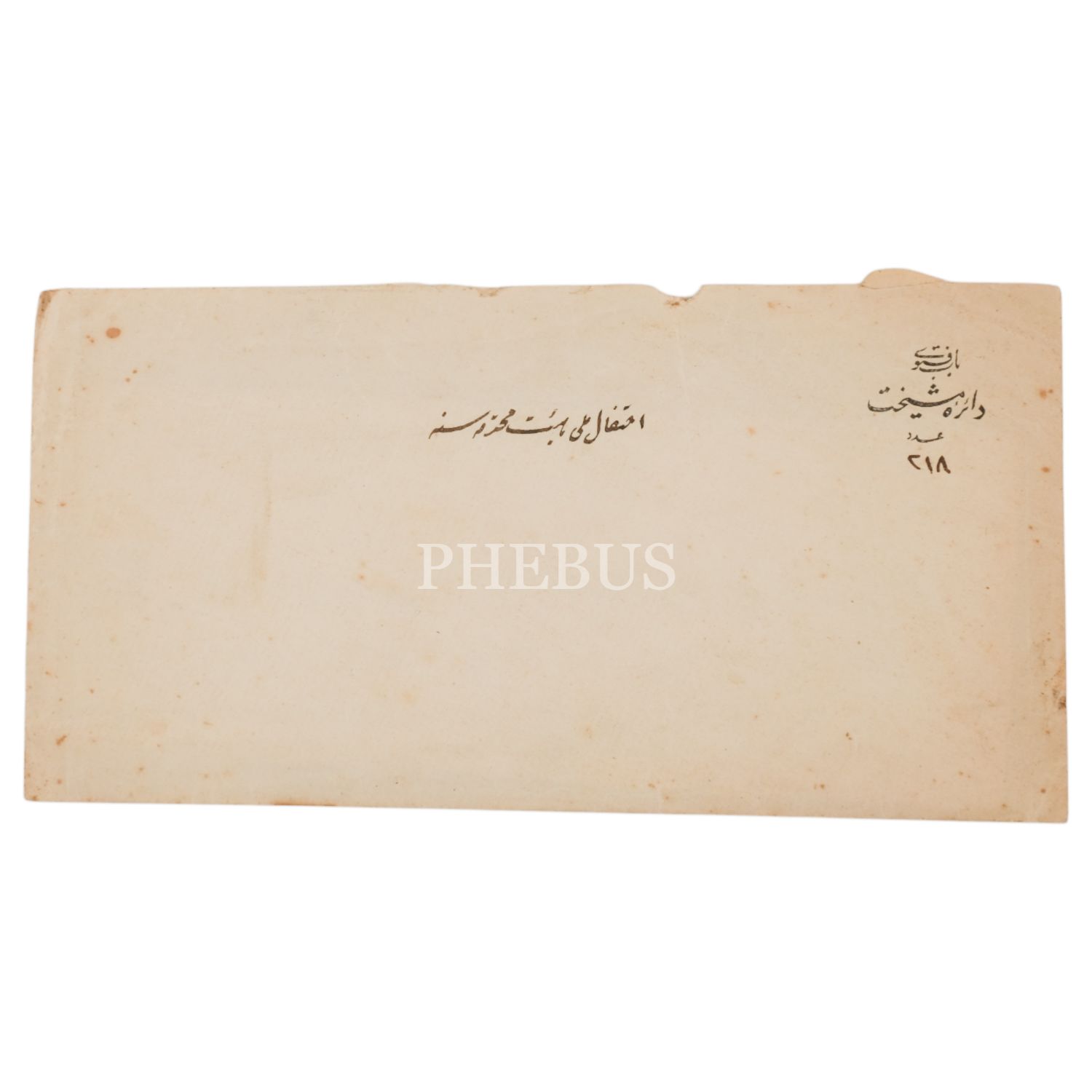 İhtiflaci Mehmed Ziya´nın düzenlediği "İstiklal-i Osmani İhtifali" isimli anma programı hakkında Şeyhülislam Musa Kazım Efendi´nin imzasını taşıyan yazı,