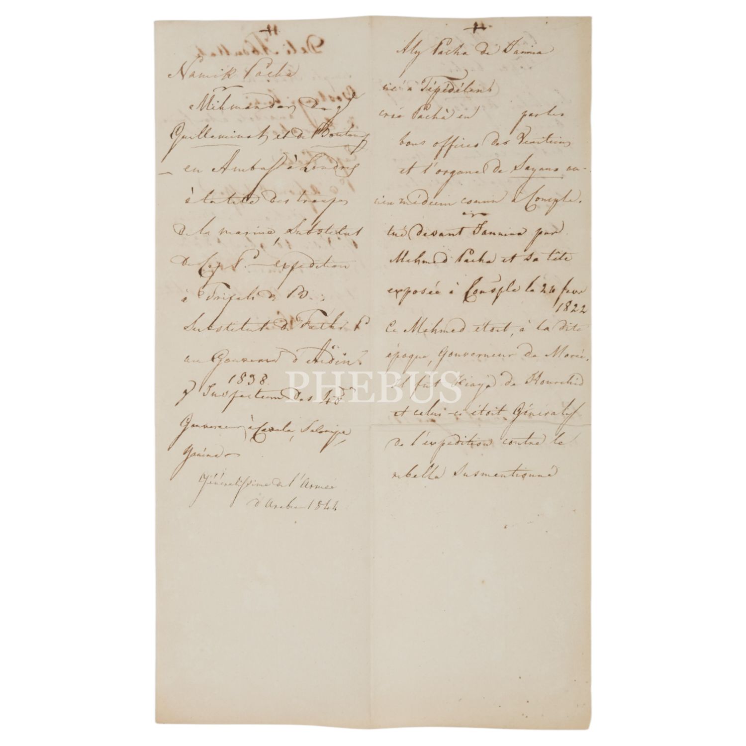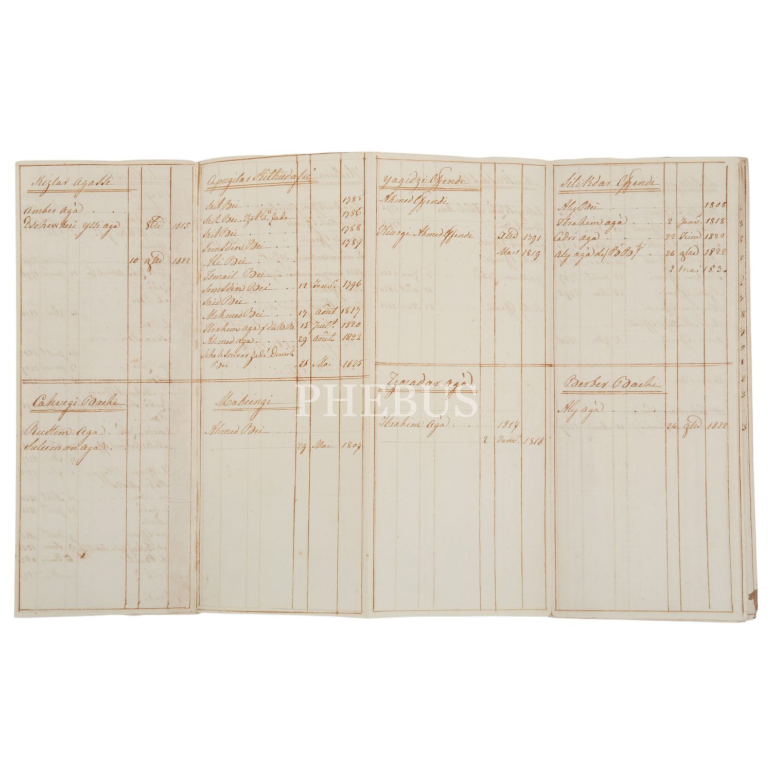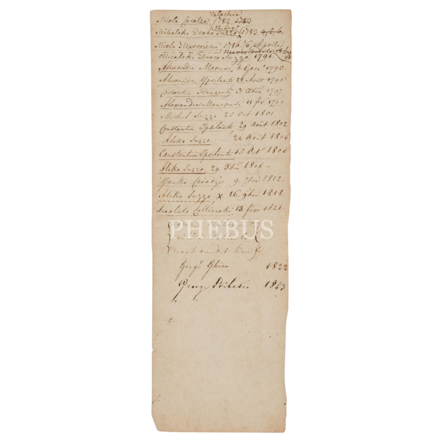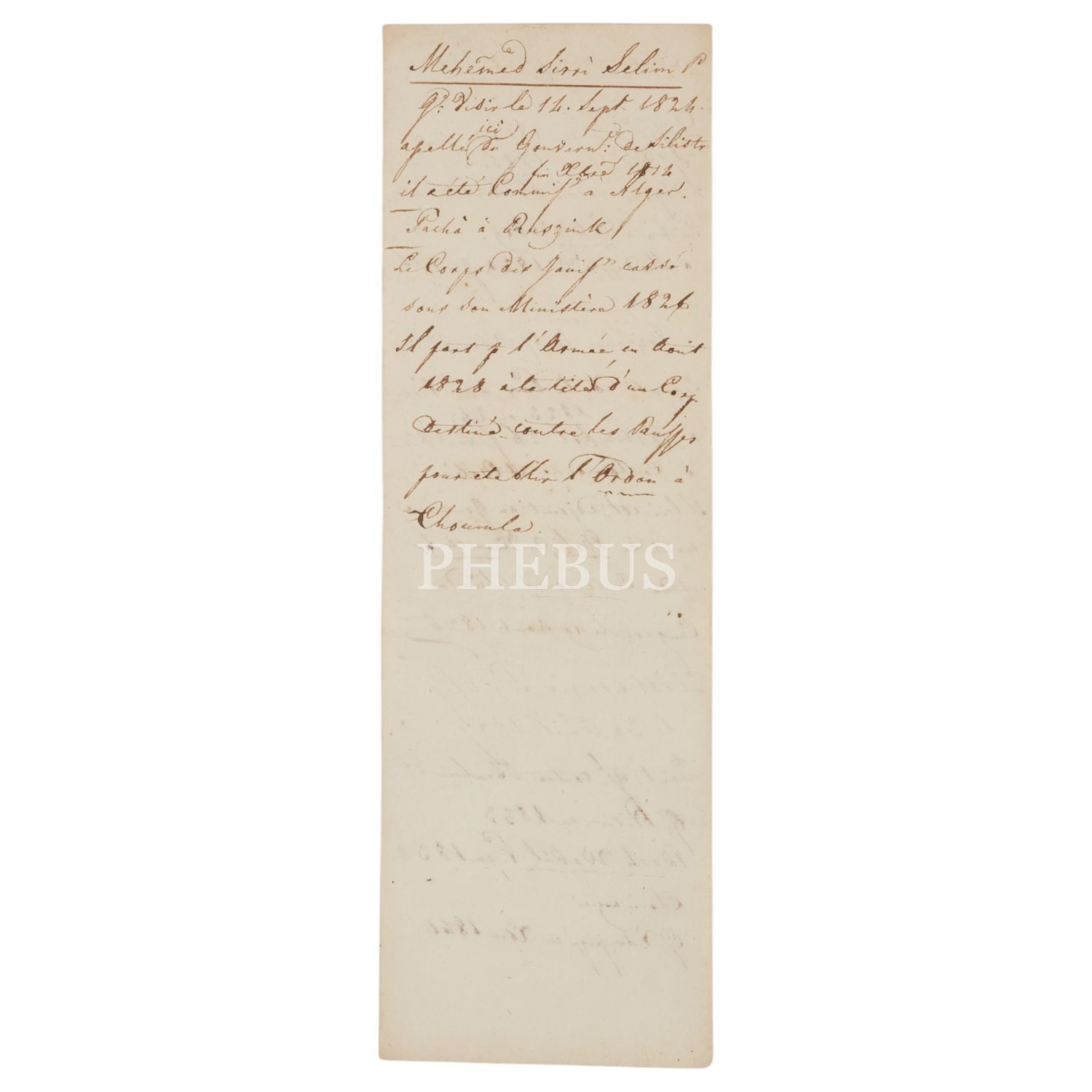 1782 yılından 1846´ya kadar, Osmanlı Devleti´nde önemli görevlerde bulunmuş şahsiyetlerin isimlerinin yer aldığı, el yazısıyla kaleme alınmış "Tableau General du Ministere Ottoman" başlıklı liste ve bu listede yer alan bazı şahsiyetlerin biyografilerinin yazılı olduğu sayfalar...