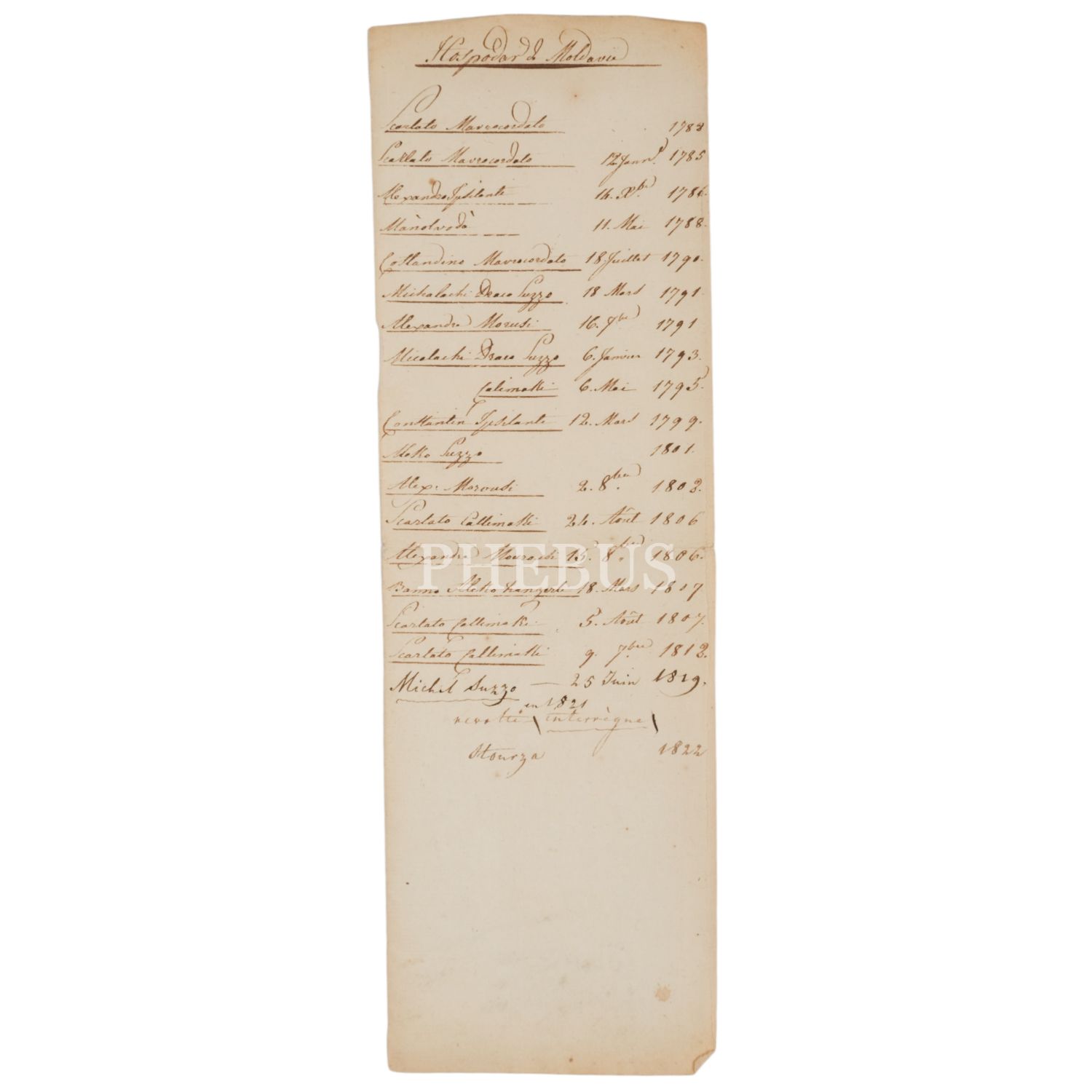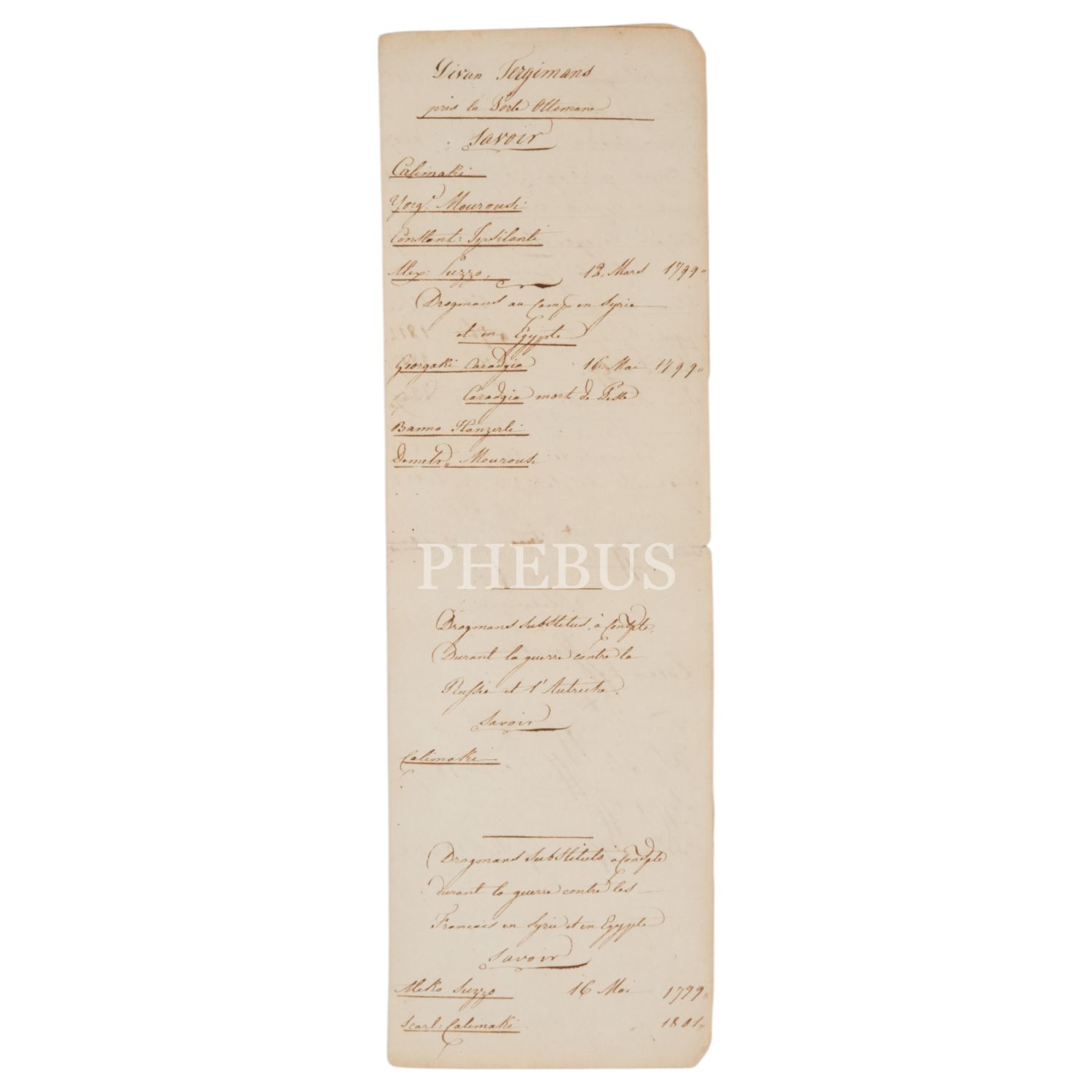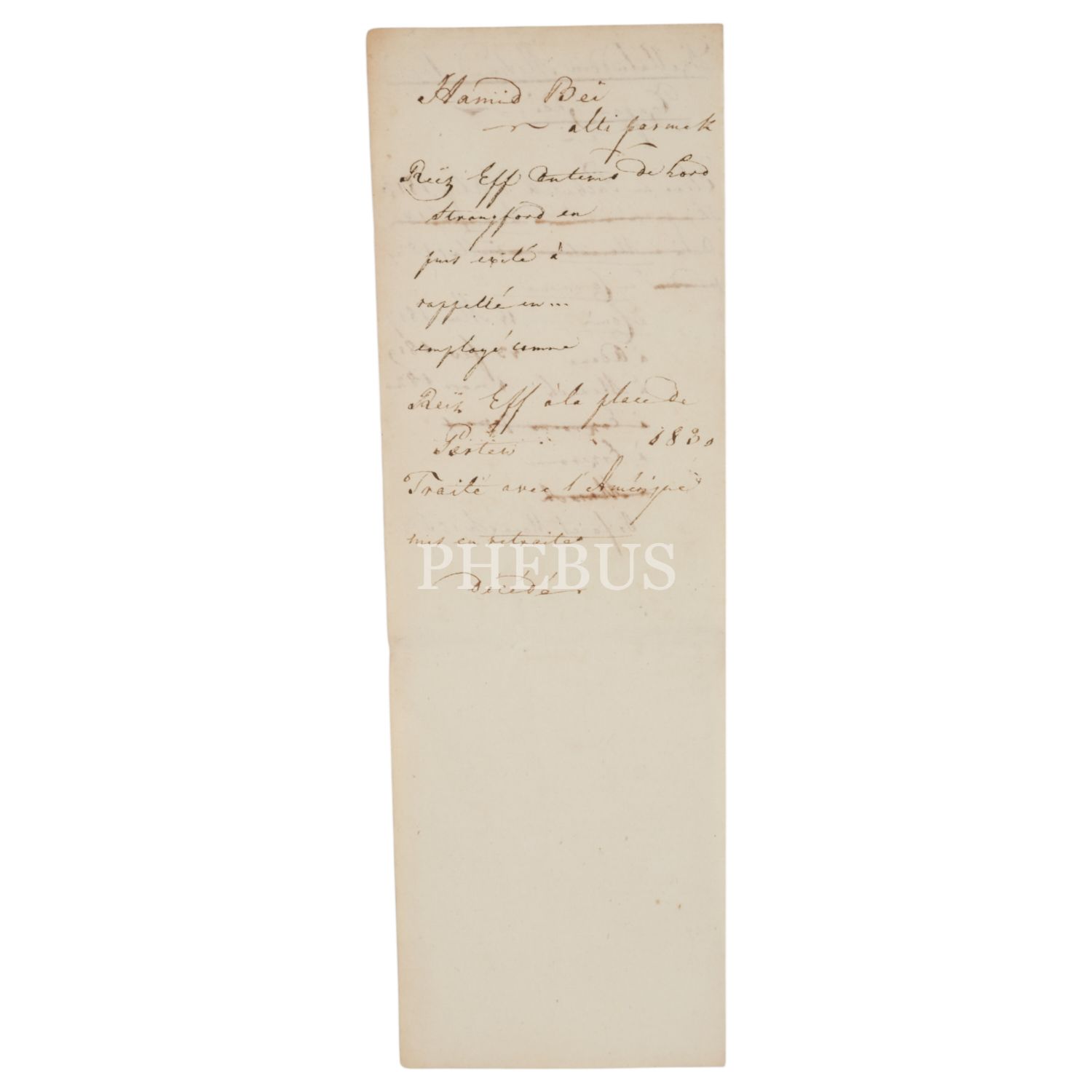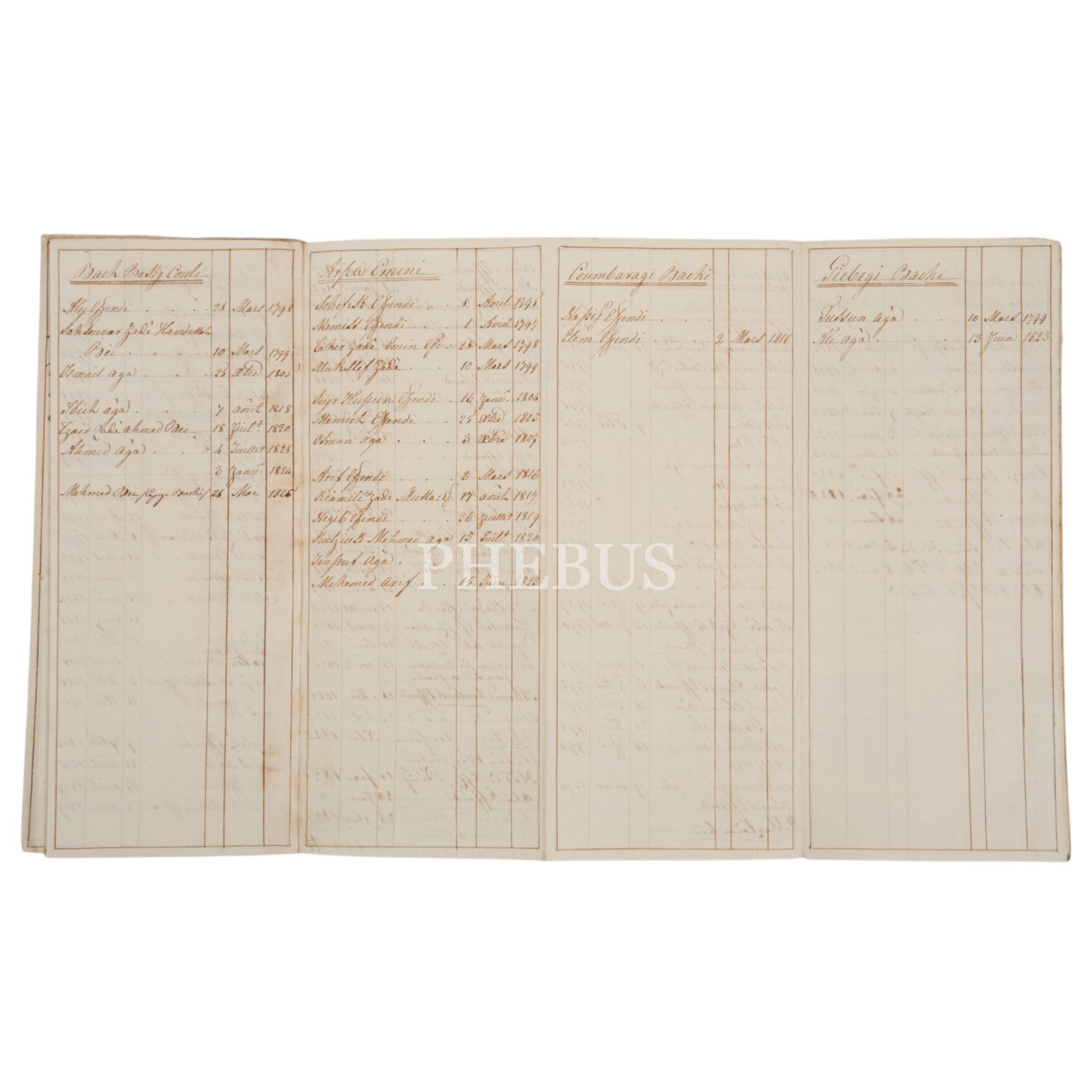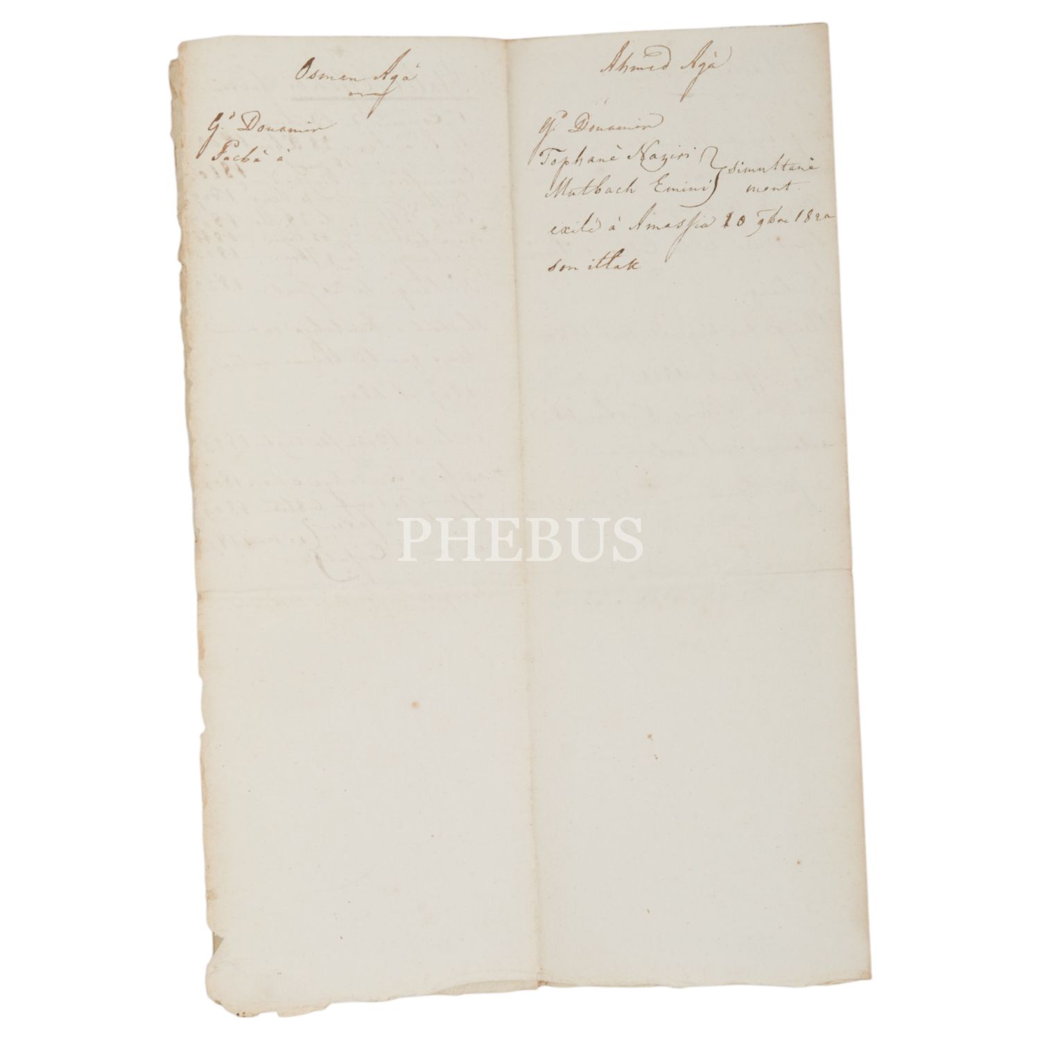 1782 yılından 1846´ya kadar, Osmanlı Devleti´nde önemli görevlerde bulunmuş şahsiyetlerin isimlerinin yer aldığı, el yazısıyla kaleme alınmış "Tableau General du Ministere Ottoman" başlıklı liste ve bu listede yer alan bazı şahsiyetlerin biyografilerinin yazılı olduğu sayfalar...