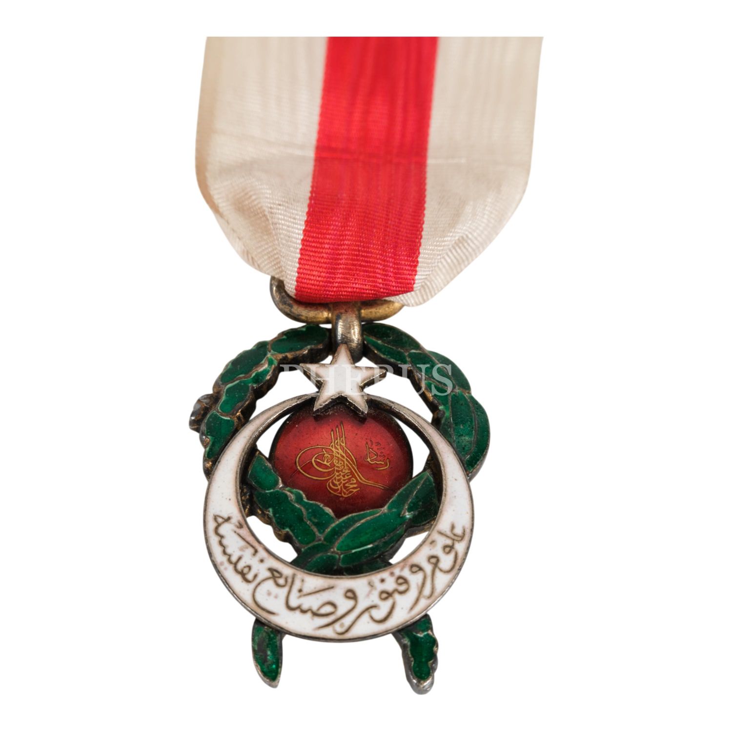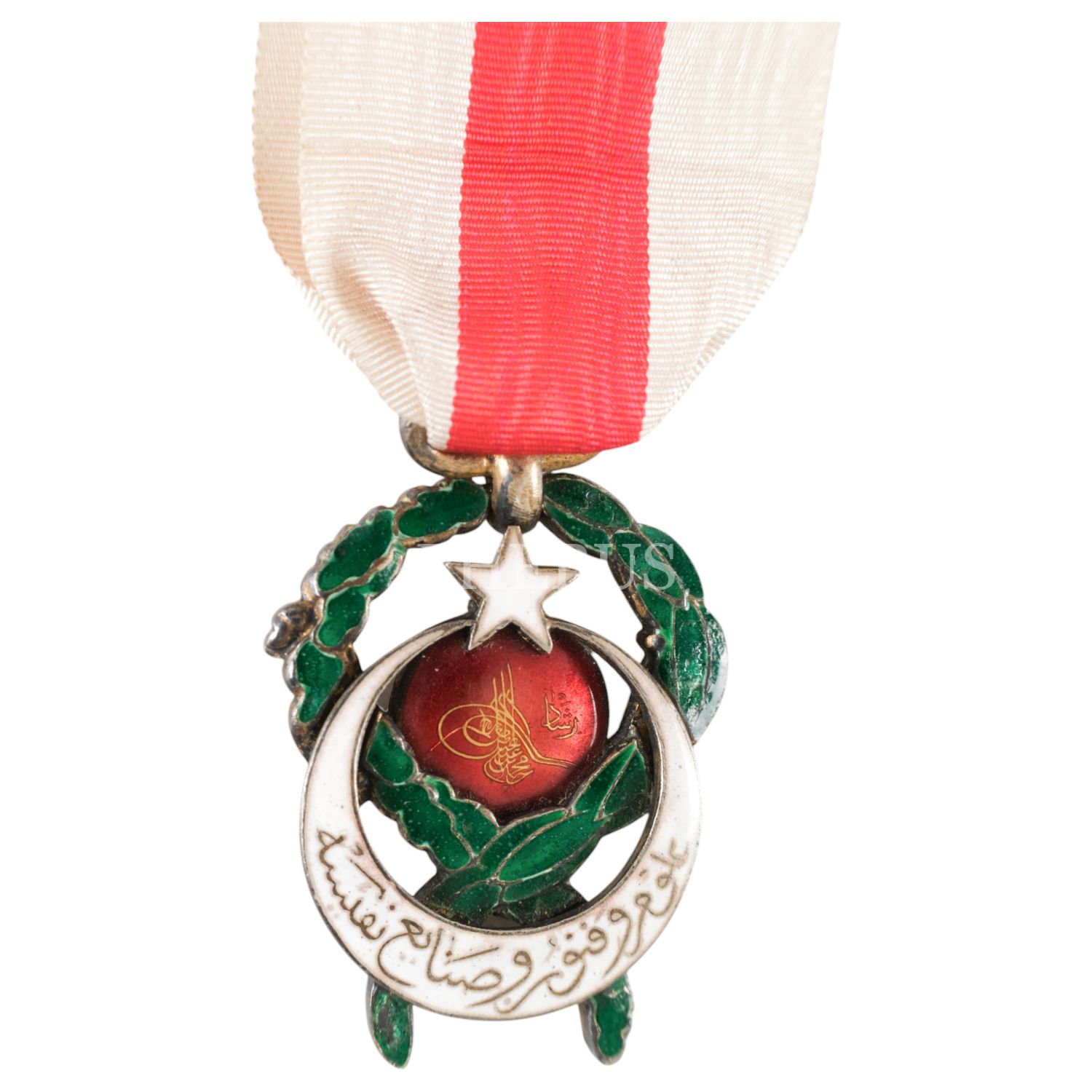 Kırmızı-beyaz kurdeleli Üçüncü Derece Maarif Nişanı, 2.5x3 cm...