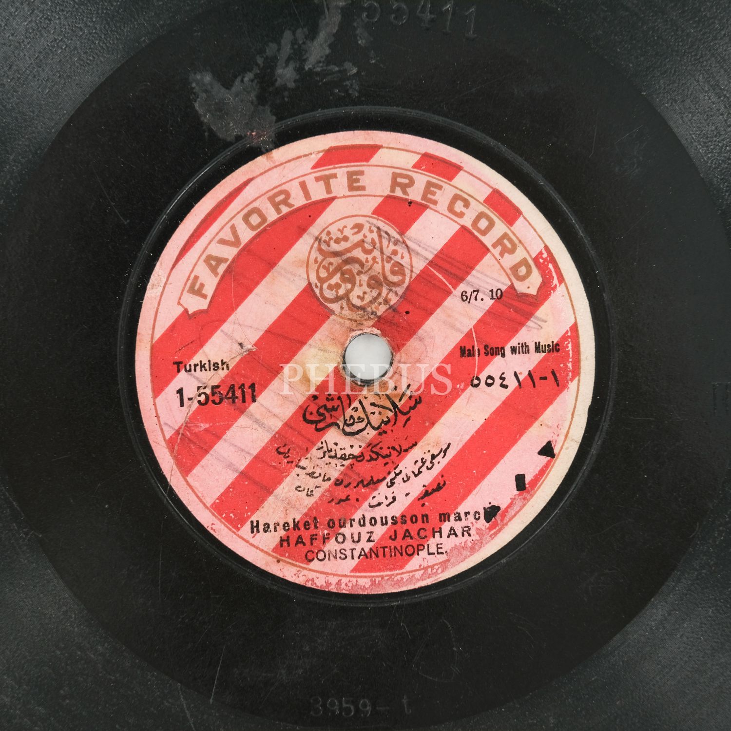 Hareket Ordusu mensuplarından Şükrü Bey tarafından Selanik´te irad edilen nutkunun kaydı ve Hareket Ordusu´nun Selanik´ten hareketini konu alan Selanik Marşı, Favorite Record (Constantinople)...