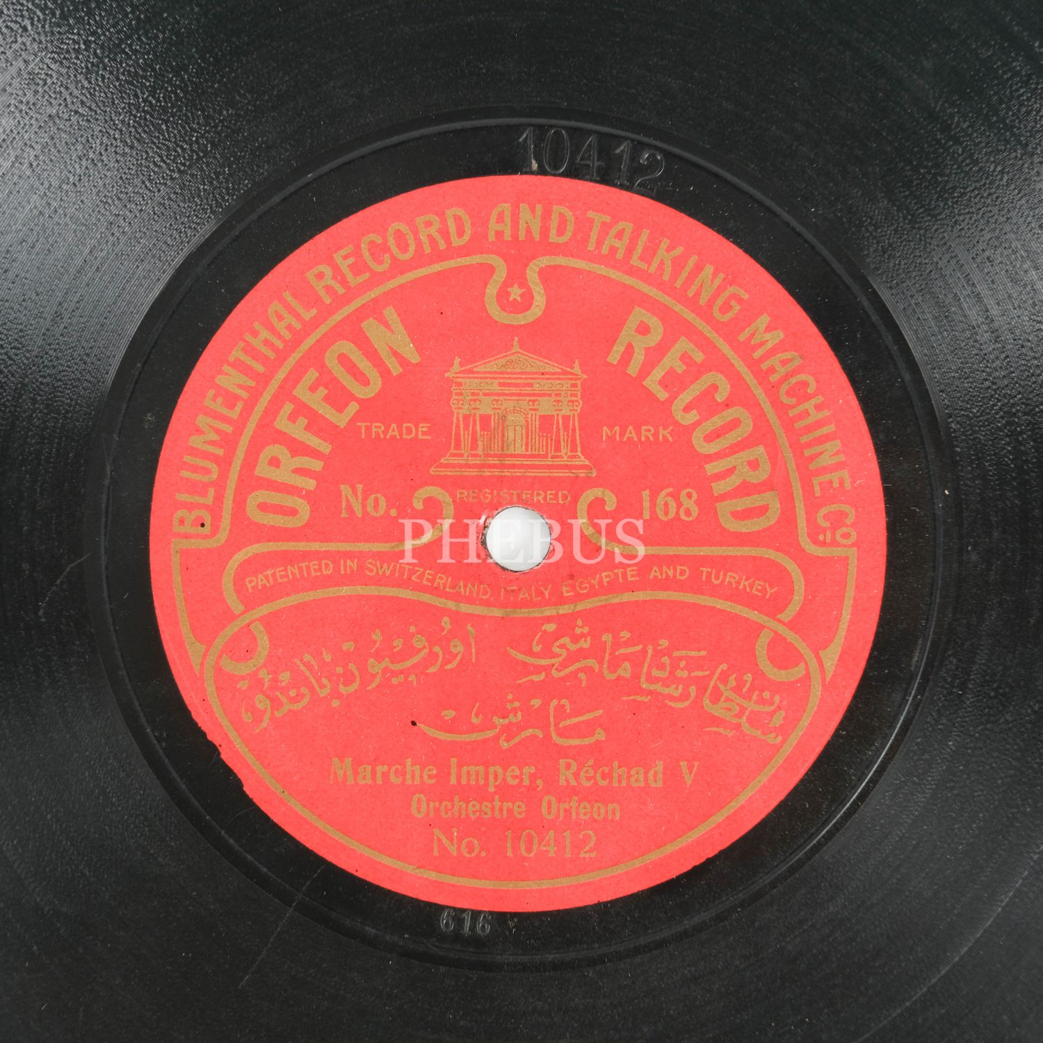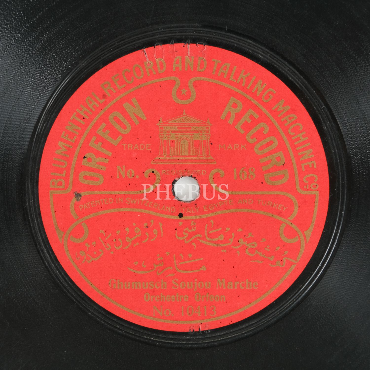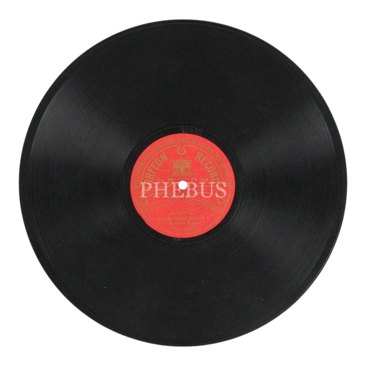 Bir yüzünde Orfeon Bandosu tarafından icra edilen Sultan Reşad Marşı, diğer yüzünde yine Orfeon Bandosu tarafından icra edilen Gümüşsuyu Marşı´nın kaydedildiği taş plak...
