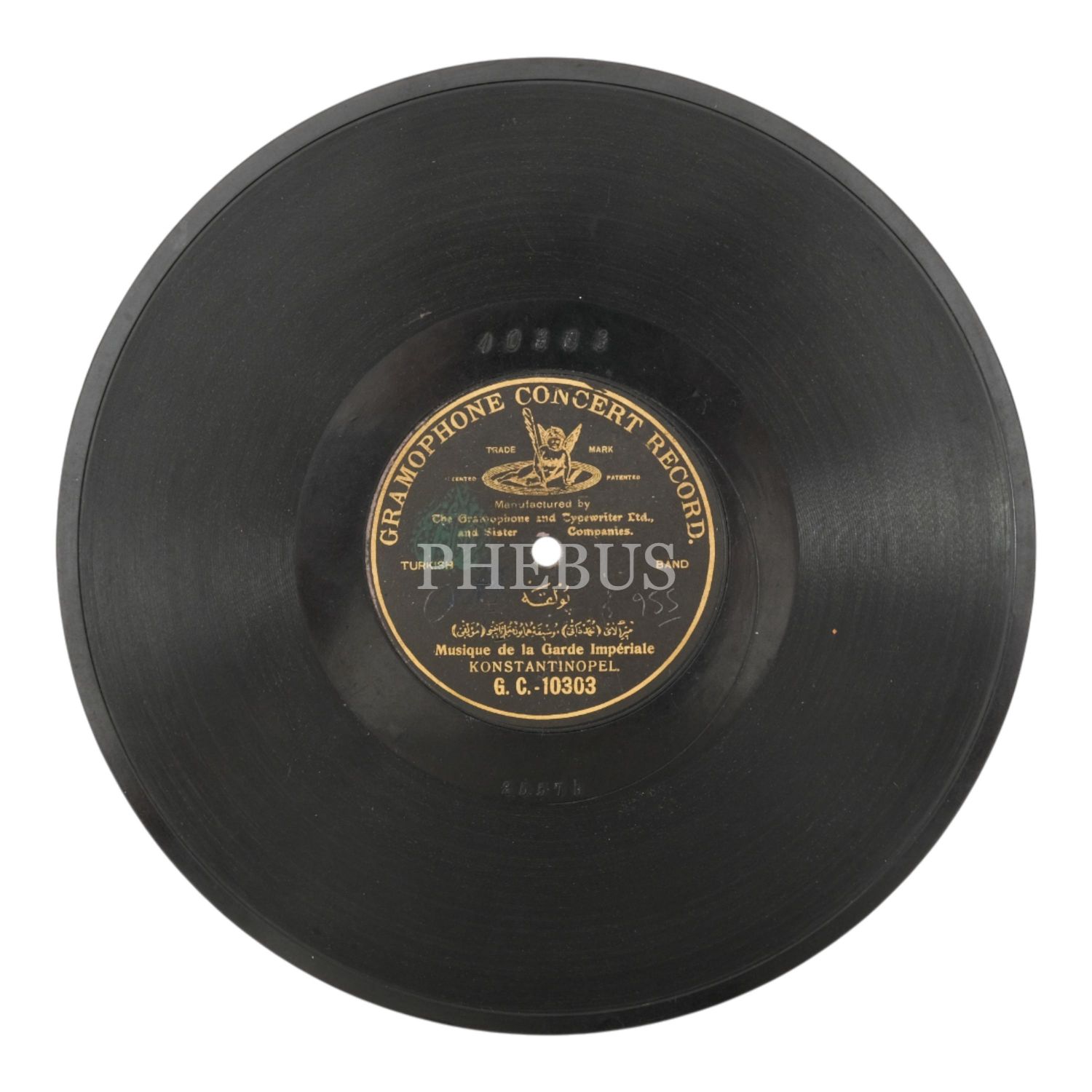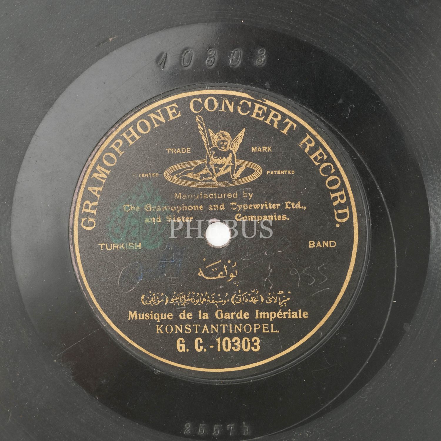 Bir yüzünde Muzika-i Hümâyun ikinci öğretmeni Mehmed Zati (Arca) idaresinde Muzika-i Hümâyun´un tarafından çalınan "Polka" yer alan, arka yüzü ise boş olan taş plak, Gramophone Concert Record (Konstantinopel)...