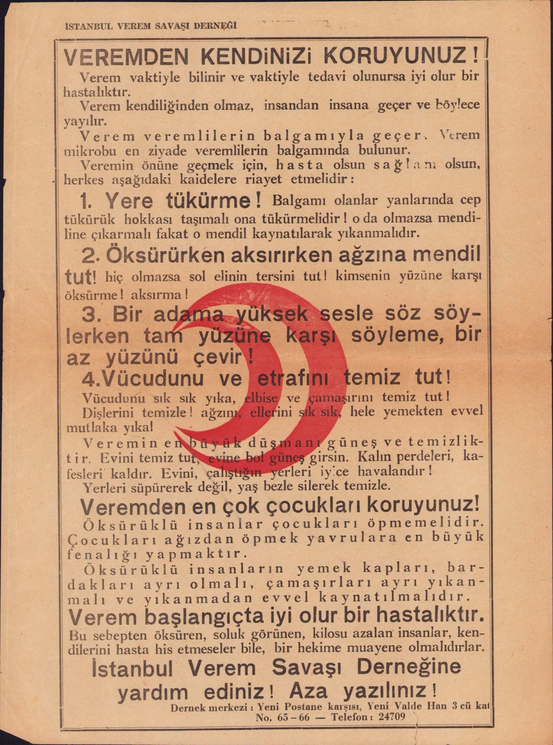 İstanbul Verem Savaş Derneği afiş, İstanbul Veremden Kendinizi Koruyunuz ! 23x31 cm
