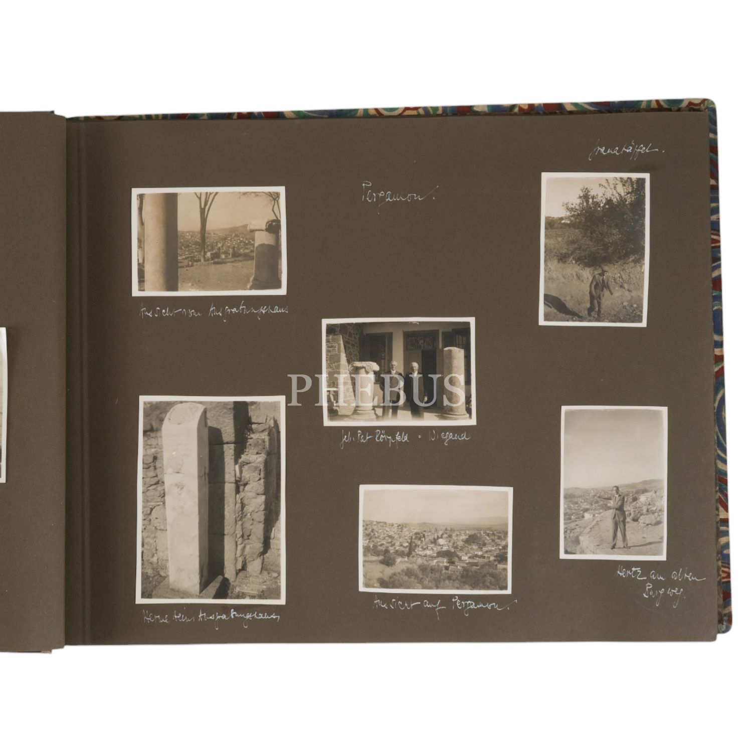 Avrupalı bir turistin, erken Cumhuriyet döneminde İstanbul, Bergama ve Efes gezisinde çektiği fotoğraflar ve bu yerlerin Sebah & Joaillier Fotoğrafhanesi tarafından çekilen fotoğraflarına yer verdiği seyahat albümü, 123 adet fotoğraf, 39x30 cm...