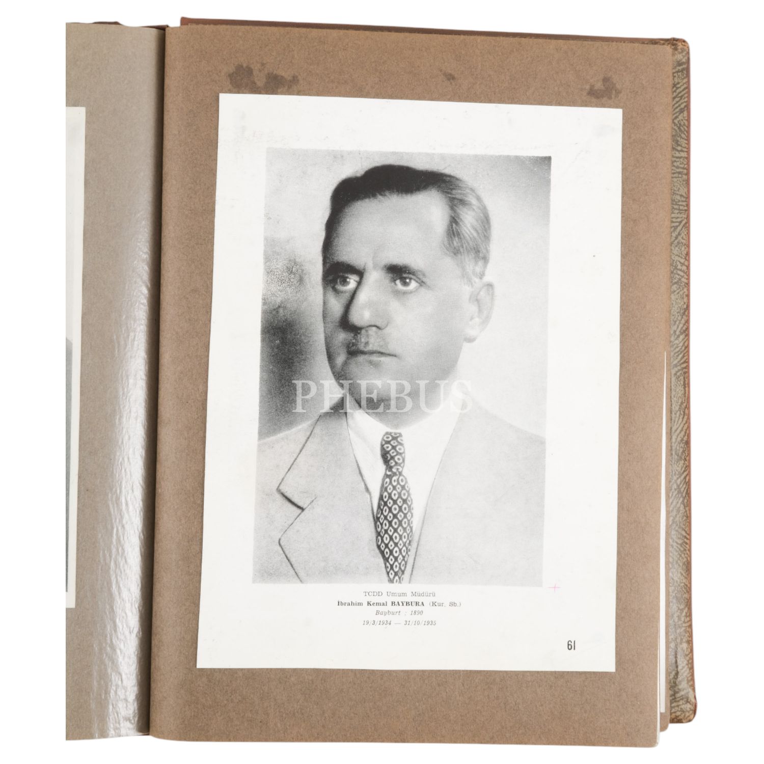 Türkiye Cumhuriyeti Devlet Demiryolları´nda üst kademelerde görev yapmış yöneticilerin portre fotoğrafları ve Devlet Demiryolları´nın düzenlediği çeşitli etkinliklerde çekilmiş, aralarında Cemal Gürsel´in de görüldüğü fotoğraflar içeren albüm...