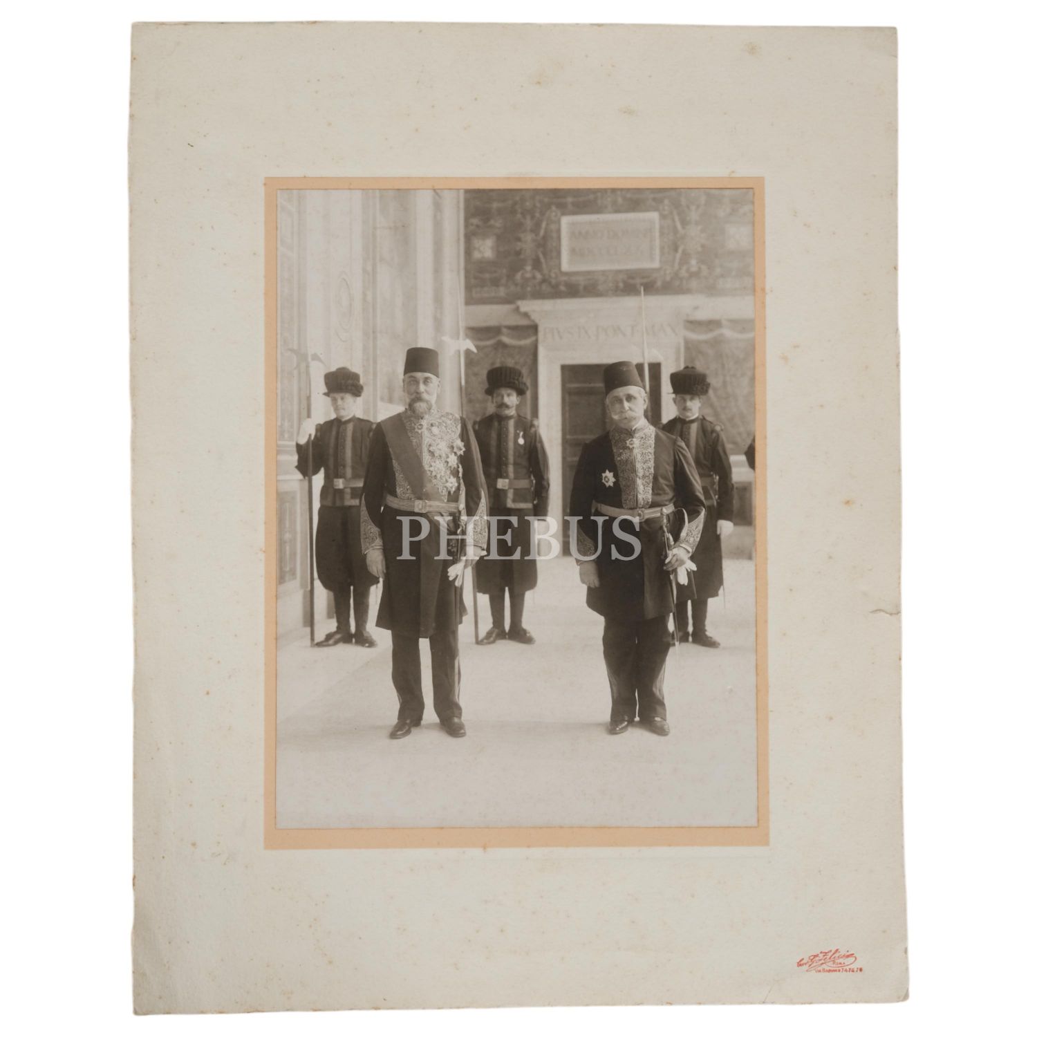 Vatikan´da İsviçreli Muhafızlar´ın önünde üniformalarıyla poz veren iki Osmanlı paşası, Foto Zelici (Roma), 31x40 cm...