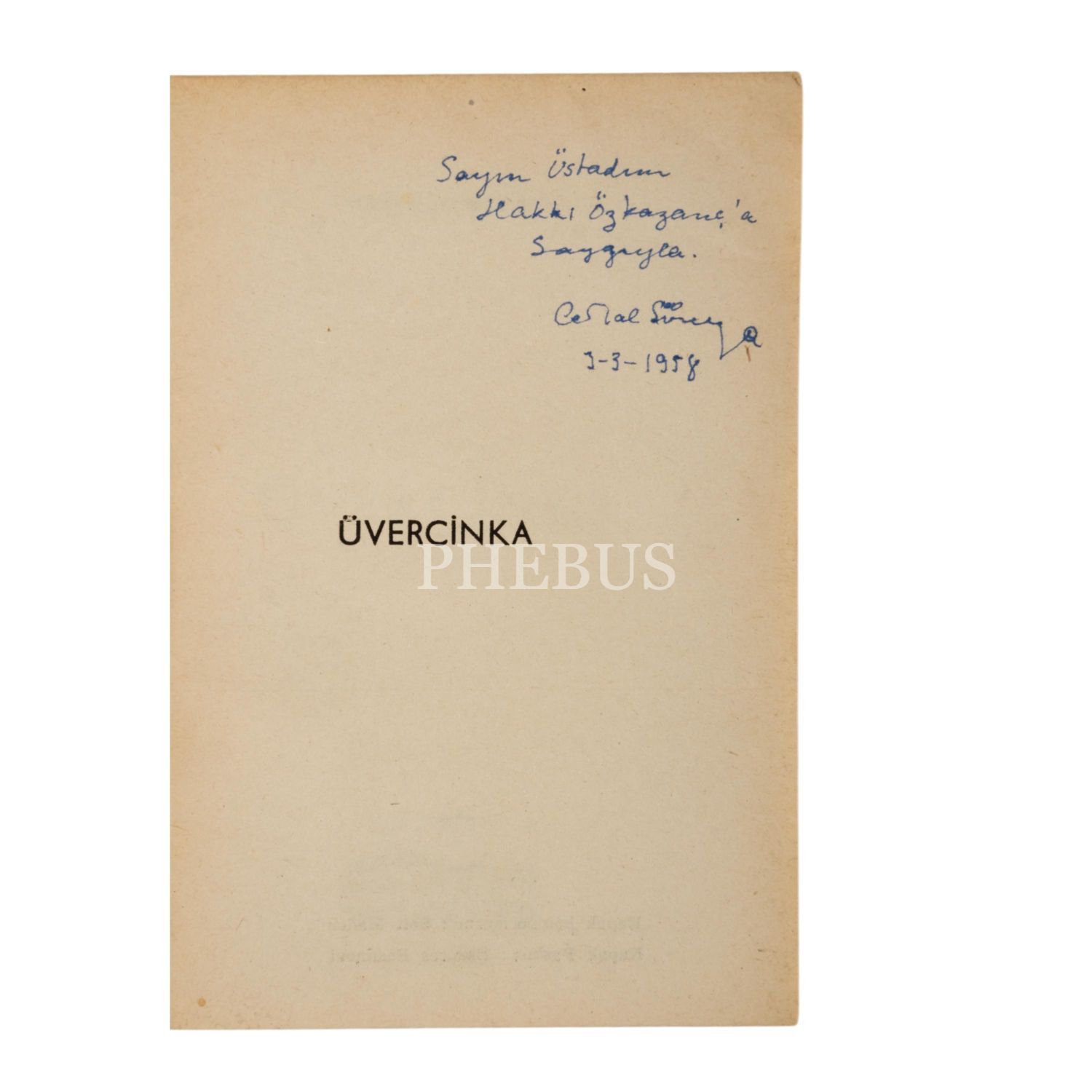 ÜVERCİNKA, Cemal Süreya, 1958, Yeditepe Yayınları, 60 sayfa, 12x17 cm; fotoğraf: 8x14 cm...