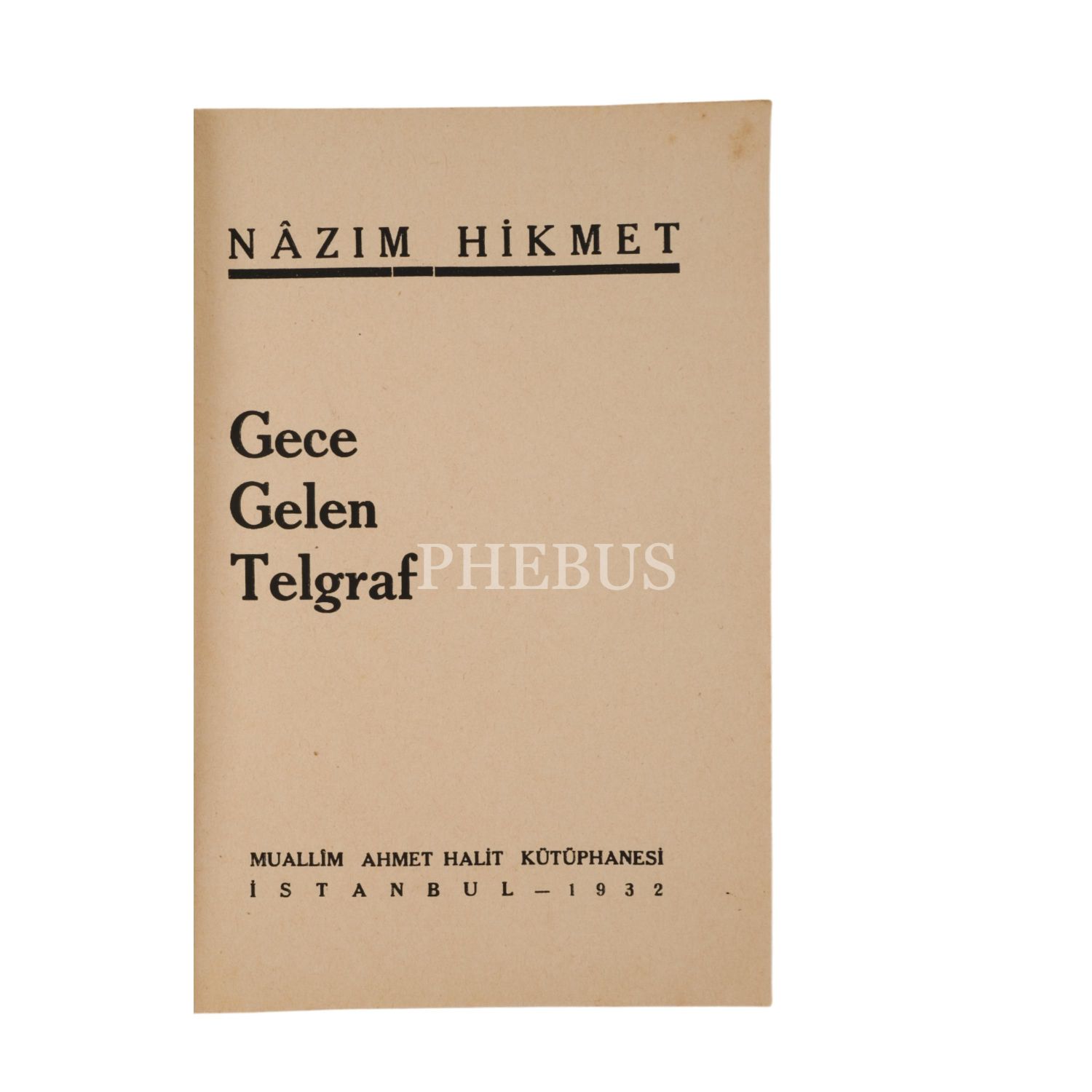 GECE GELEN TELGRAF, Nazım Hikmet, 1932, Muallim Ahmet Halit Kütüphanesi, 80 sayfa, 14x20 cm...