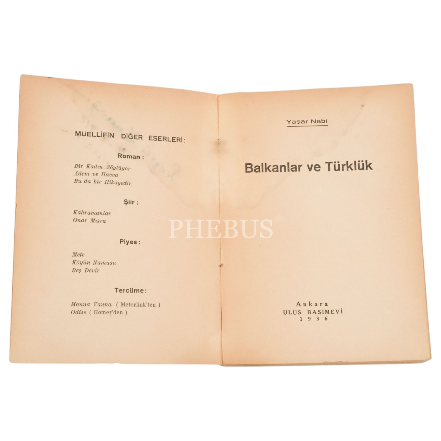 BALKANLAR VE TÜRKLÜK, Yaşar Nabi, 1936, Ulus Basımevi, 256 sayfa, 14x20 cm...