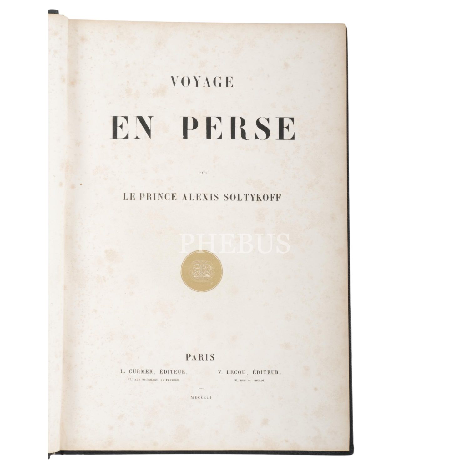 VOYAGE EN PERSE, Le Prince Alexis Soltykoff, L. Curmer & V. Lecou Editour, Paris, 1851, 132 sayfa, 19x28 cm...