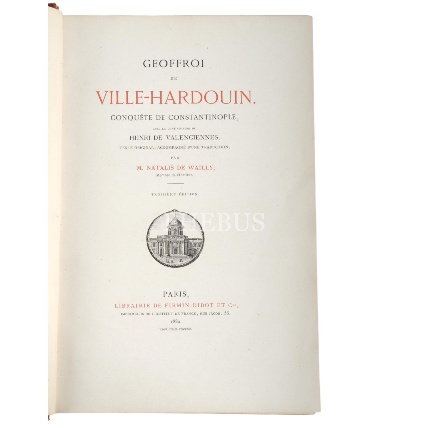 CONQUETE DE CONSTANTINOPLE, Geoffroi de Ville-Hardouin & Henri de Valenciennes, ed. Natalis de Wailly, 1882, Librairie de Firmin-Didot et Cie., Paris, 616 sayfa, 19x28 cm...