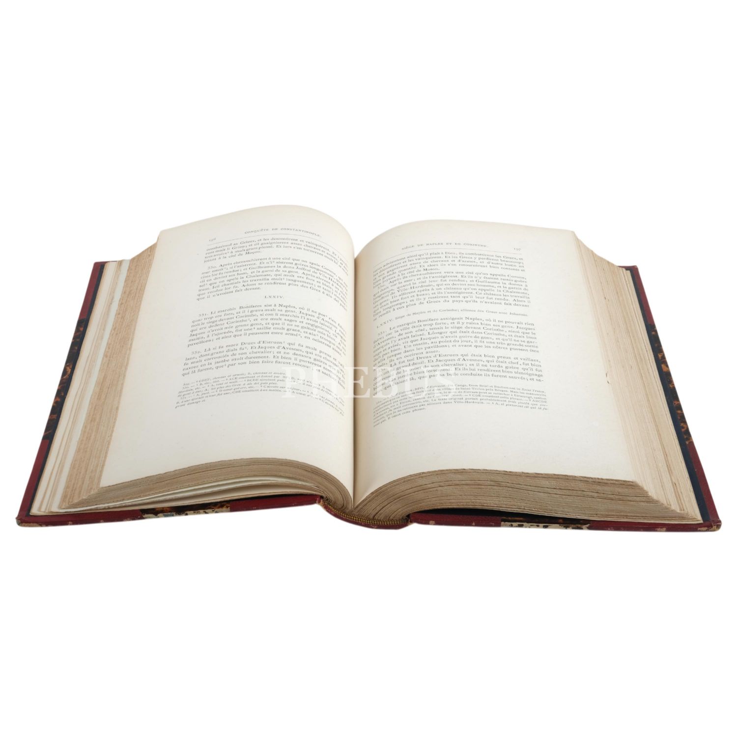 Dönemin ve olayların tanığı iki tarihçinin, Geoffroi de Villehardouin ile Henri de Valenciennes´in (Valencialı Henry), Konstinopolis´in Dördüncü Haçlı Seferi için yola çıkan Haçlılar tarafından istila ve talan edilmesini tüm detaylarıyla anlattıkları eserlerinin 1882 tarihli Fransızca baskısı... Ebru desenli ve altın yaldız süslemeli yeni cildinde.