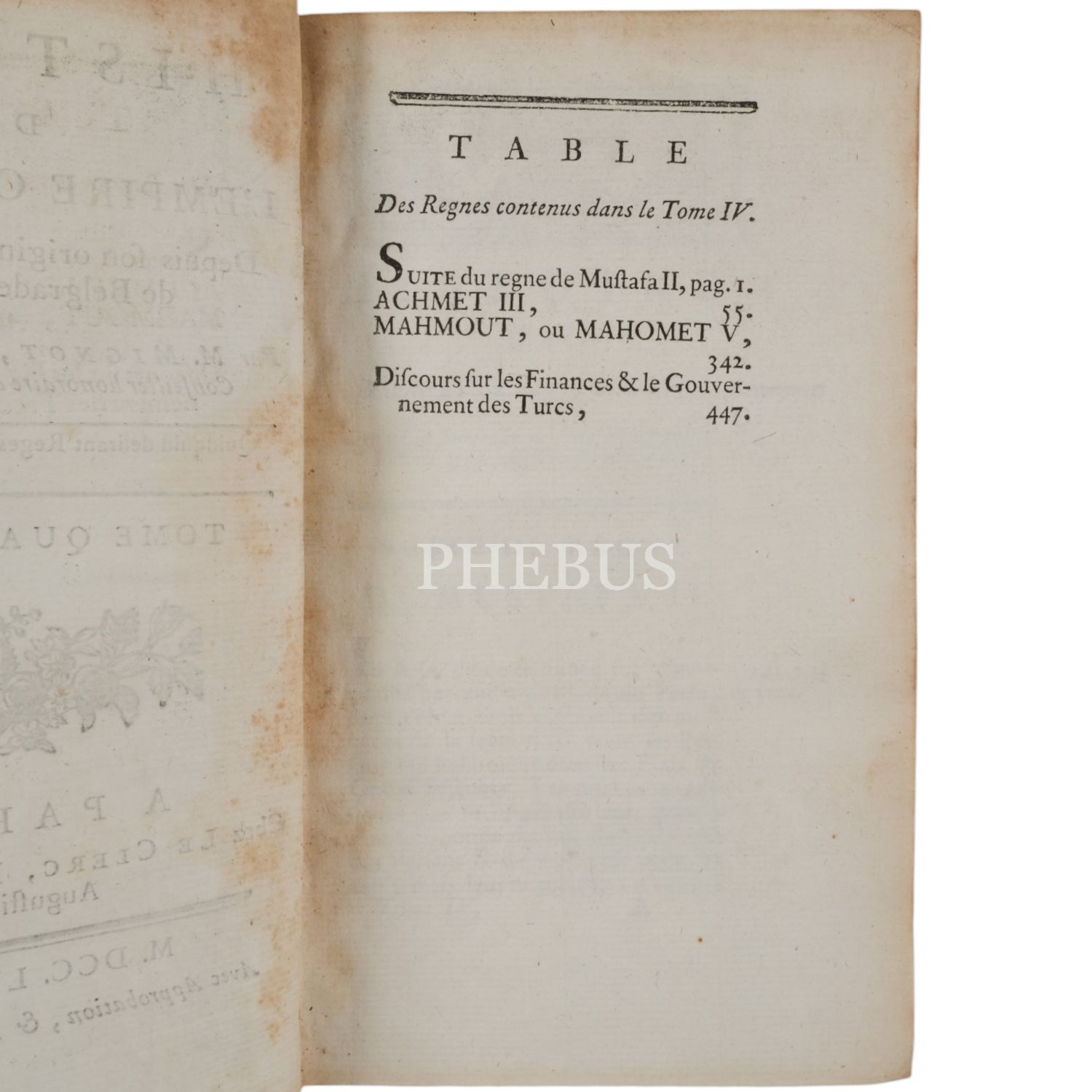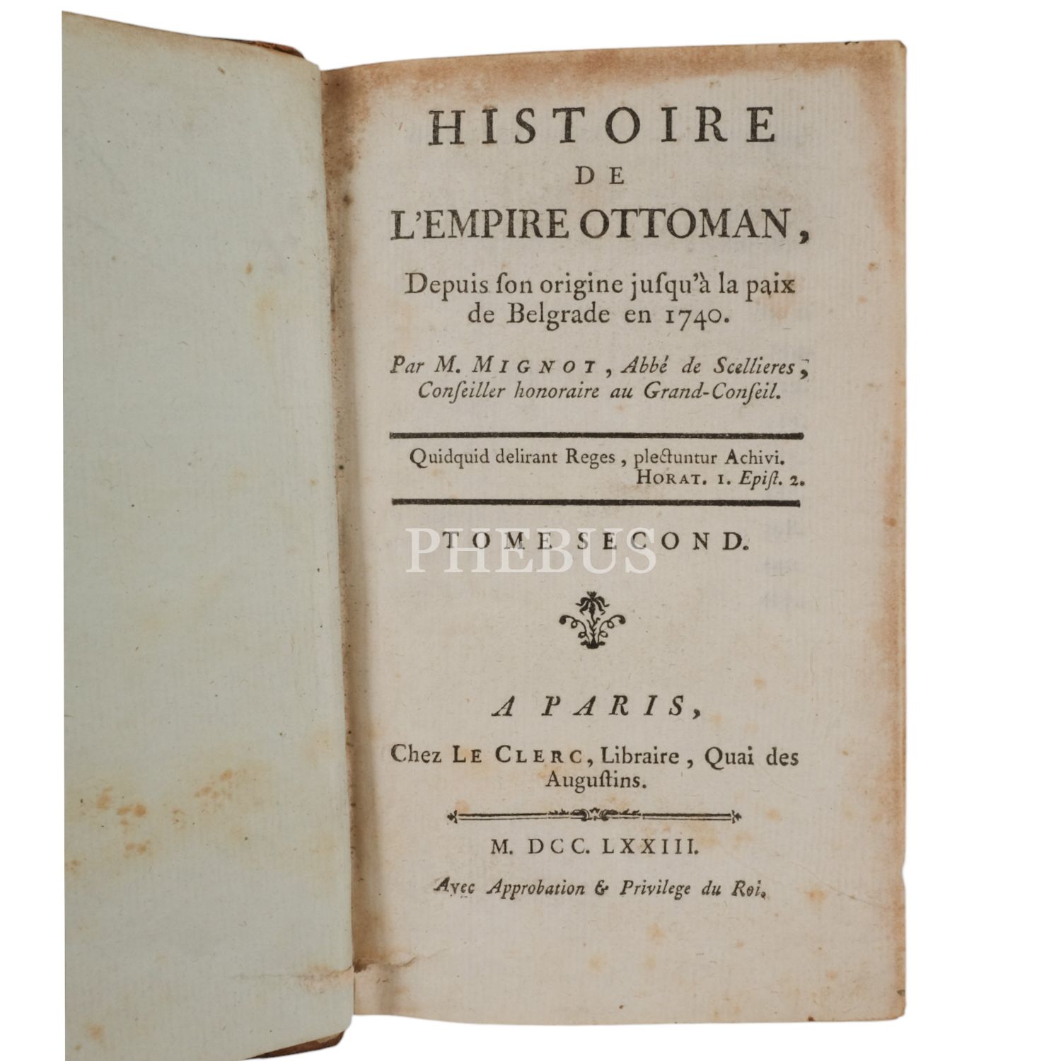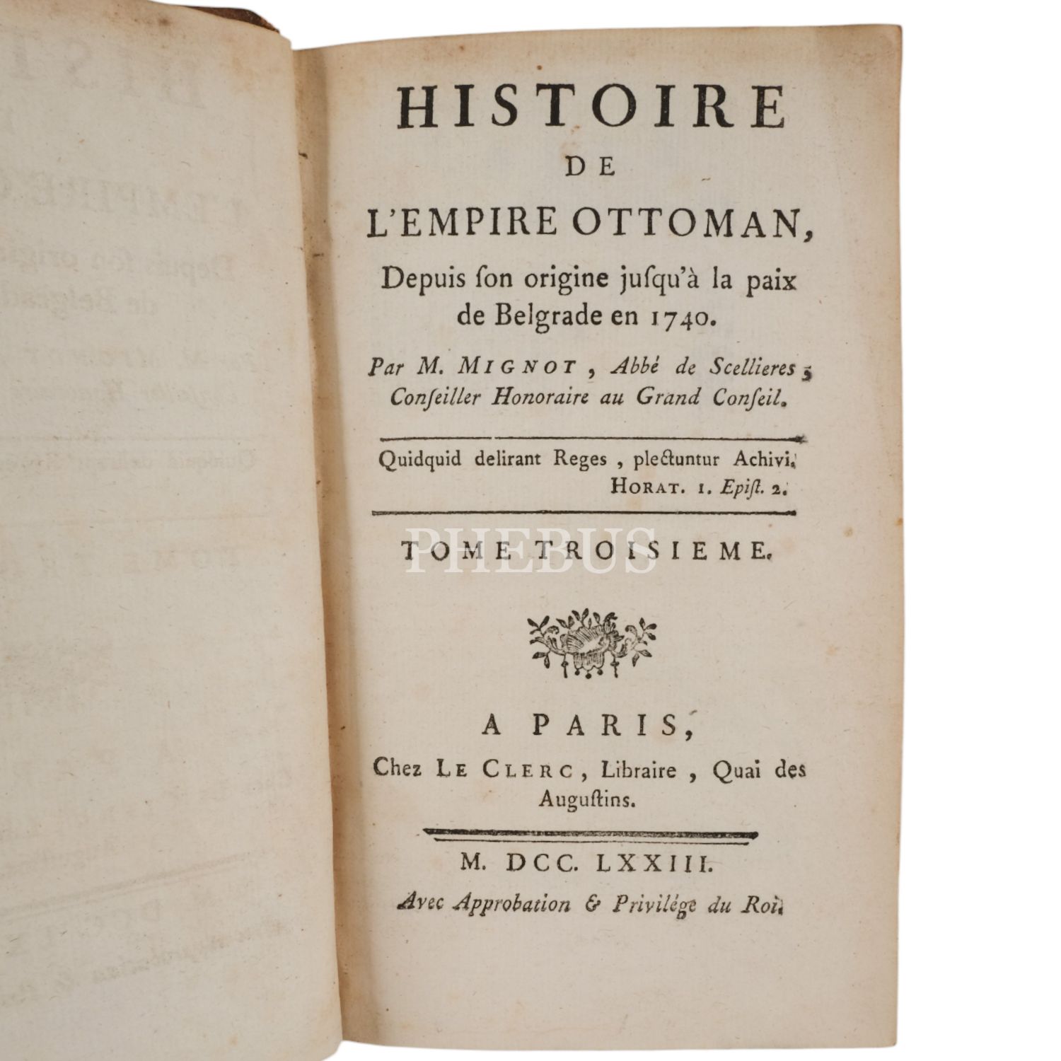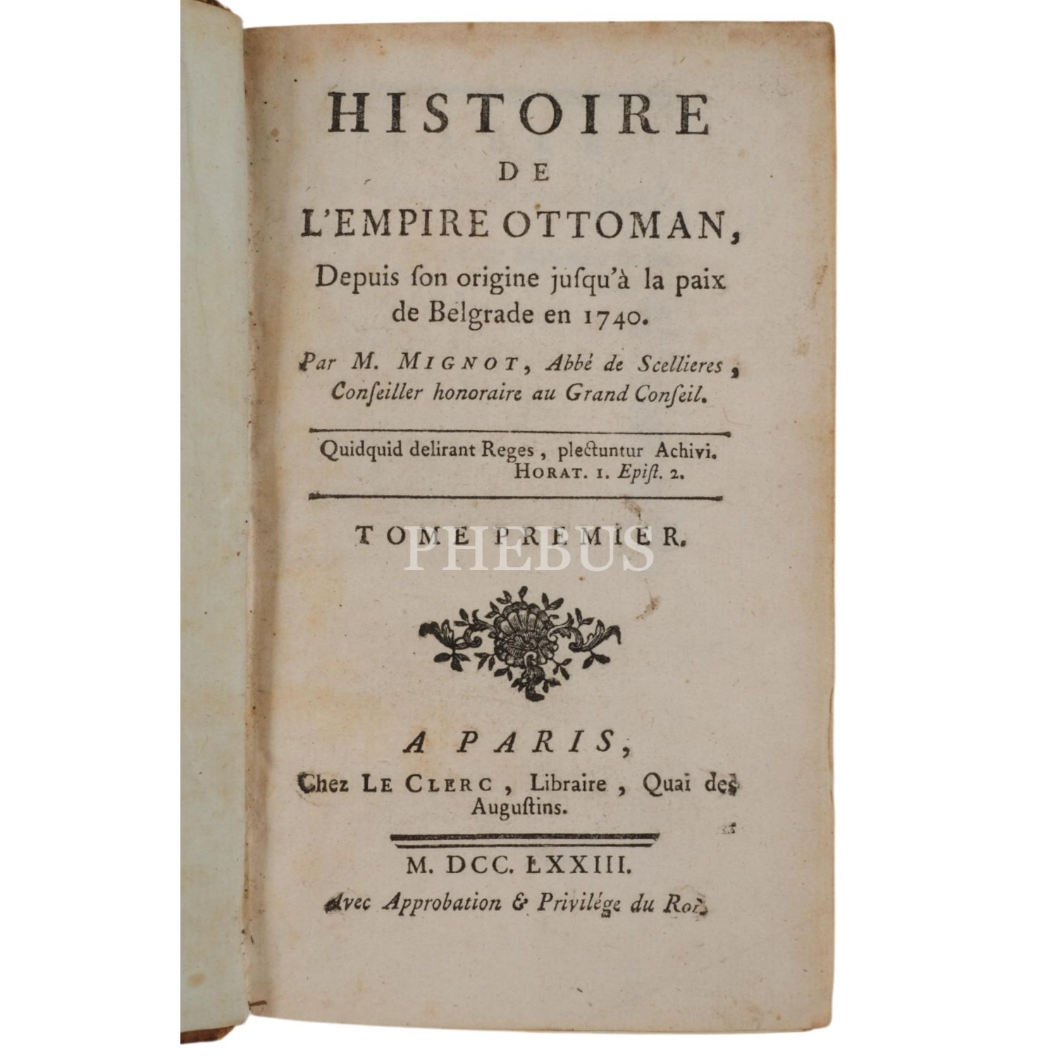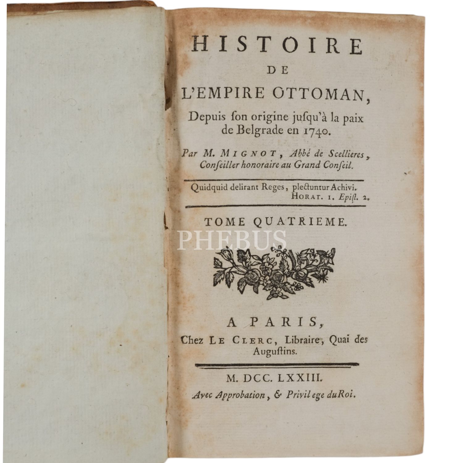HISTOIRE DE L´EMPIRE OTTOMAN DEPUIS SON ORIGINE JUSQU´A LA PAIX DE BELGRADE EN 1740 (4 Cilt takım), Vincent Mignot, 1773, Le Clerc (Paris), 11x17 cm...