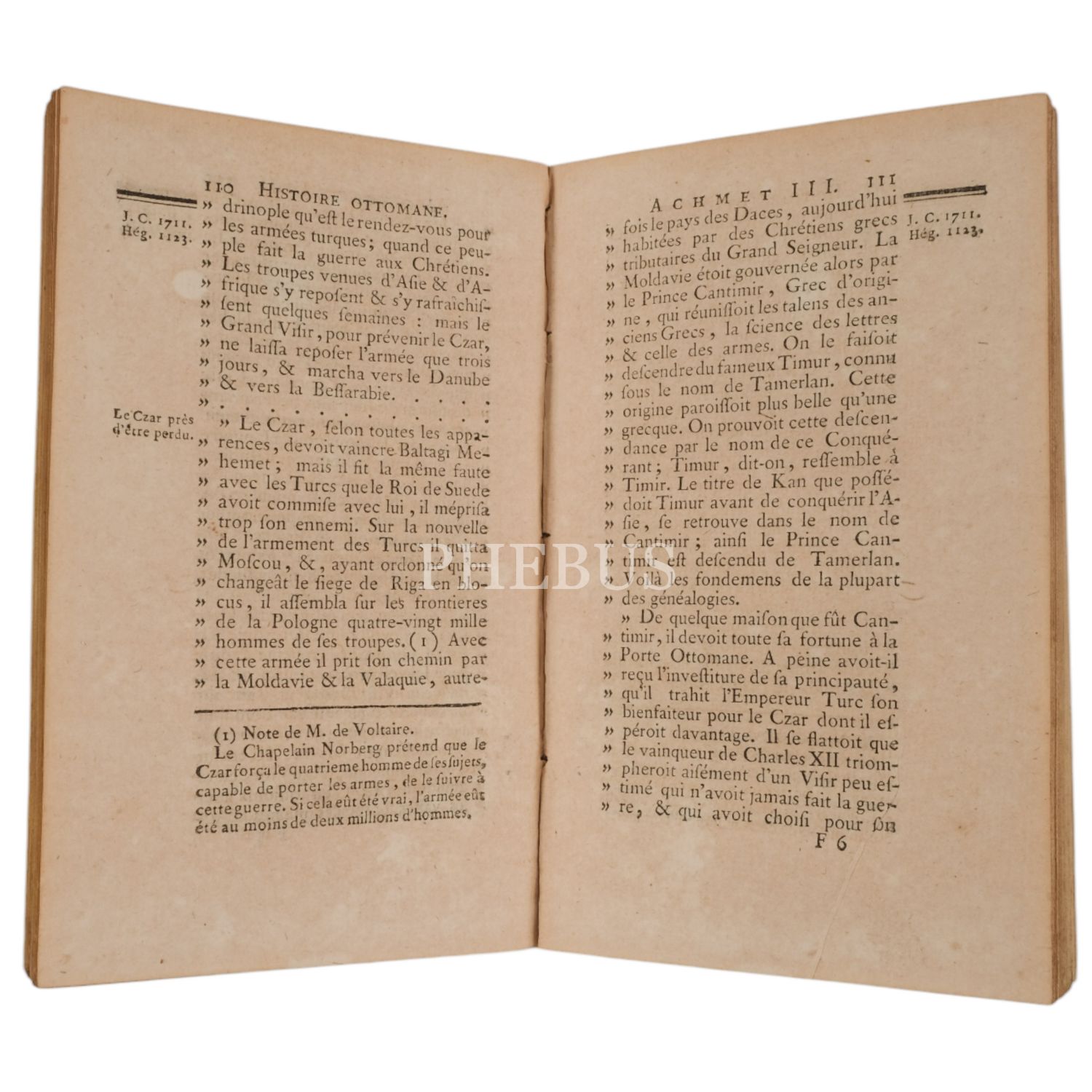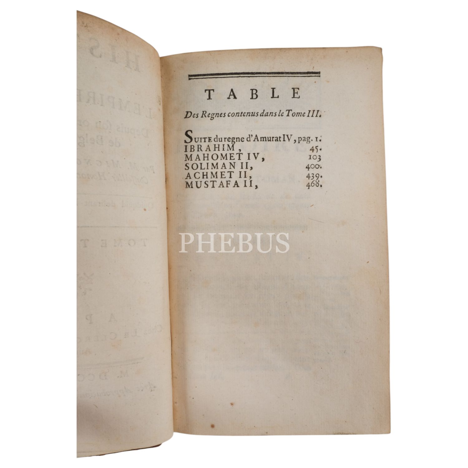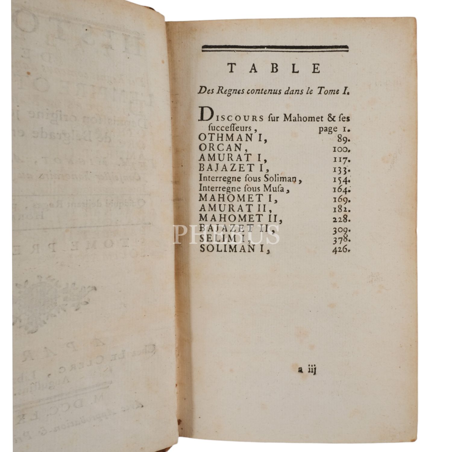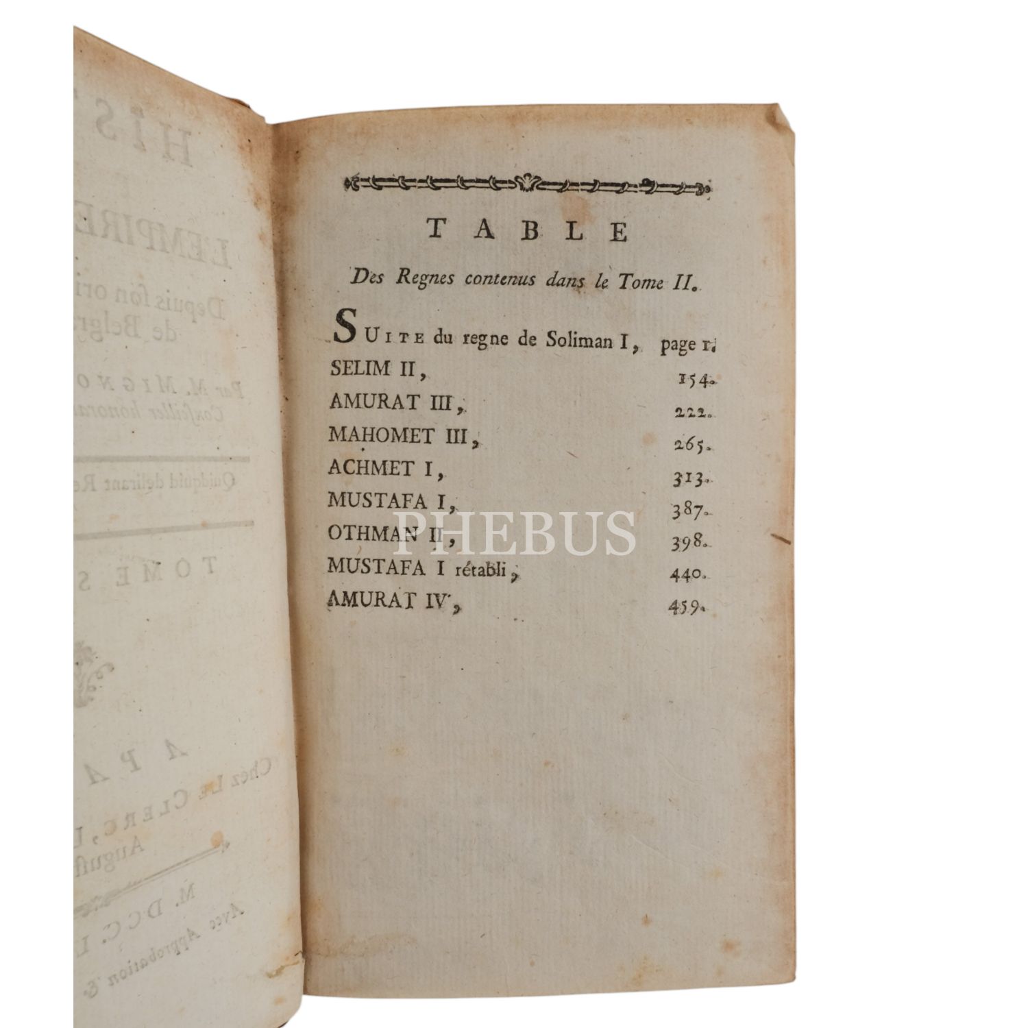 Osmanlı İmparatorluğunun kuruluşundan 1740 yılındaki Belgrad antlaşmasına kadarki tarihini konu alan eser; devletin kuruluş devrini, yükselişini ve klasik çağını, Avrupalı güçlerle ve Rusya ile mücadelesini, son olarak da 17 ve 18. yüzyıllarda devletin geçirdiği değişimleri ayrıntılı olarak anlatıyor. Eserin yazarı, ünlü Fransız filozof Voltaire'in yeğenidir.