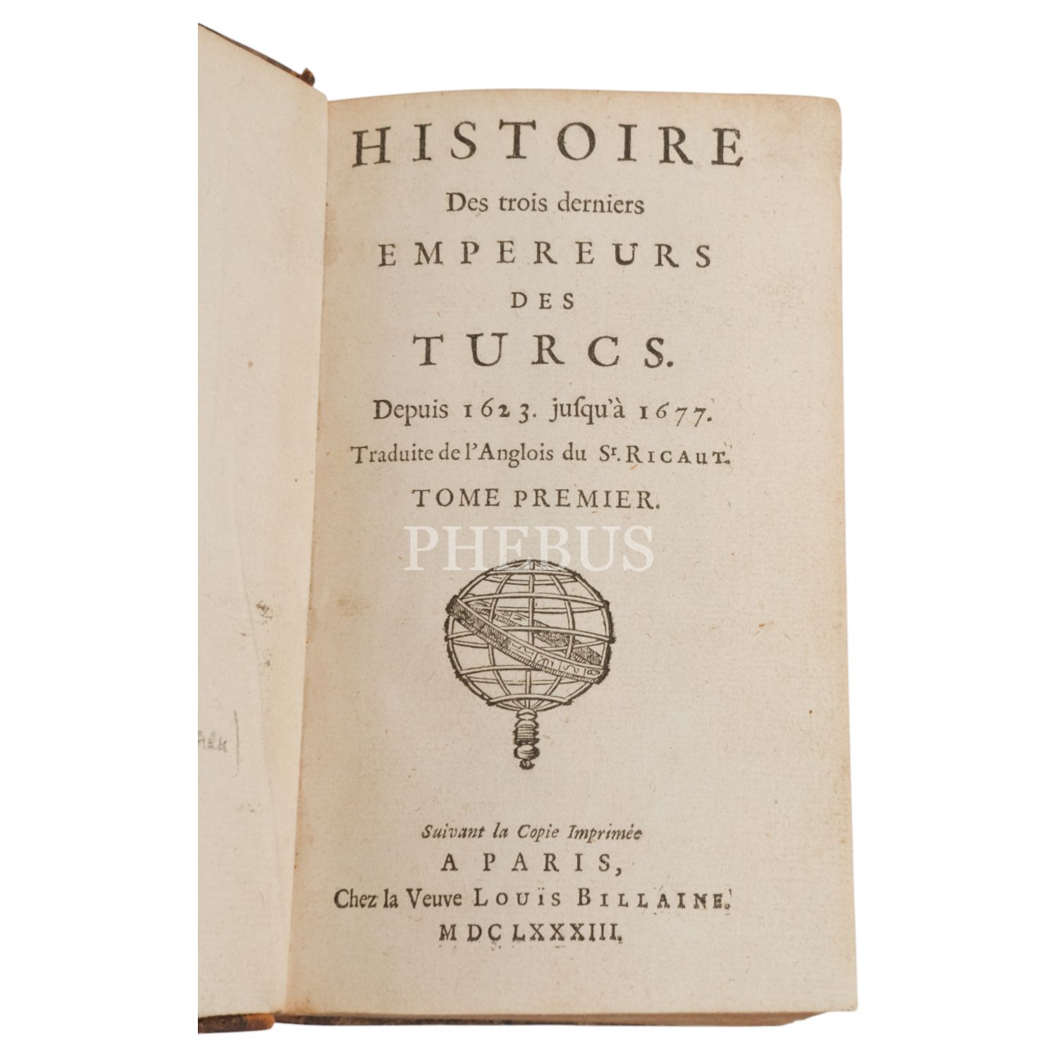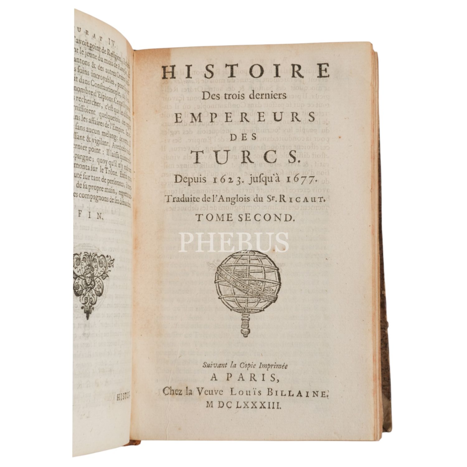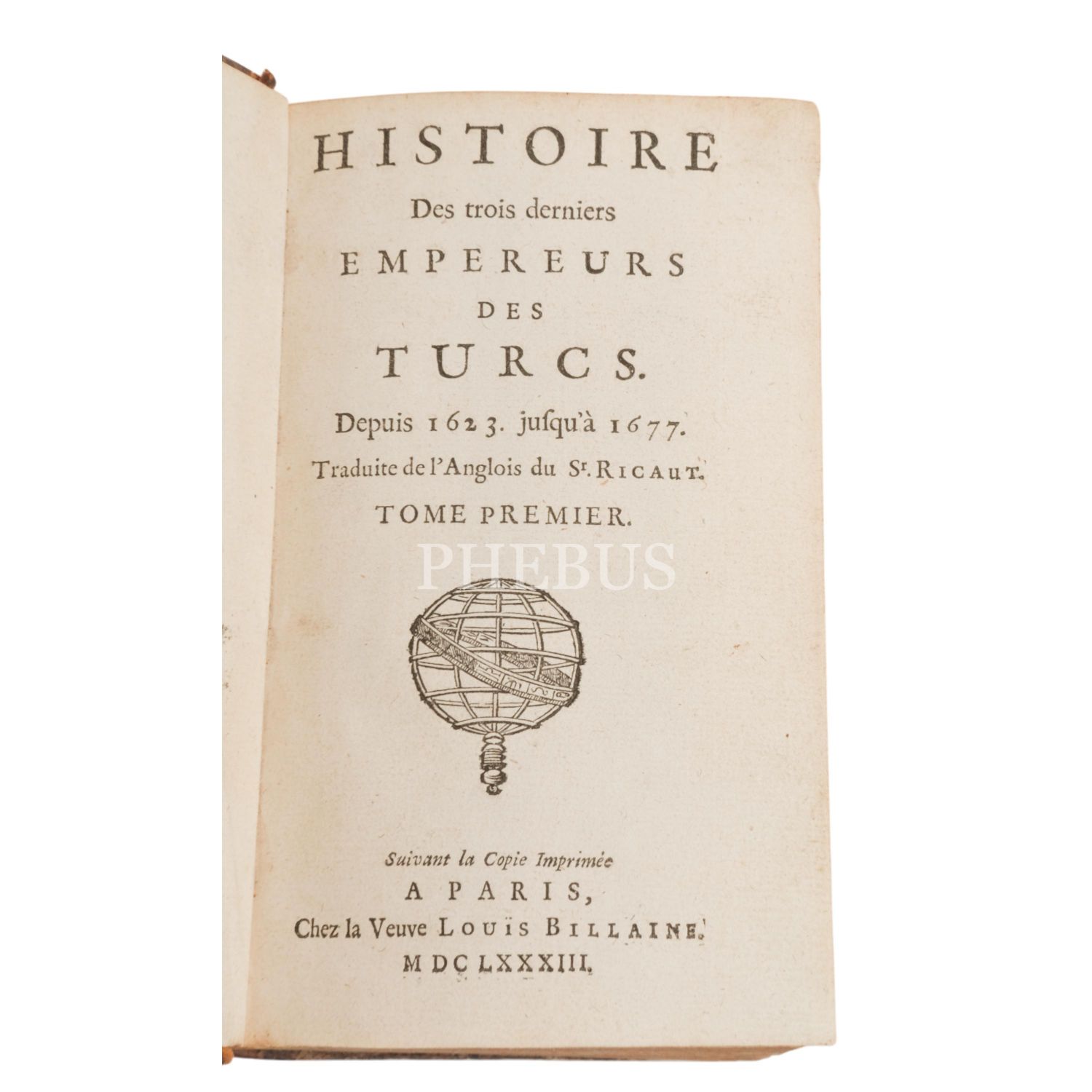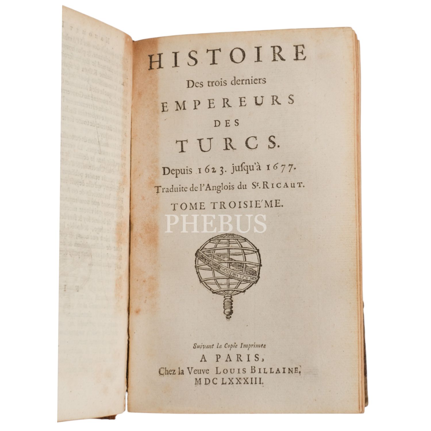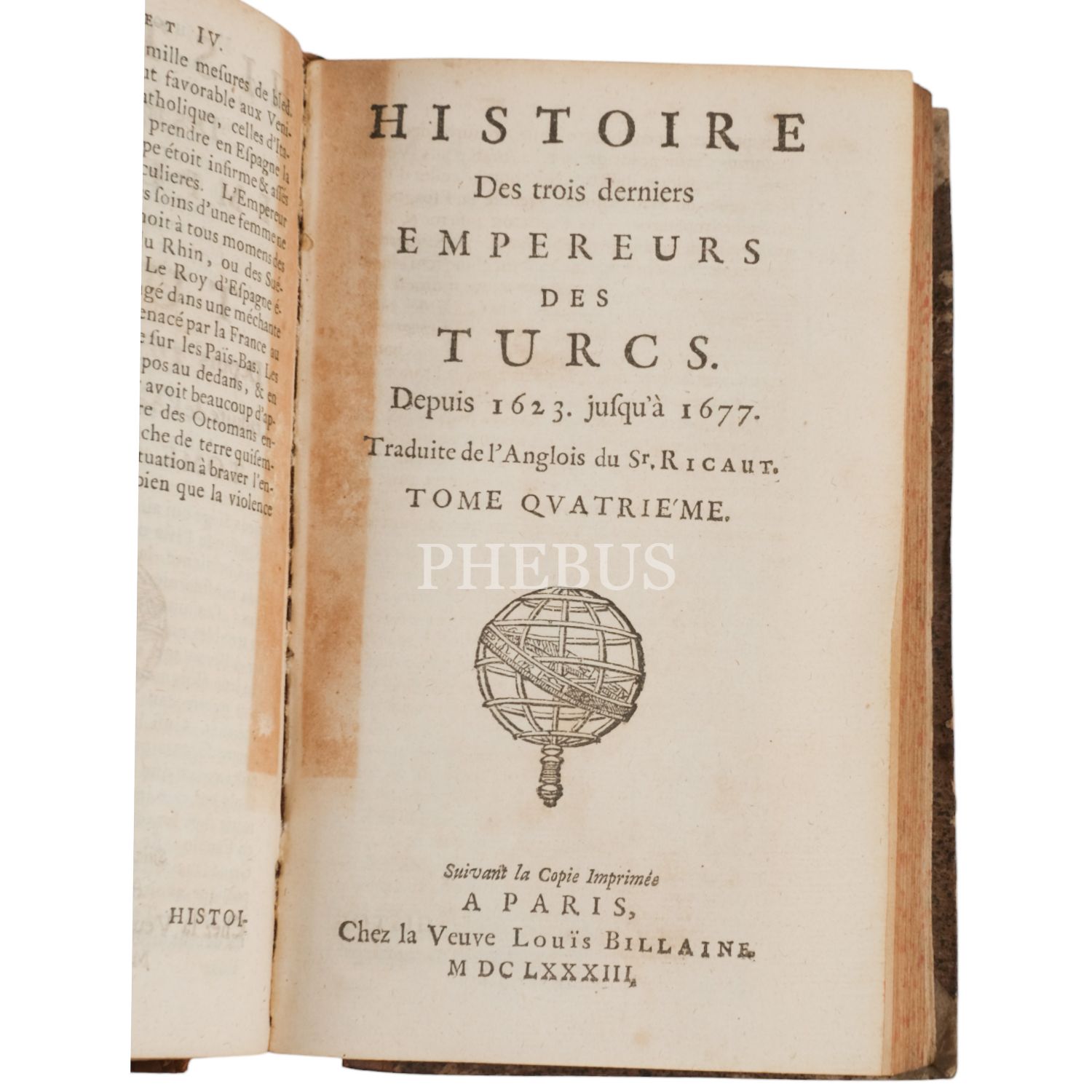 HISTORIE DES TROIS DERNIERS EMPEREURS DES TURCS DEPUIS 1623 JUSQU´A 1677, (4 cilt bir arada), Paul Rycaut, Paris, 1683, 164+365+224+412 sayfa, 10x15 cm...