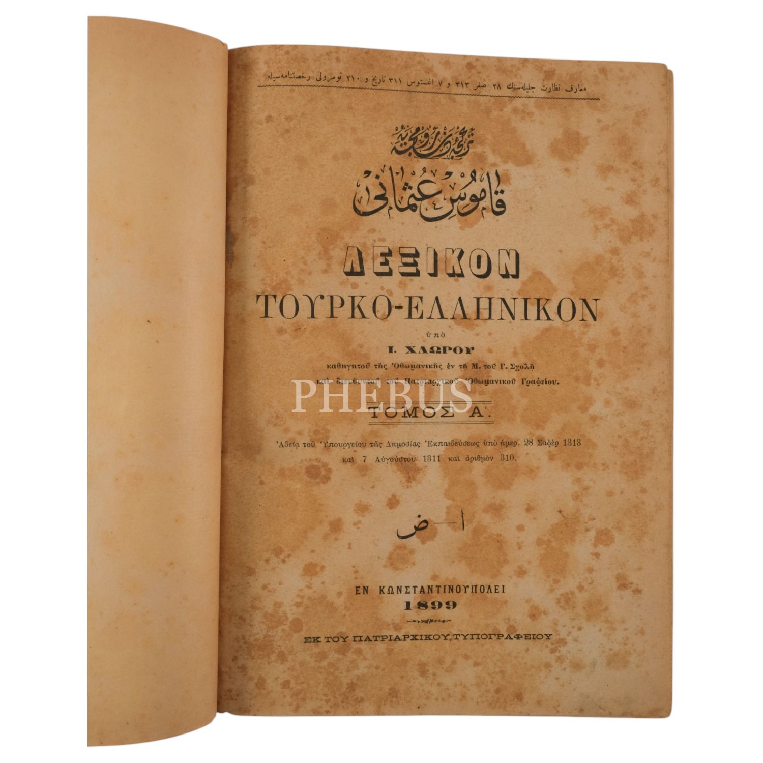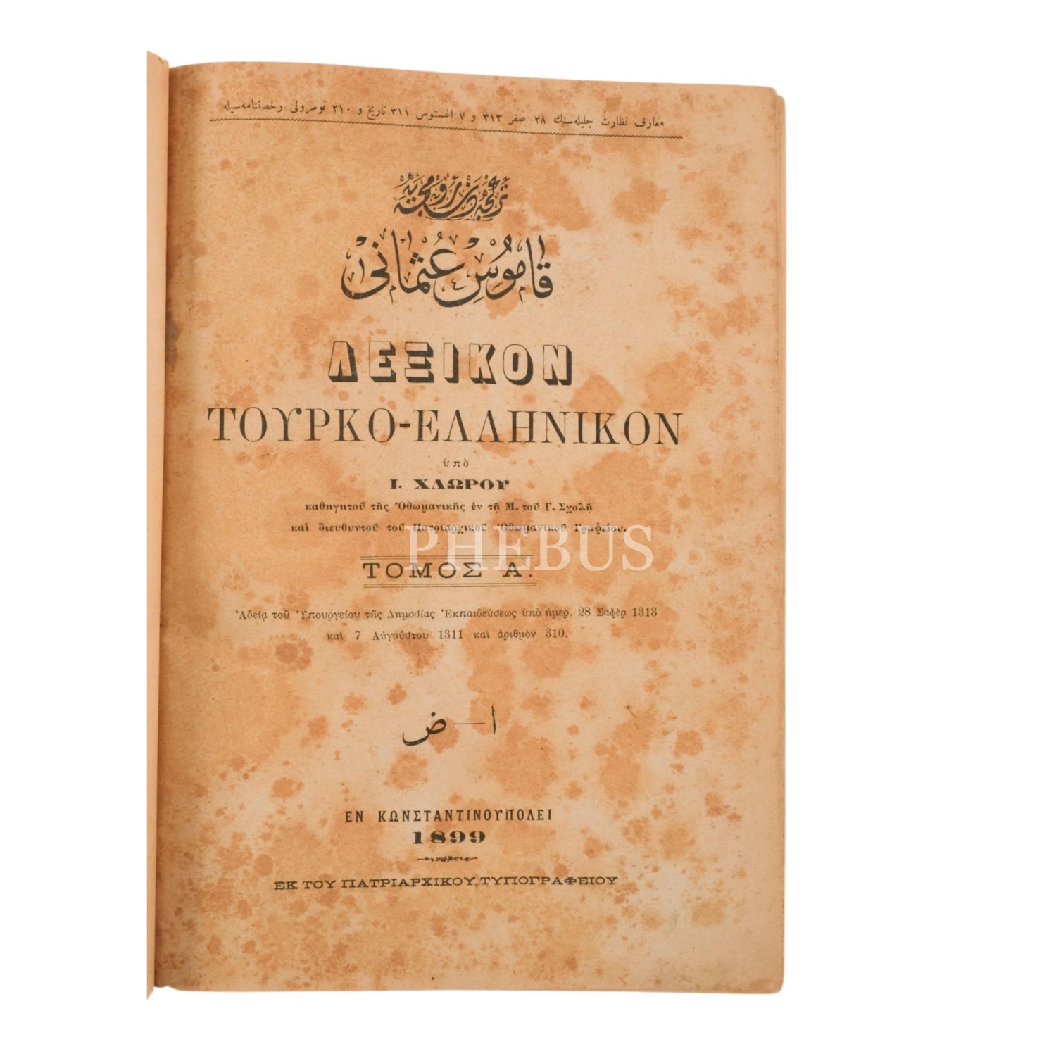 TÜRKÇE´DEN RUMCA´YA KAMUS-İ OSMANÎ (2 cilt takım), Yanko Hloros, 1899, Patrikhane Matbaası, 2102 sayfa, 20x27 cm...