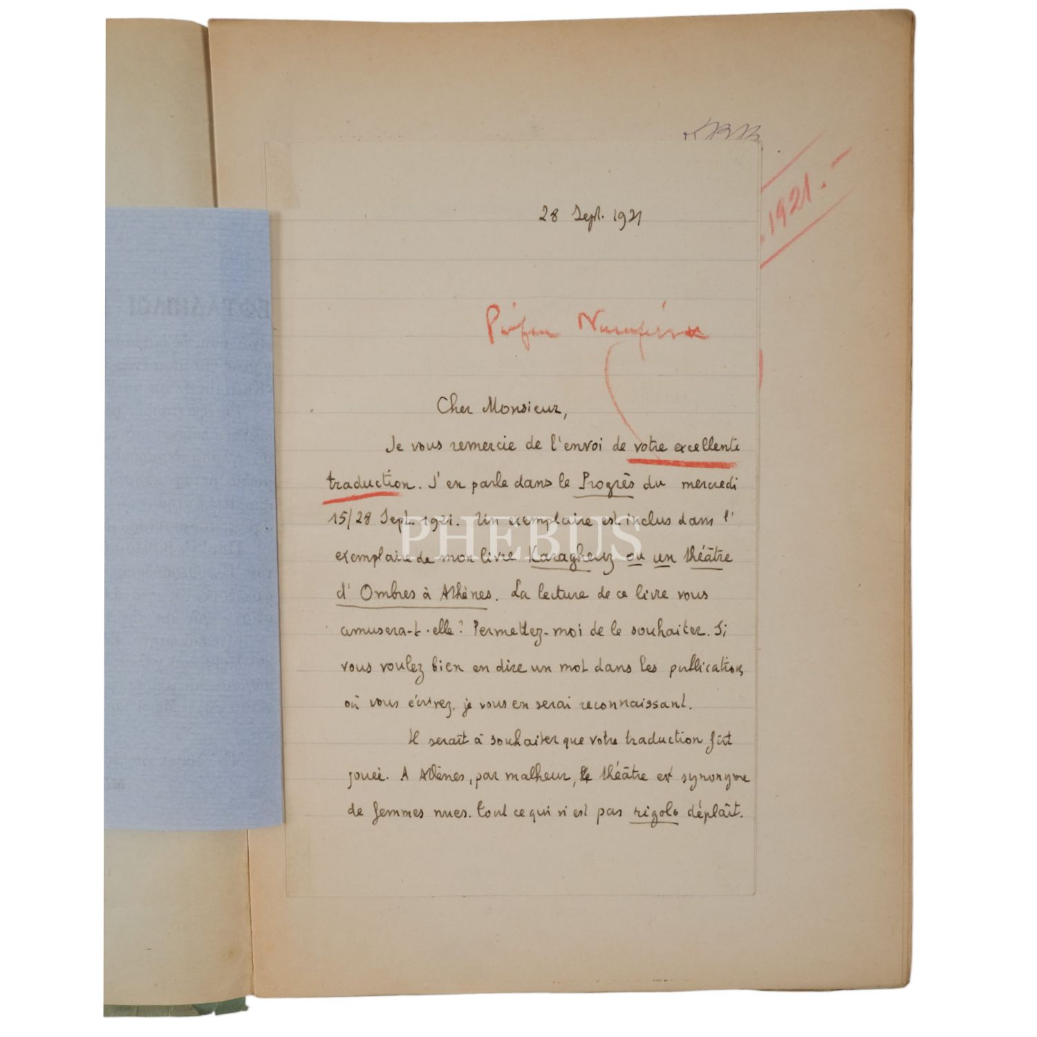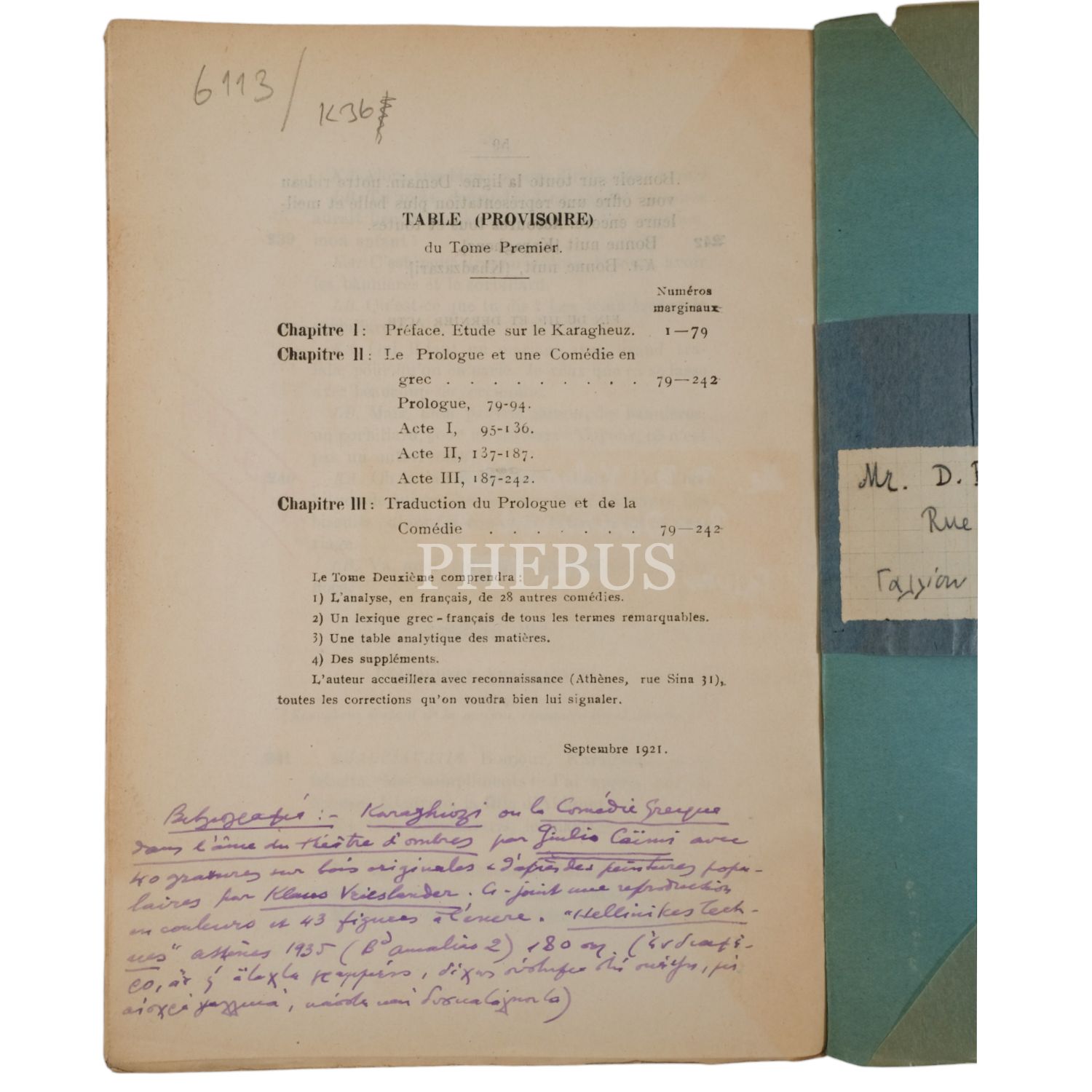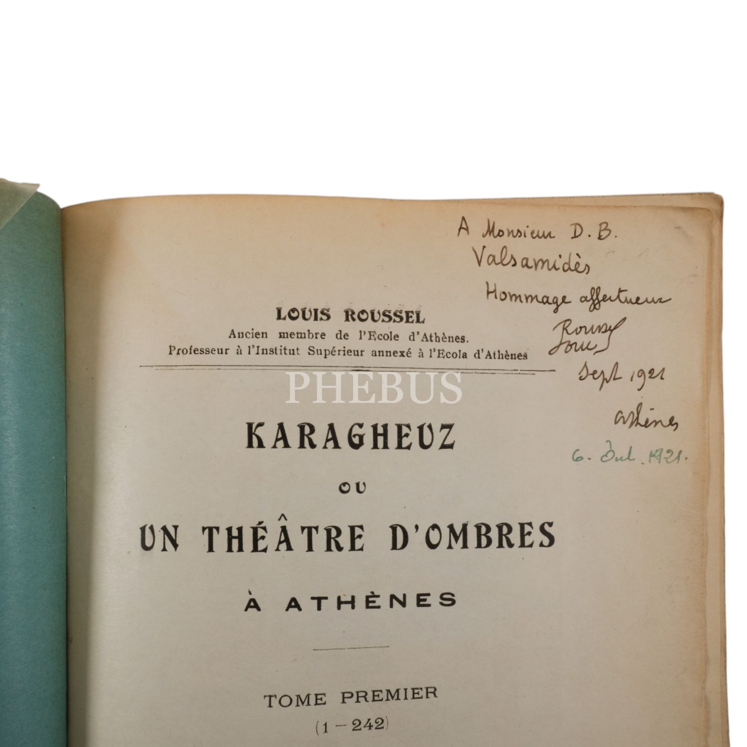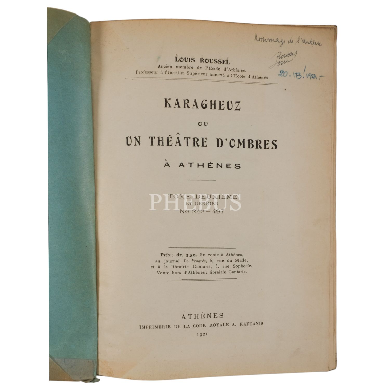 KARAGHEUZ OU UN THEATRE D´OMBRES A ATHENES (1 ve 2. Cilt), Louis Roussel, 1921, Imprimeire de la Cour Royale A. Raftains (Atina), 17x24 cm...