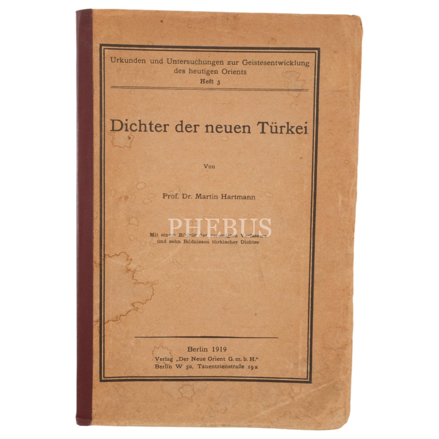 DICHTER DER NEUEN TURKEI, Martin Hartmann, 1919, Der Neue Orient G.m.b.H. (Berlin), 128 sayfa, 16x24 cm...