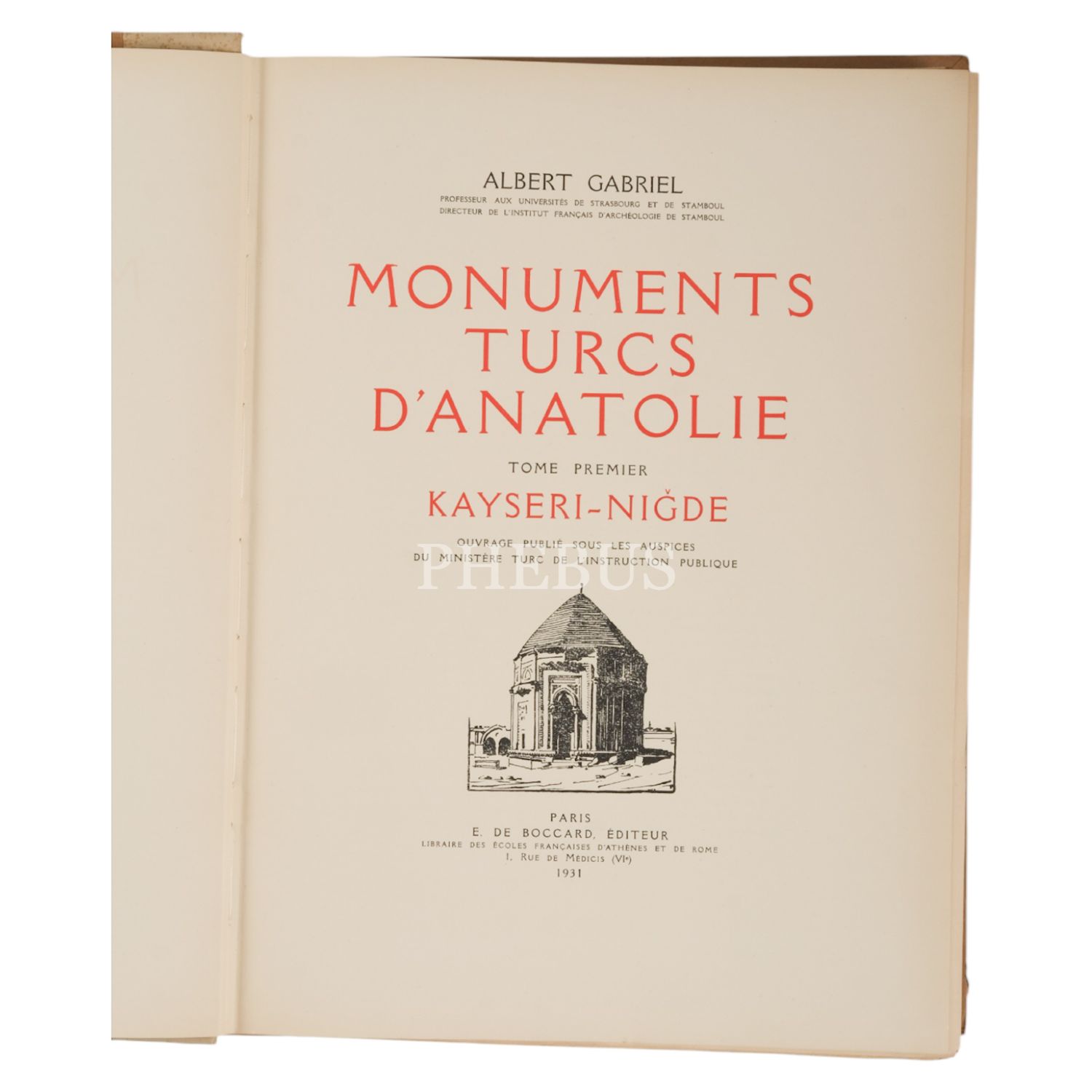 MONUMENTS TURCS D´ANATOLIE (2 cilt), Albert Gabriel, 1931, E. De Boccard (Paris), 365 sayfa+ 314 planş, 30x39 cm...