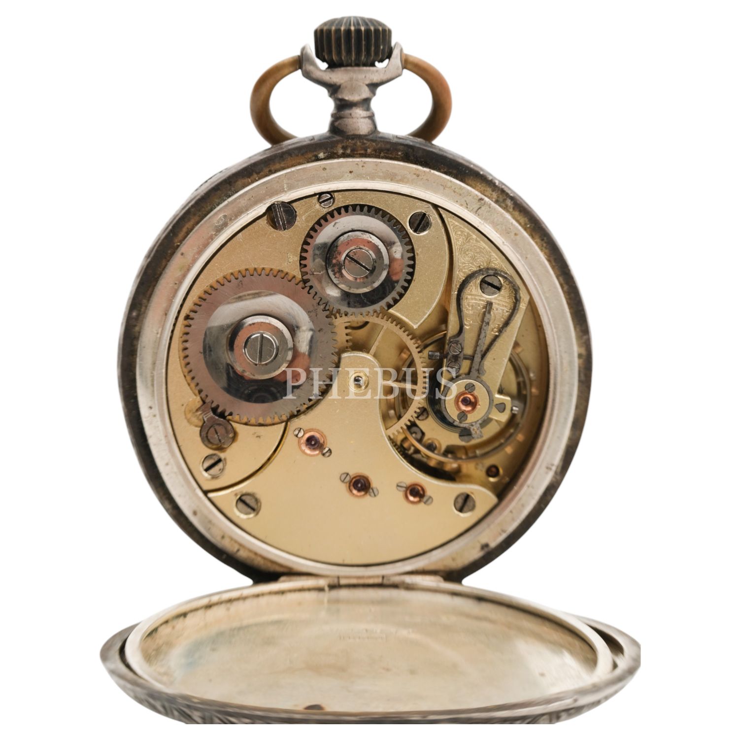 Arka kapağı kalem işçilğiyle Osmanlı arması işlemeli, gümüş kasalı cep saati: Mekanizma seri numarası: 1536827