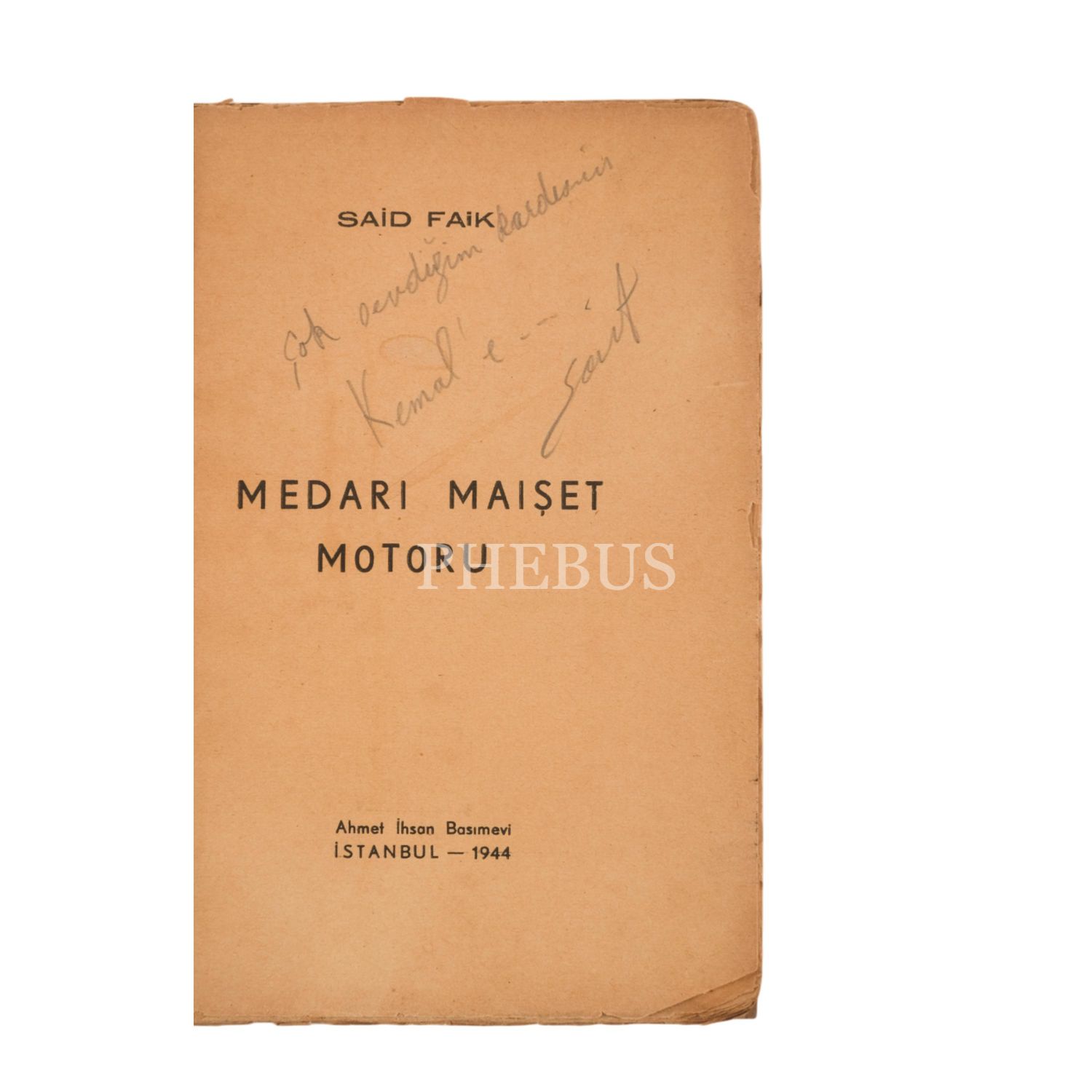 MEDAR-I MAİŞET MOTORU, Said Faik (Abasıyanık), 1944, Ahmet İhsan Basımevi, 184 sayfa, 14x20 cm...