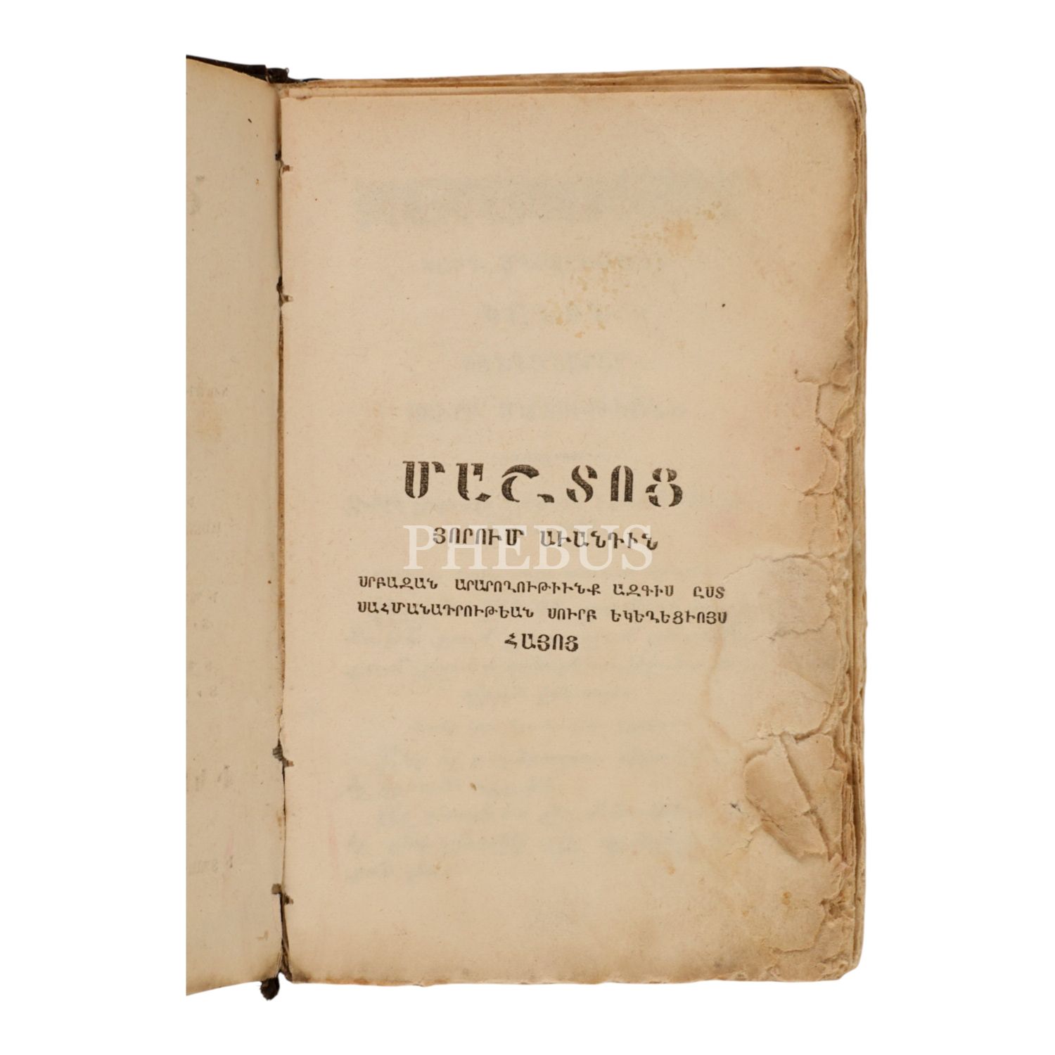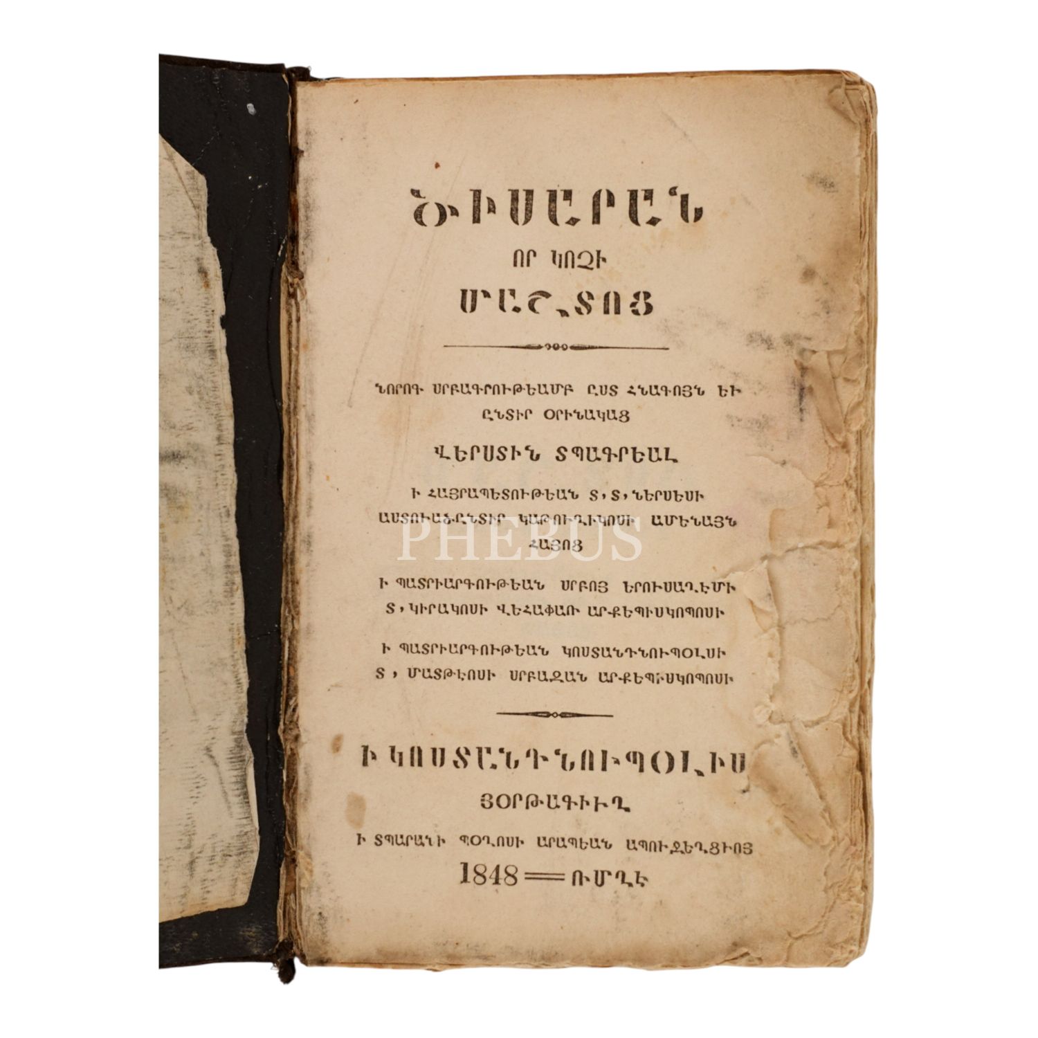 İlk Türkçe çeviri roman olan Telemak´ın Ermenice çevirisi.
