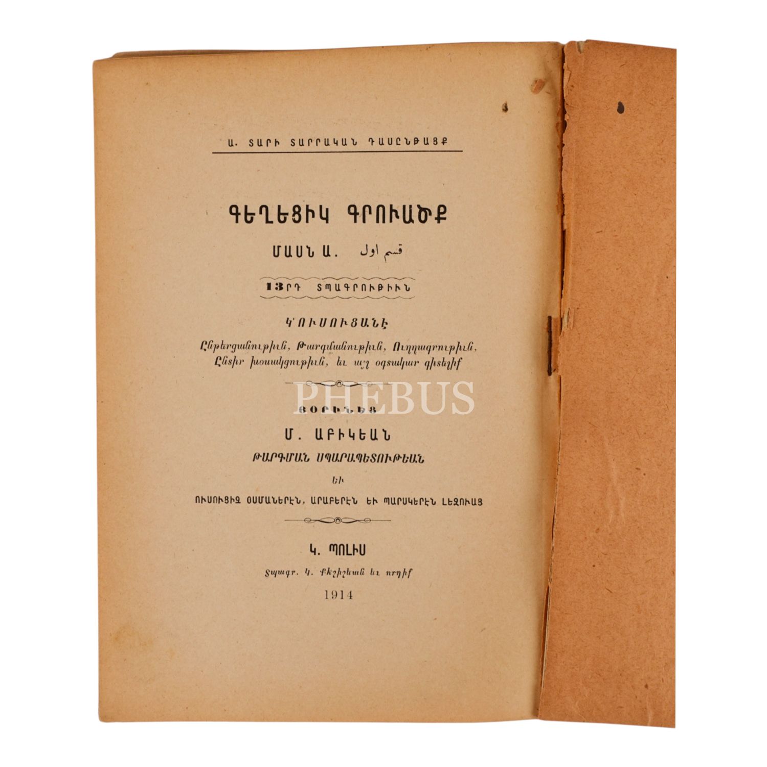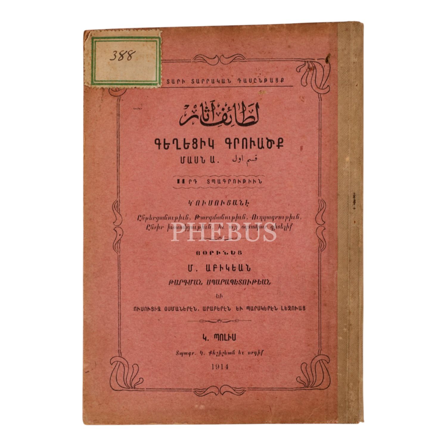 KEĞETSİG KIRVADZ (GÜZEL YAZI), M. Apigyan, 1914, İstanbul: Keşişyan Matbaası, sayfa 64, 14x19.5cm…