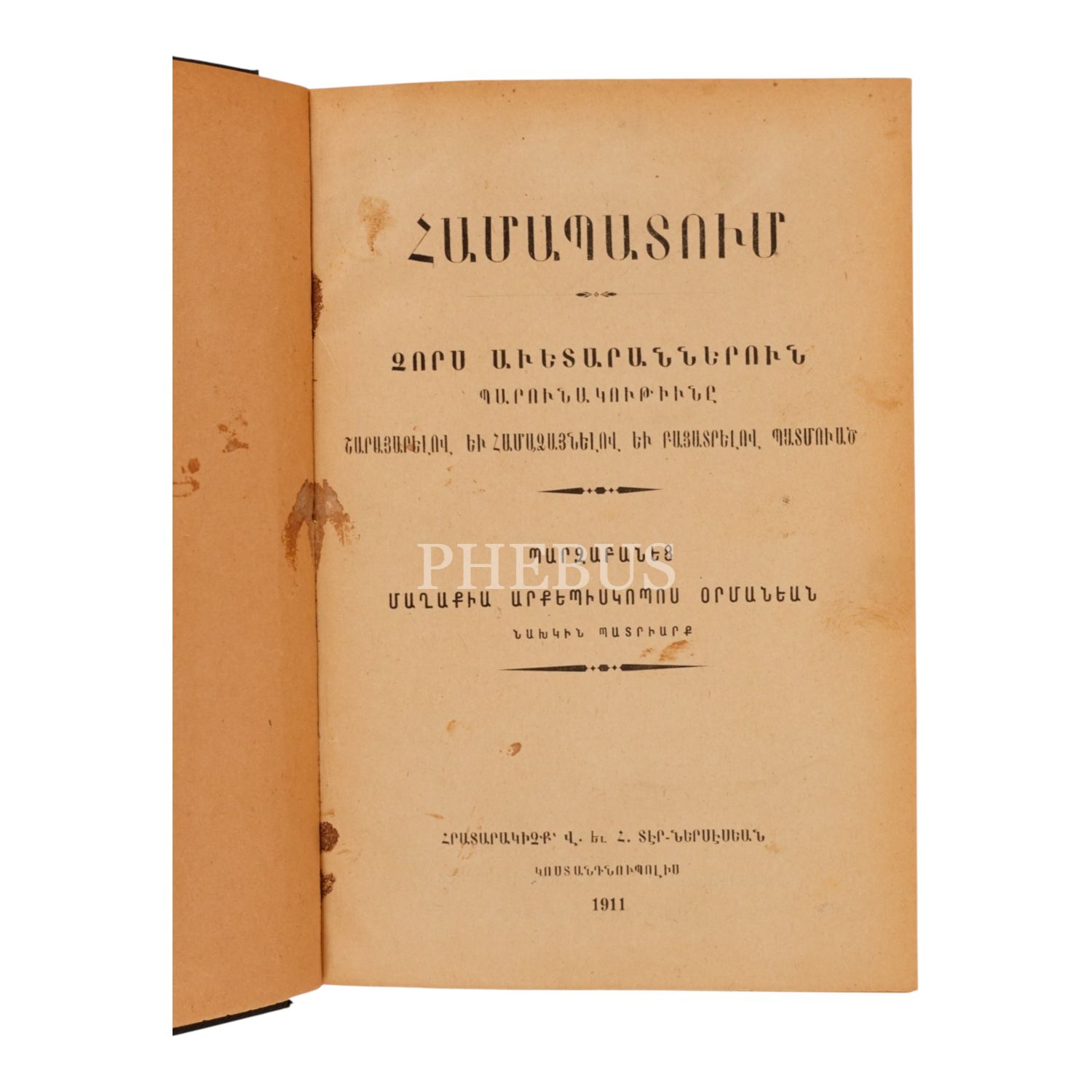HAMABADUM, Eski Patrik Mağakya Ormanyan, 1911, İstanbul: Der-Nersesyan Matbaası, sayfa 1104, 15x20cm...