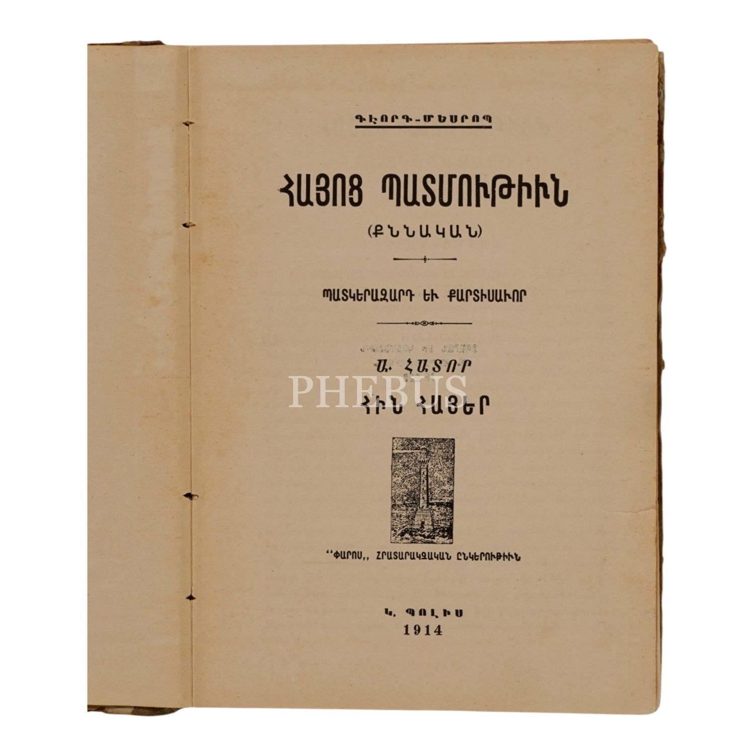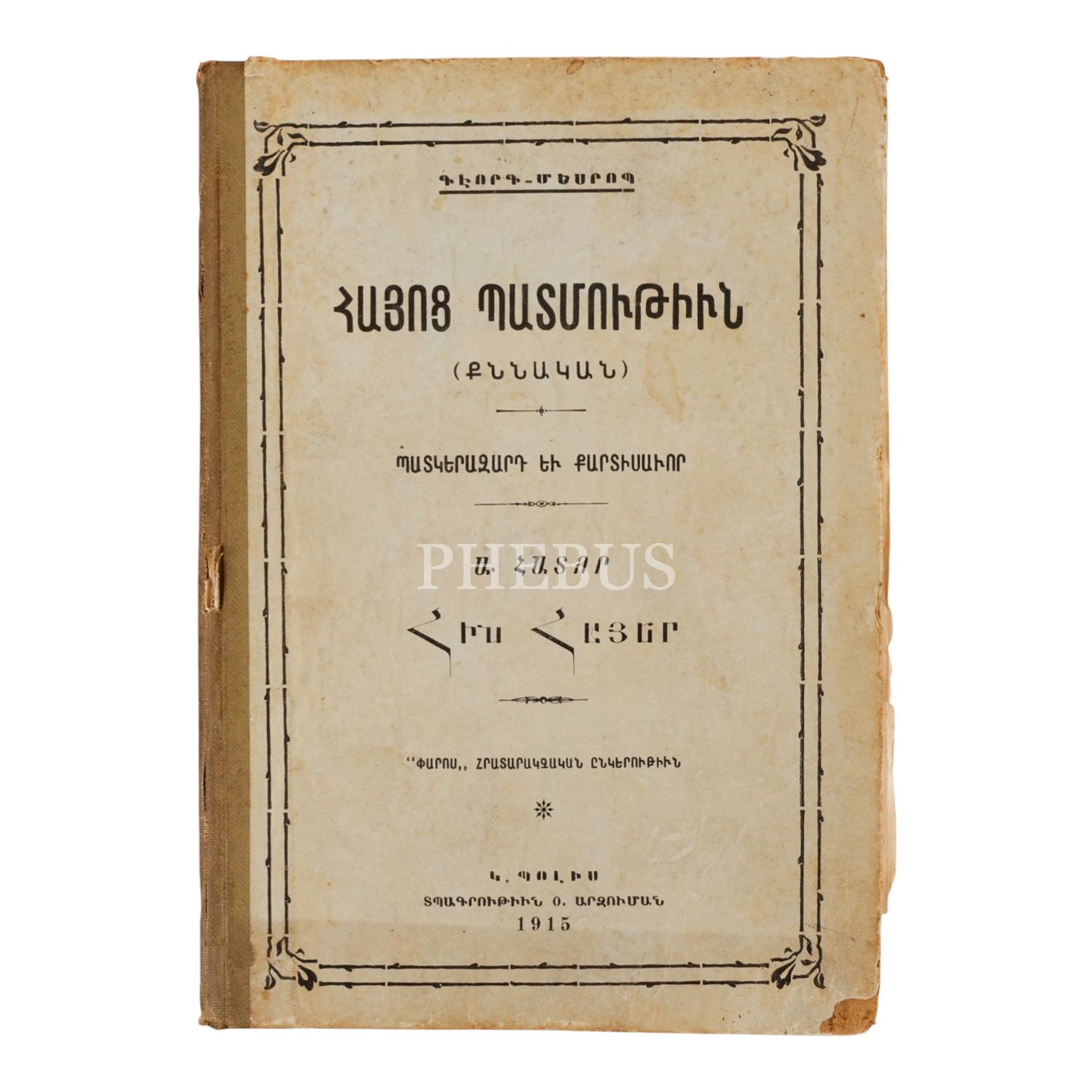 HAYOTS BADMUTYUN (ERMENİ TARİHİ), Kevork Mesrob, 1915, İstanbul: Arzumanyan Matbaası, sayfa 317, 14x19cm…