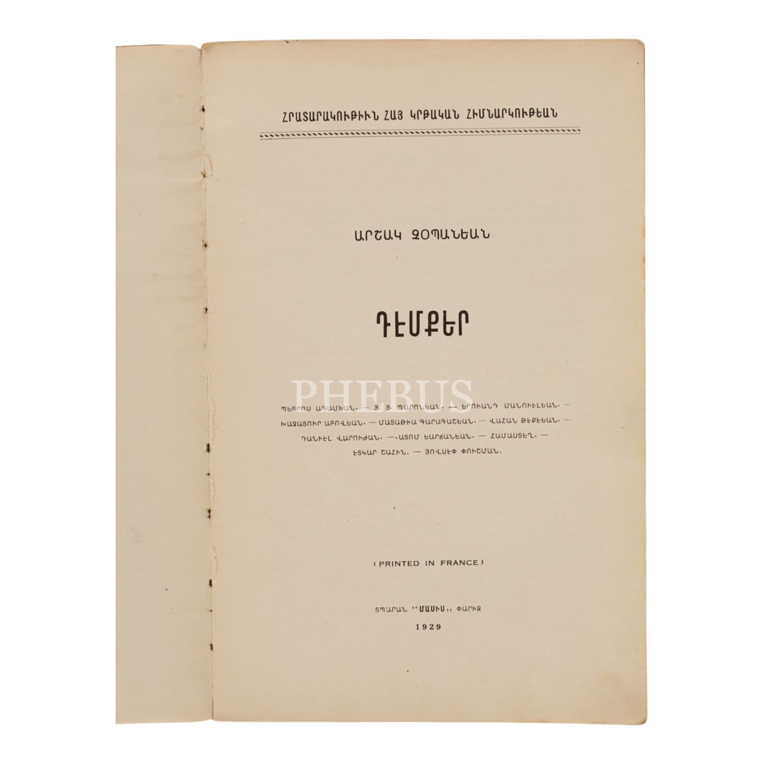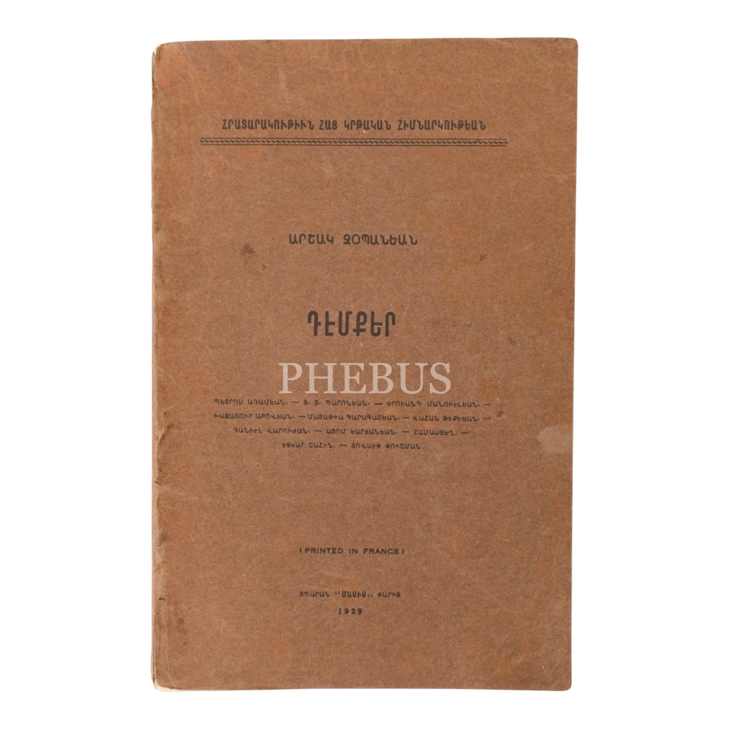 TEMKER (SİMALAR), Arşag Çobanyan, 1929, Paris: Masis Matbbası, sayfa 190, 15x24cm…