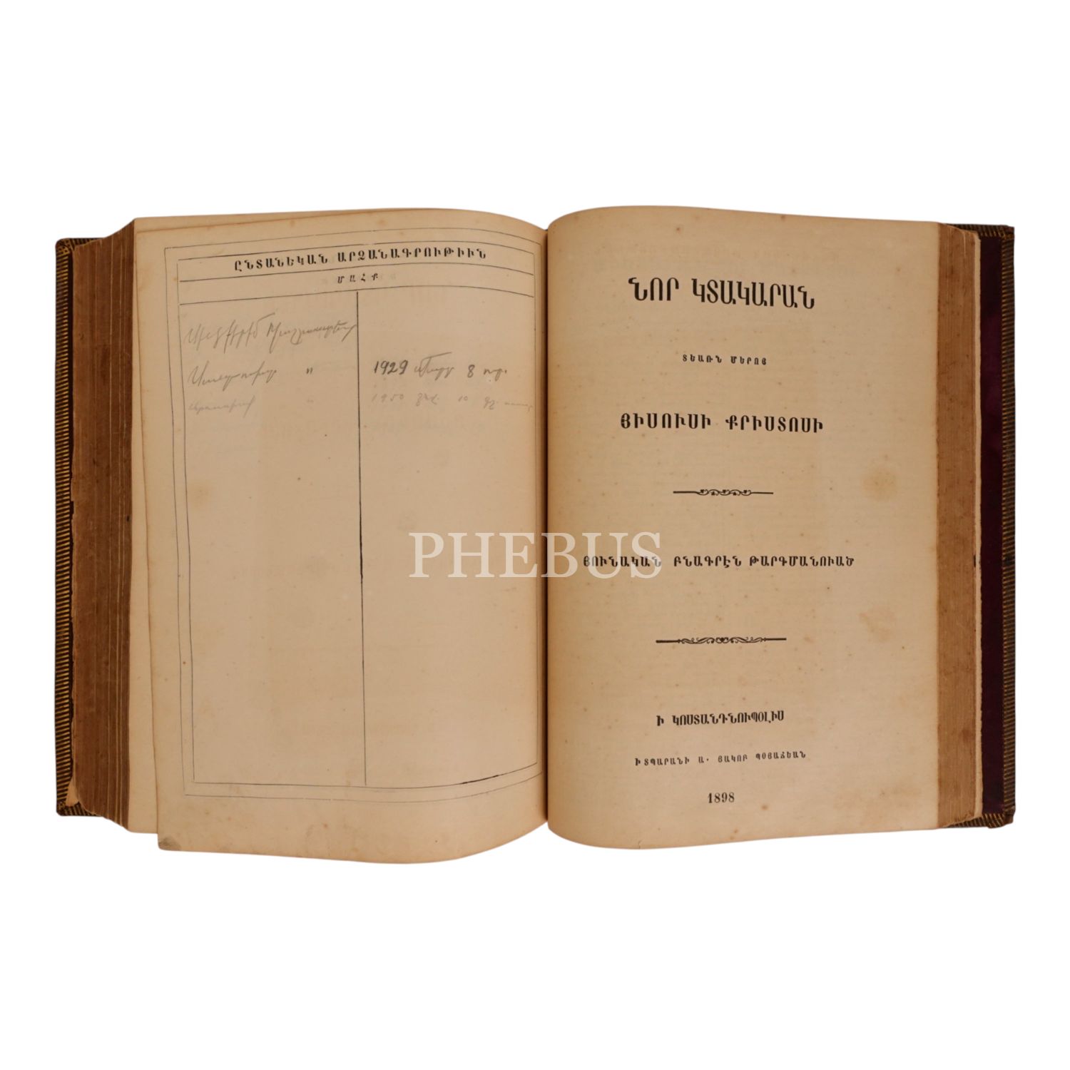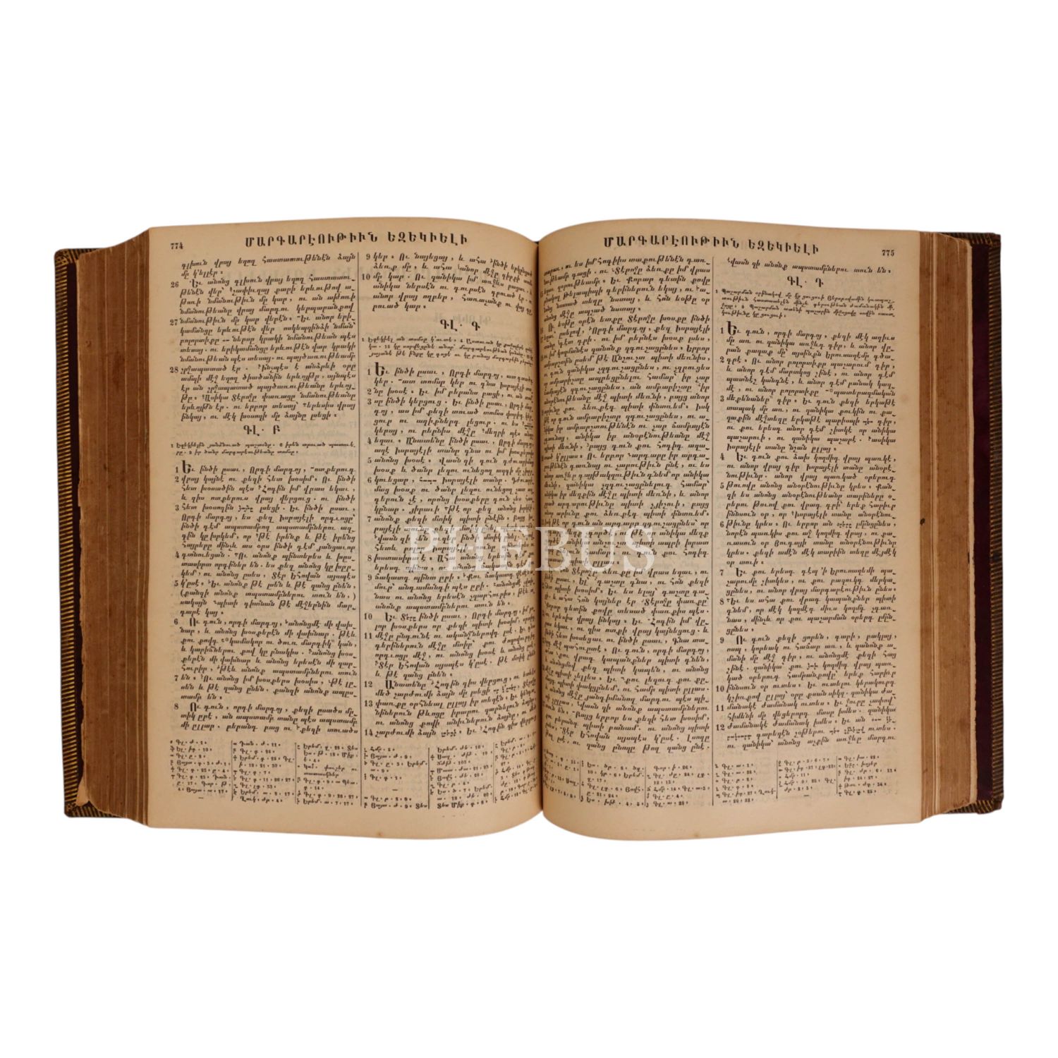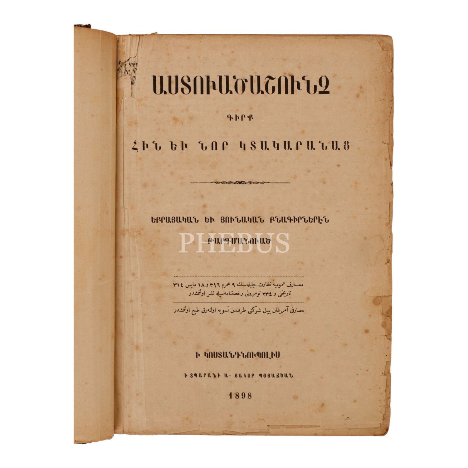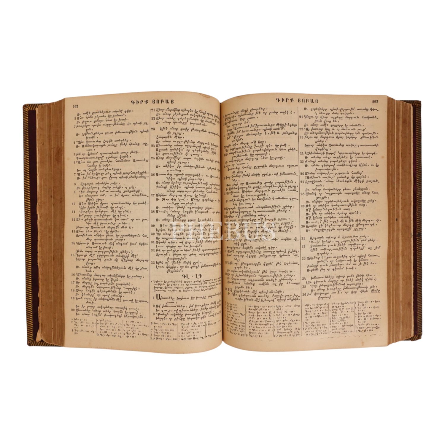 ASDVADZAŞUNÇ KİRK HİN YEV NOR GIDAGARANTS (KİTAB-I MUKADDES ESKİ VE YENİ AHİT), 1898, İstanbul:Hagop Boyacıyan Matbaası, sayfa 1169, 22x28cm…