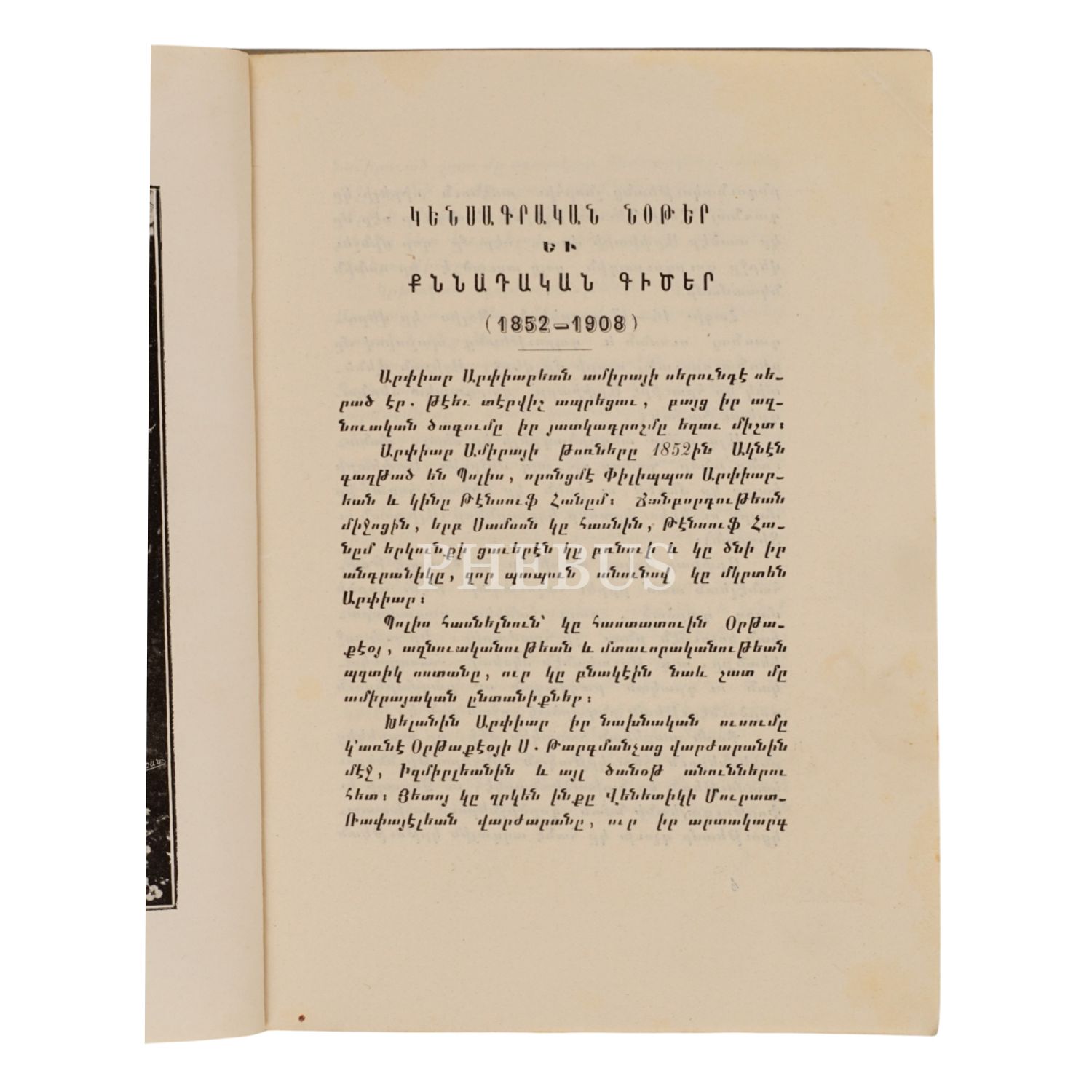 HUŞARTSAN VOĞPETSYAL ARPİAR ARPİARYANİ (ARPİAR ARPİARYANIN ANITI), 1911, Kahire: Berberyan Matbaası, sayfa 46, 13x18cm…