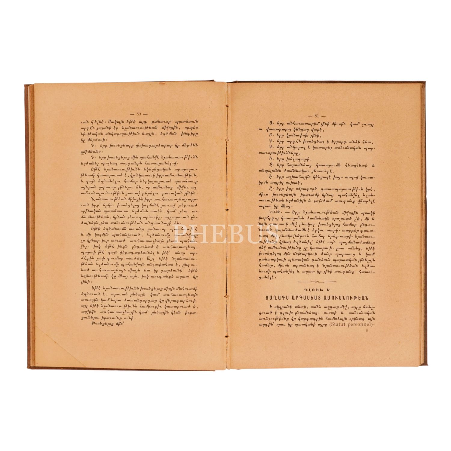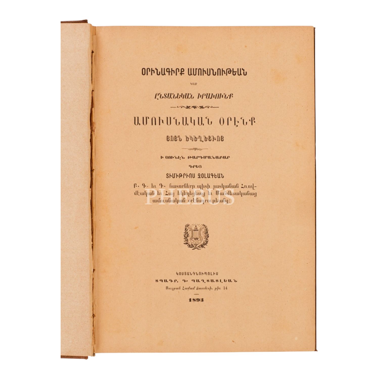 ORİNAKİRK AMUSNUTYAN (EVLENME KANUNLARI), Dimitrios Çolakyan, 1893, İstanbul: Bağdadlıyan Matbaası, sayfa 159, 17x25cm...