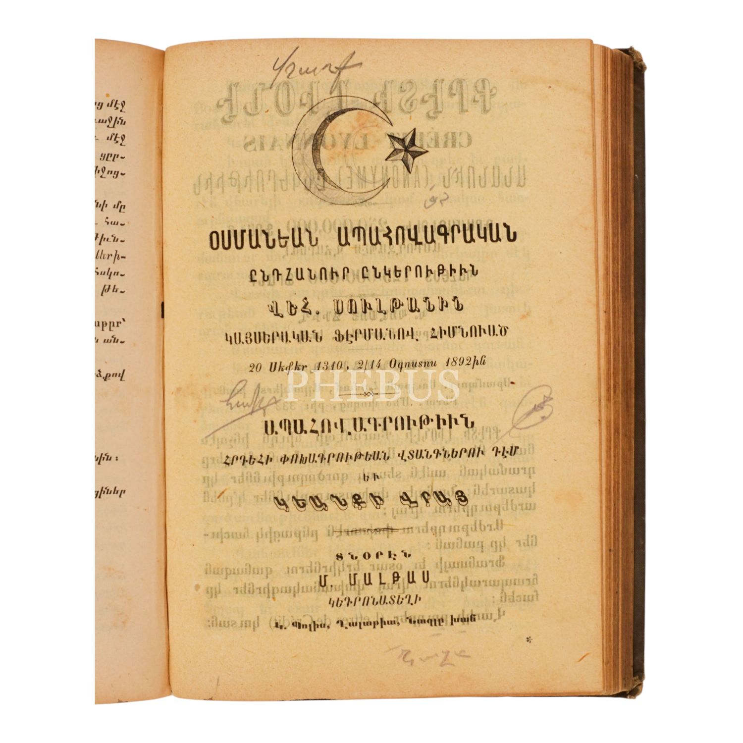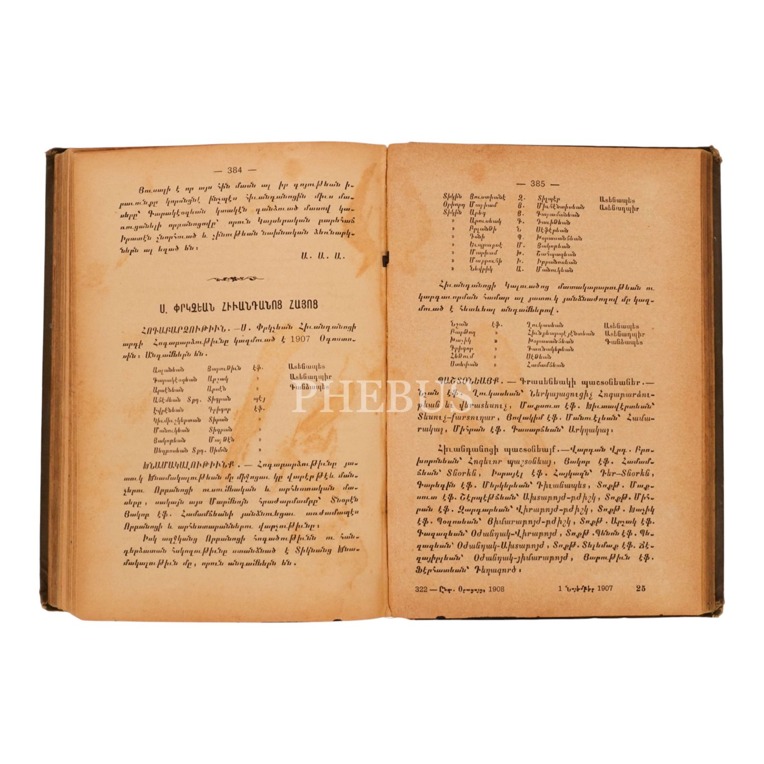 1908 INTARTSAG ORATSUYTS SURP PIRGİÇYAN HİVANTANOTSİ HAYOTS (1908 SURP PIRGİÇ ERMENİ HASTANESİ GENEL SALNAMESİ), 1908, İstanbul: Madteosyan Matbaası, sayfa 517, 13x19cm…