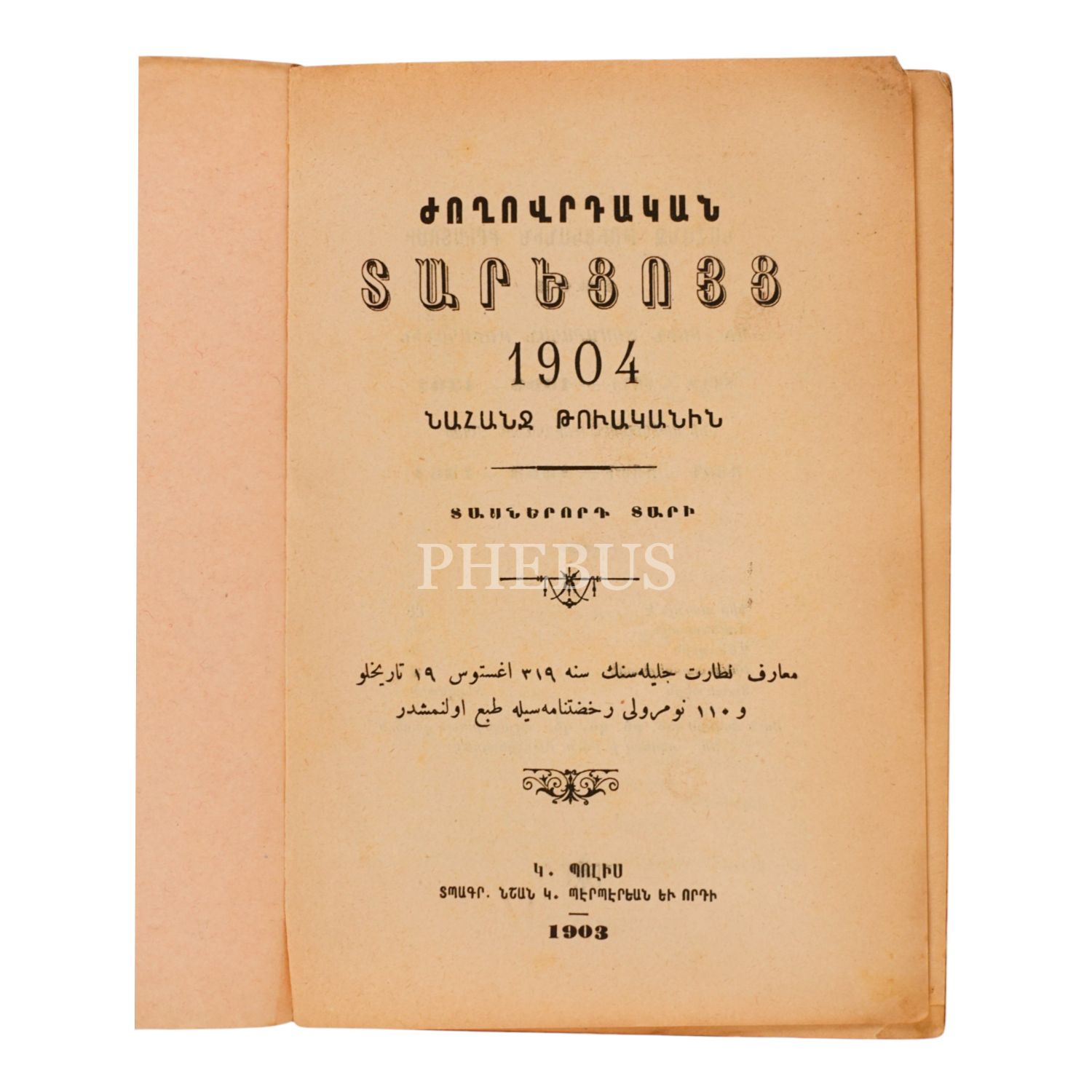 JOĞOVRTAGAN DARETSUYTS 1904 (MİLLET SALNAMESİ 1904), 1904, İstanbul: Nışan G. Berberyan Matbaası, sayfa 272, 12x18cm…