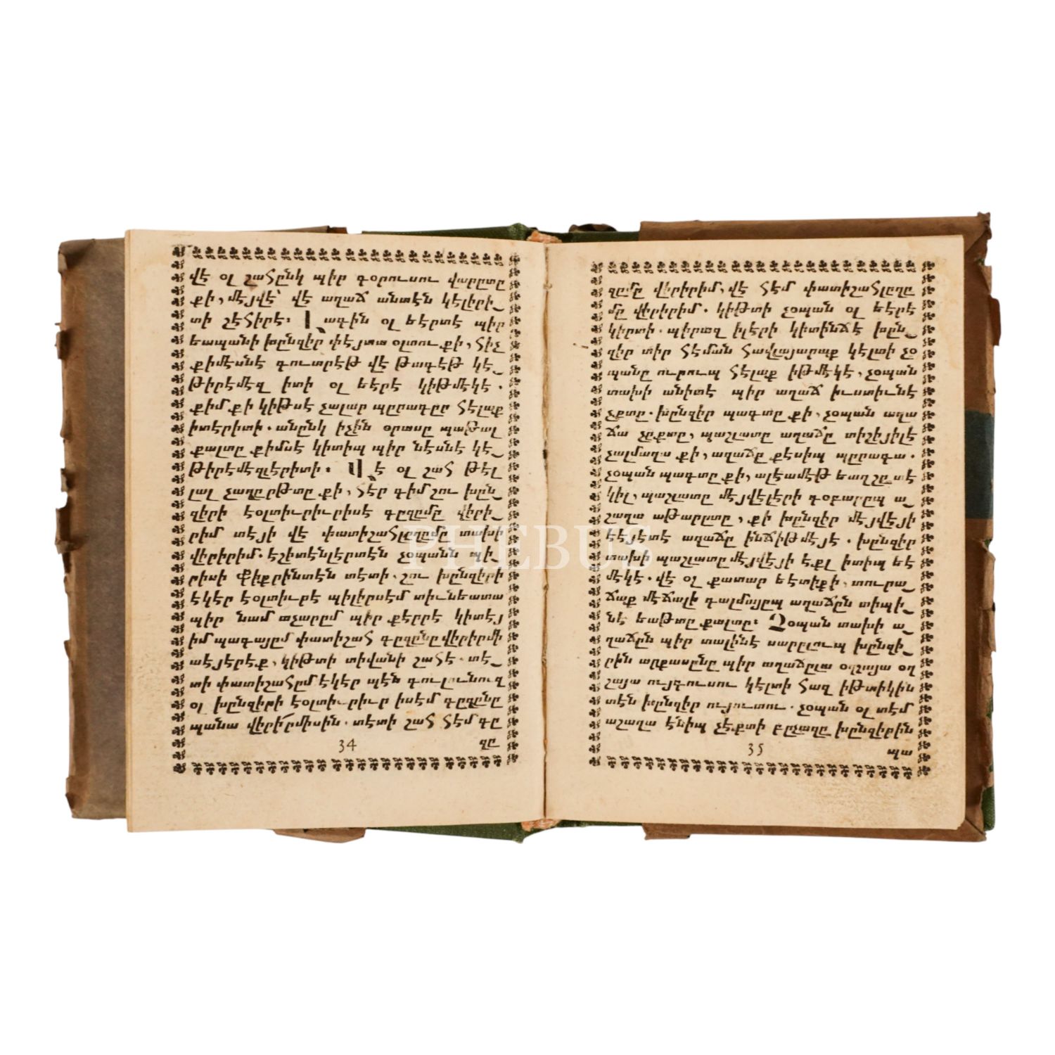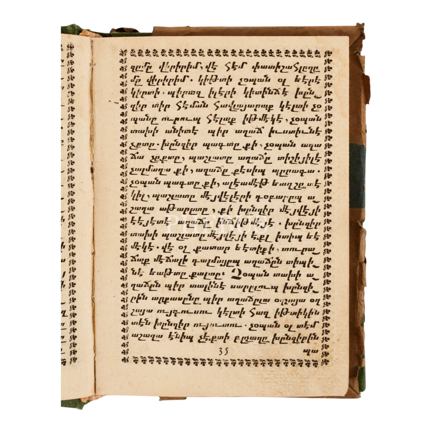 Ermeni Harfli Türkçe. Ketebe sayfası eksik olup kitap sayfa yanlarından kesiktir.