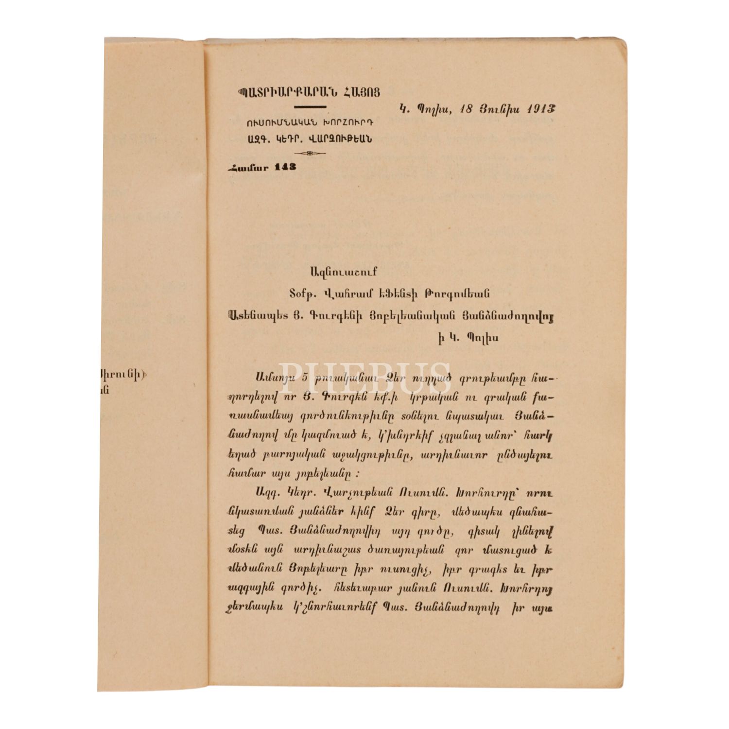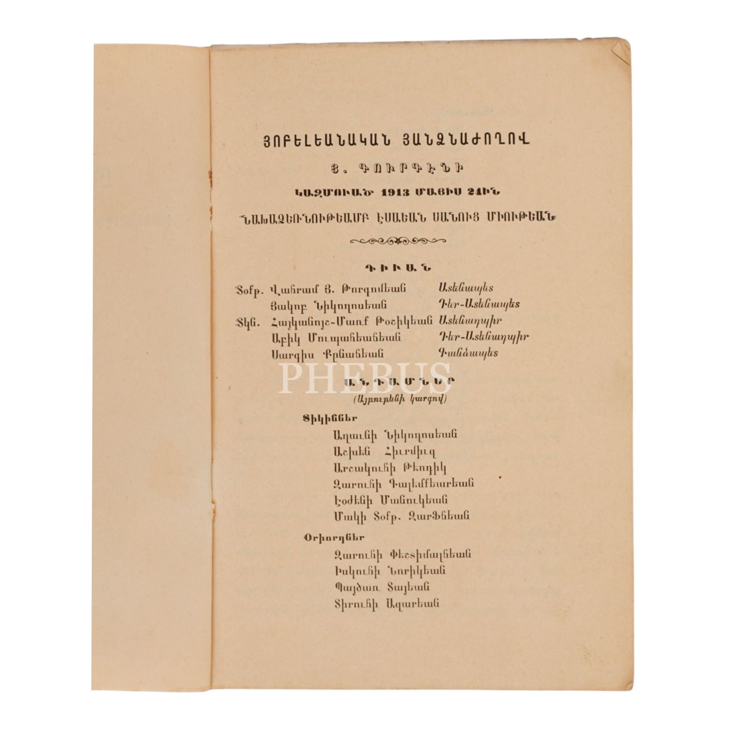 KARASNAMYA HOPELYAN HAGOP KURKENİ (HAGOP KURKEN´İN 40. YIL JÜBİLESİ), 1913, İstanbul, sayfa 32, 12x18cm...