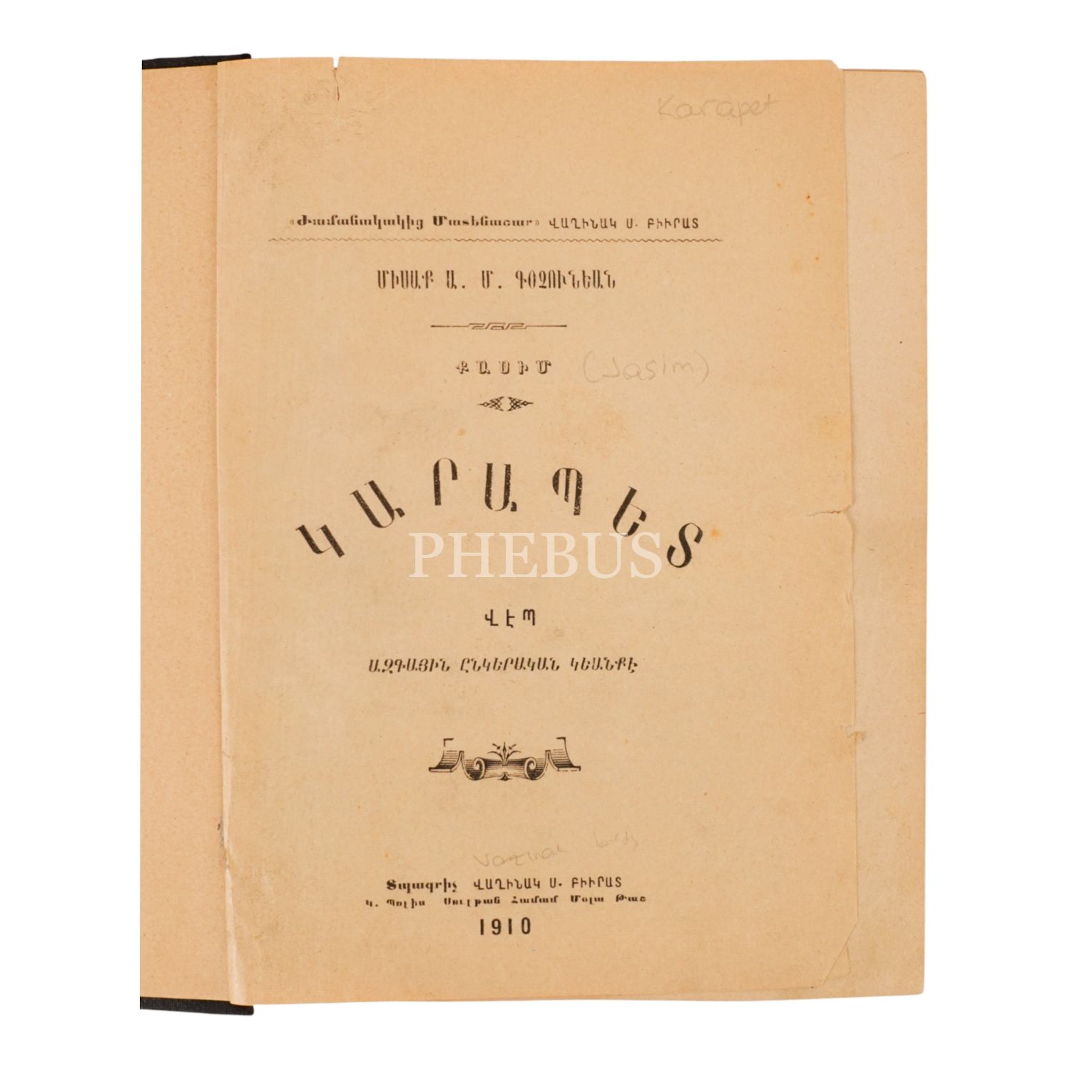 GARABED, Misak Koçunyan, 1910, İstanbul: Vağinag S. Pürad Matbaası, sayfa 817, 14x19cm…