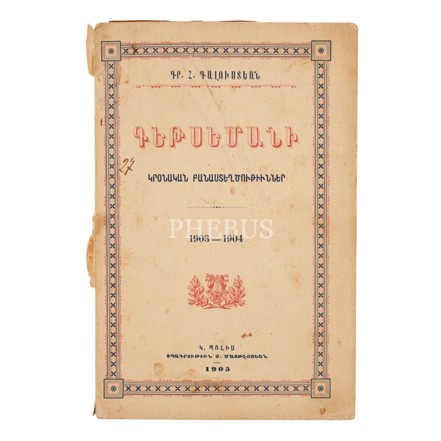 KETSEMANİ (GETSEMANE), Kr. H. Kalusdyan, 1905, İstanbul: H. Matdeosyan Matbaası, sayfa 114, 12x18cm...
