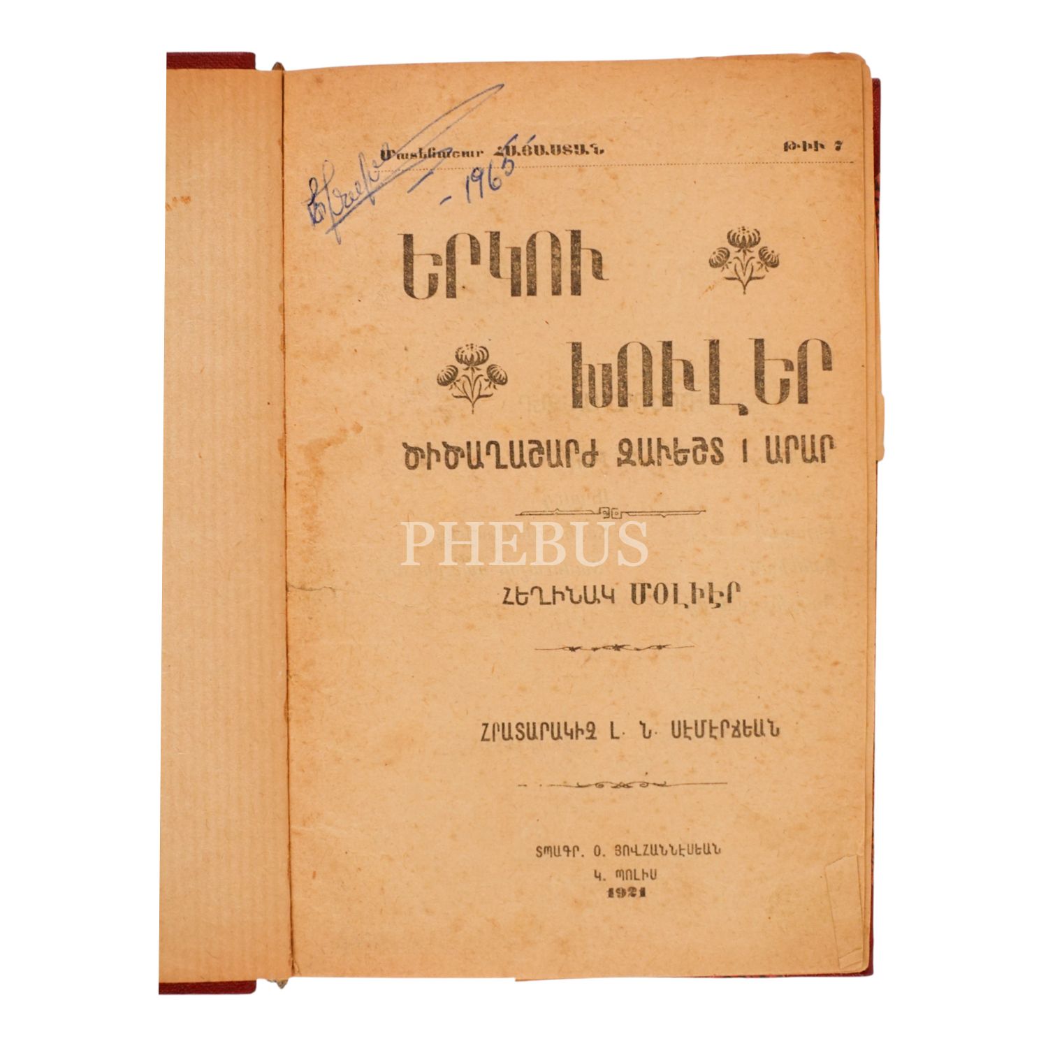 1. YERGU HULER (İKİ SAĞIR), Moliere, 1921, İstanbul: Hovhannesyan Matbaası, sayfa 128, 2. ŞİRVANZADE, Aram Andonyan, 1911, İstanbul, sayfa 48, 3. PİYER KİYARİ, 1913, İstanbul, sayfa 88, 12x18cm…