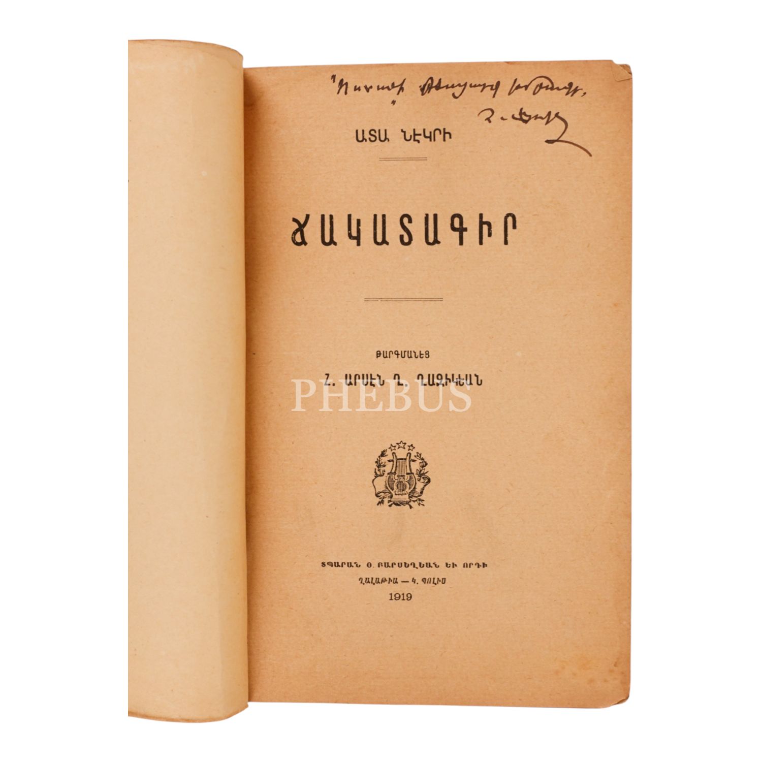 CAGADAKİR (ALIN YAZISI), Peder Arsen Ğazigyan, 1919, İstanbul: Onnig Parseğyan Matbaası, sayfa 176, 12x18cm…