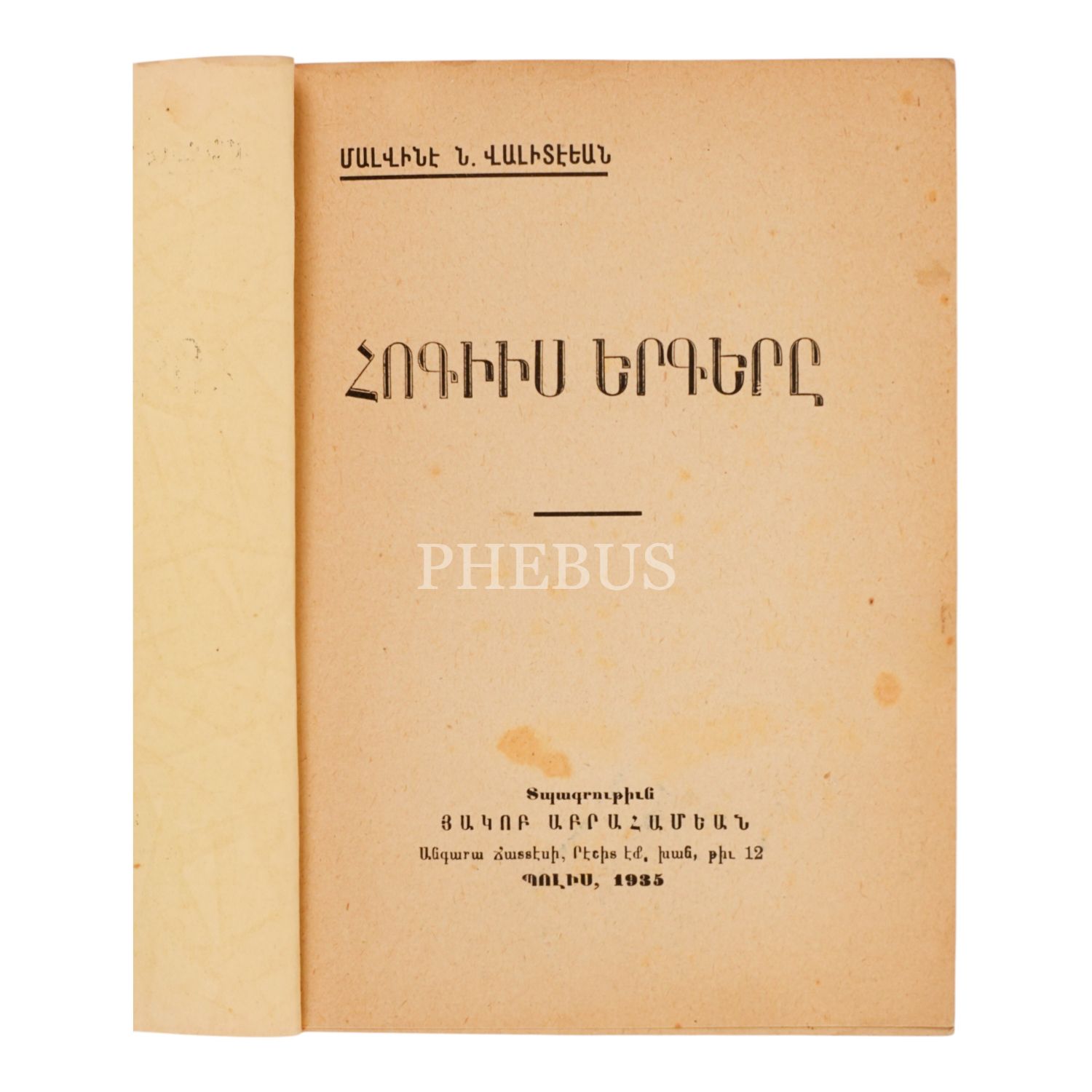 HOKİİS YERKERI (RUHUMUN ŞARKISI), Malvine Valideyan, 1935, İstanbul: Aprahamyan Matbaası, sayfa 56, 12x16.5cm…