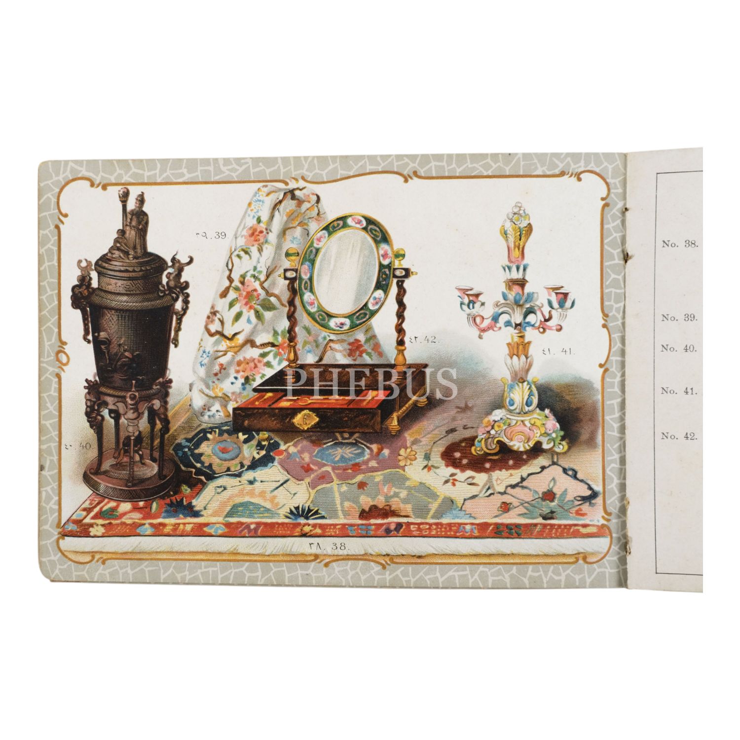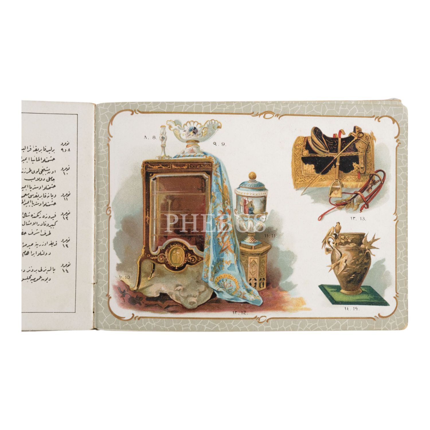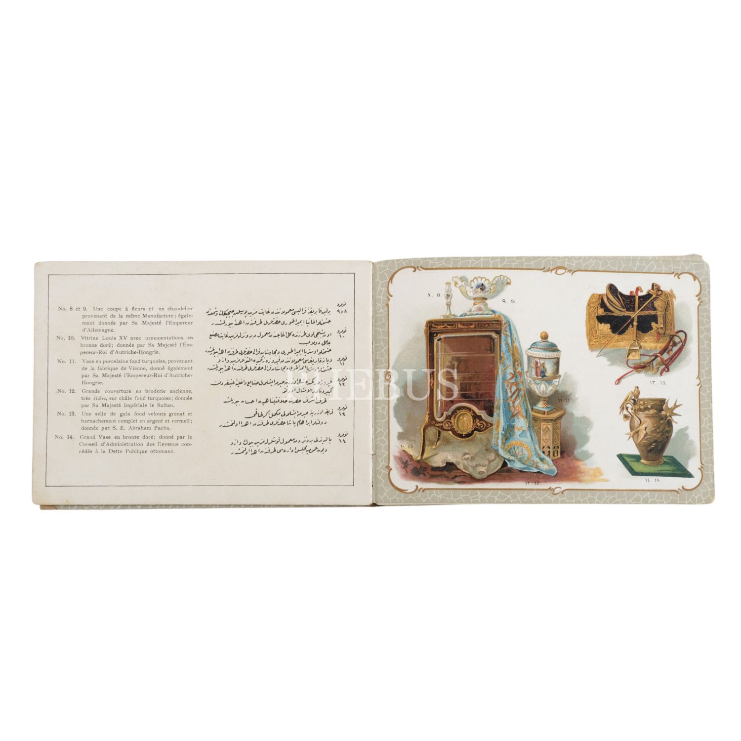 Sultan İkinci Abdülhamit´in emriyle ve himayesiyle düzenlenen müzayedede satışa sunulan ürünlerin bazılarını bizzat Sultan II. Abdülhamid, bazılarını ise Alman İmparatoru II. Wilhelm ile Osmanlı Devleti´nin önde gelen devlet büyükleri vermiştir. Katalogda, ürünler hakkında açıklamalar ve renklendirilmiş fotoğrafları yer almaktadır. Müzayedenin geliri şehit ve gazi ailelerine bağışlanmıştır.