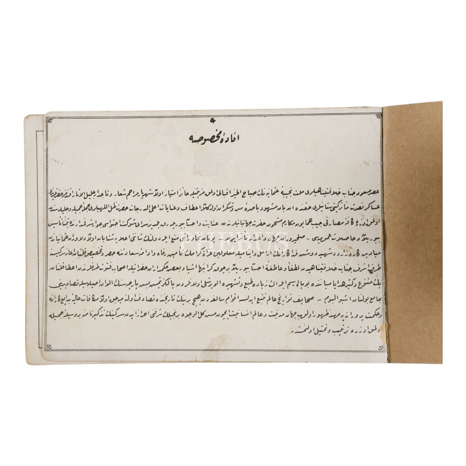Sultan İkinci Abdülhamid´in himayesinde, şehit ve gazi aileleri için düzenlenen müzayedenin katalogu, 30 sayfa, 18x13 cm...