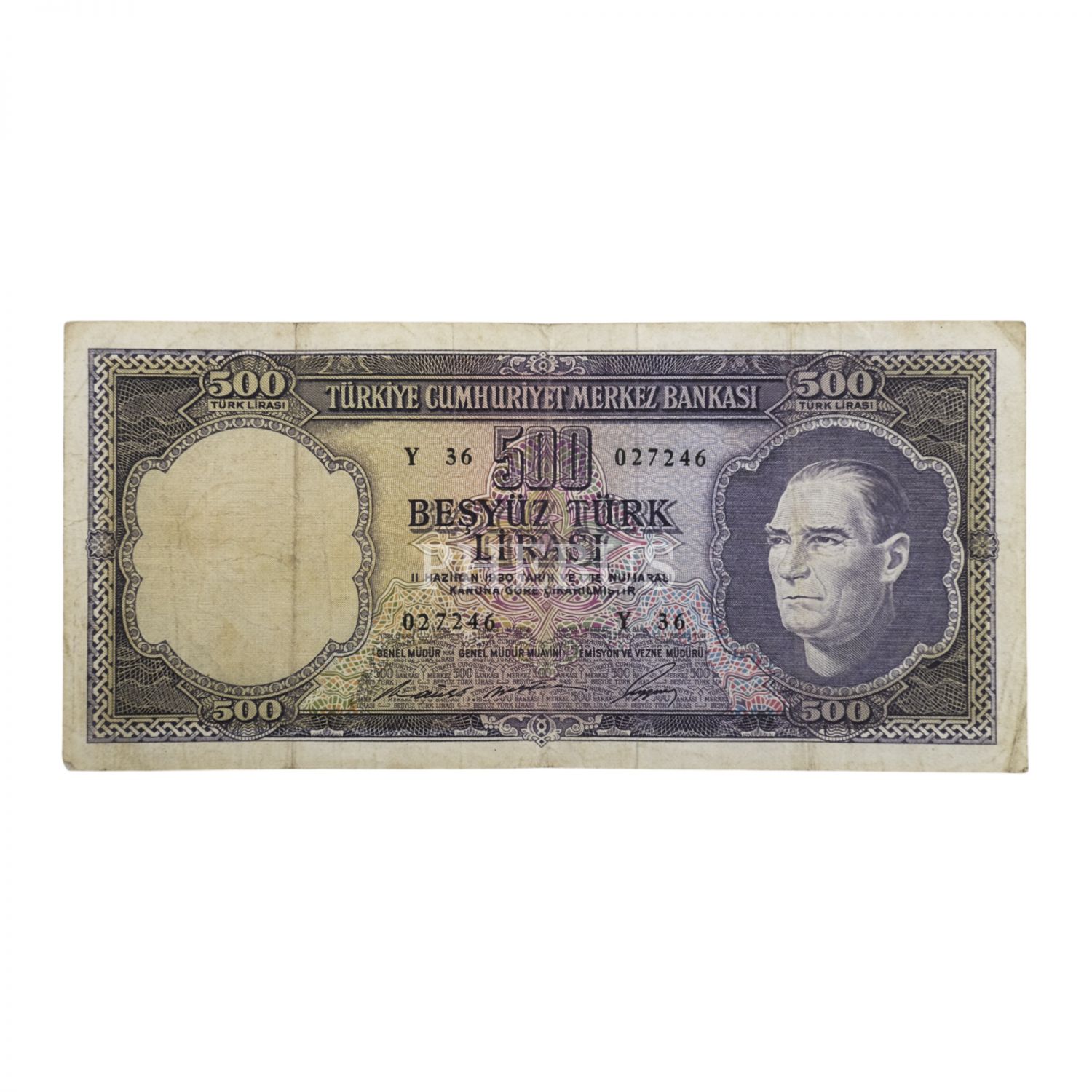 5. Emisyon 4. tertip 500 lira, Y36