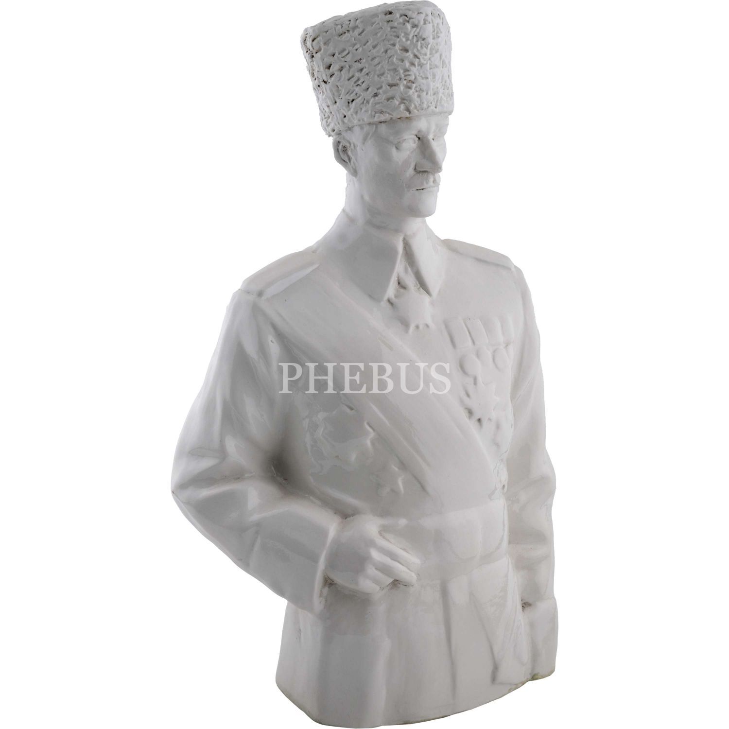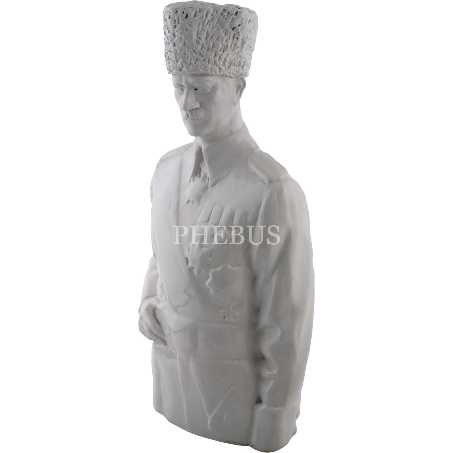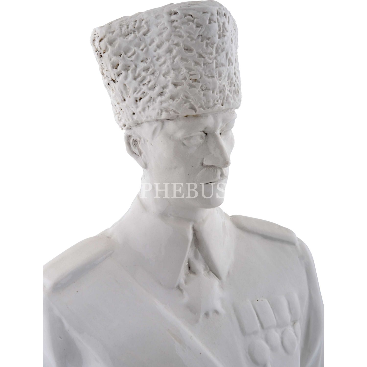 Asker üniformalı ve madalyalı seramik Mustafa Kemal Atatürk büstü, 28x46x13 cm...