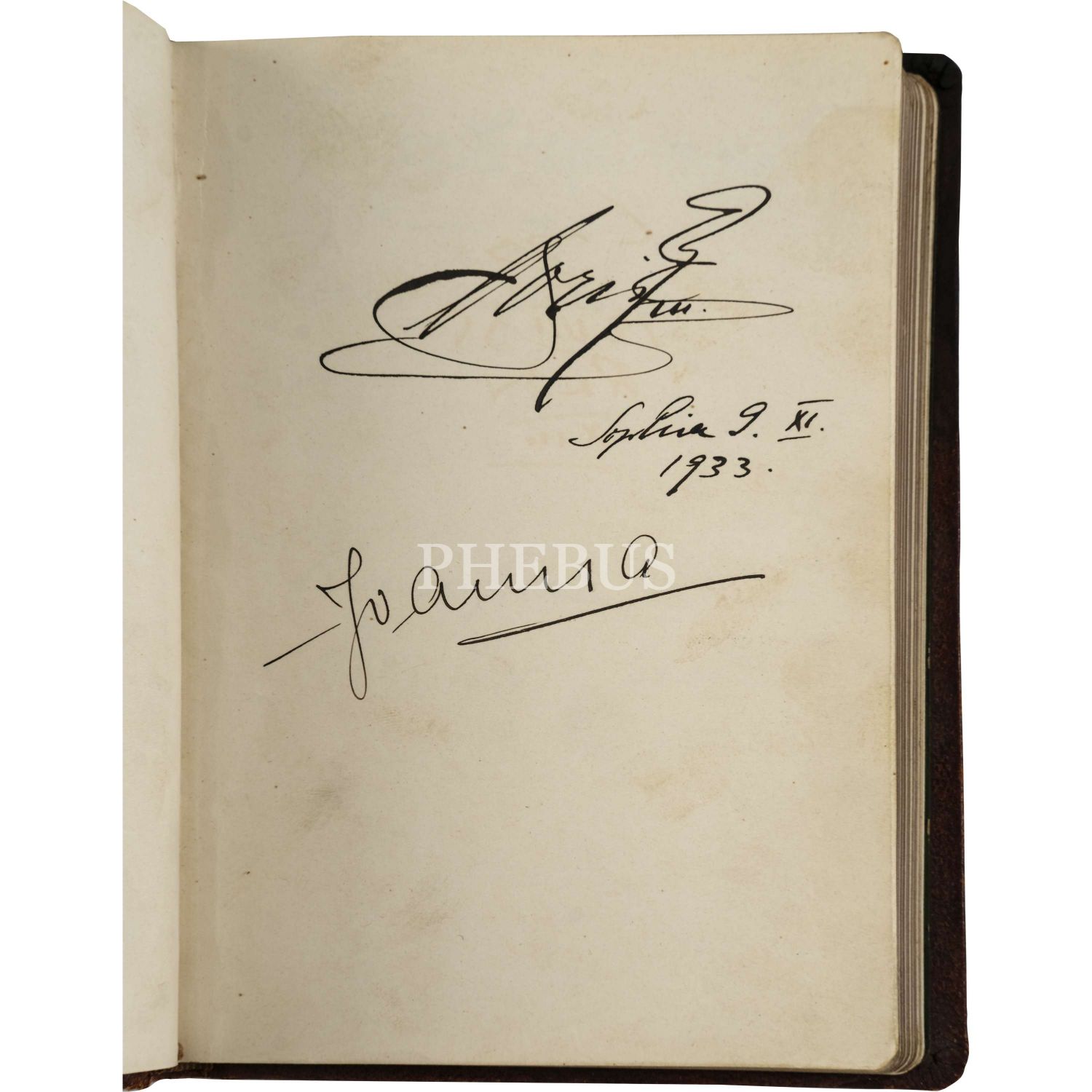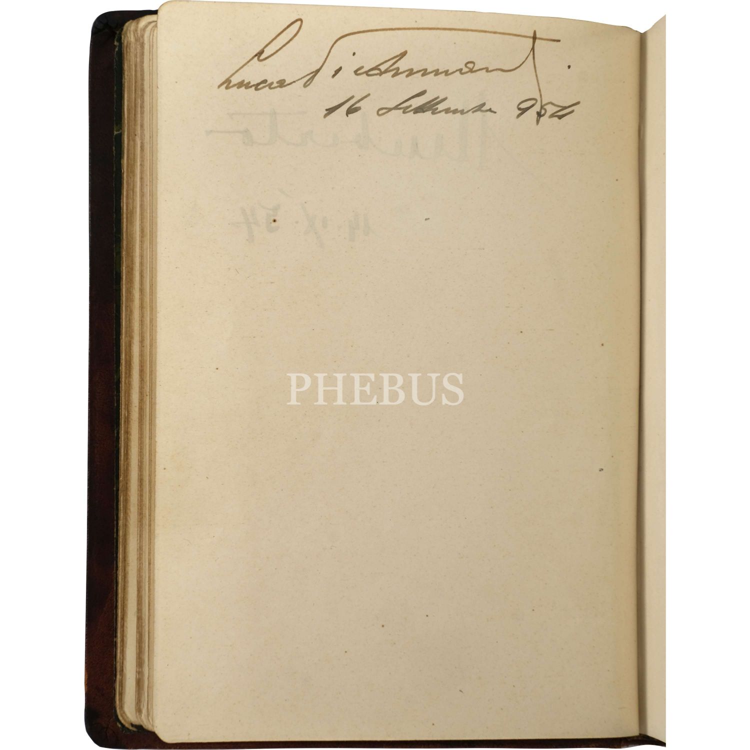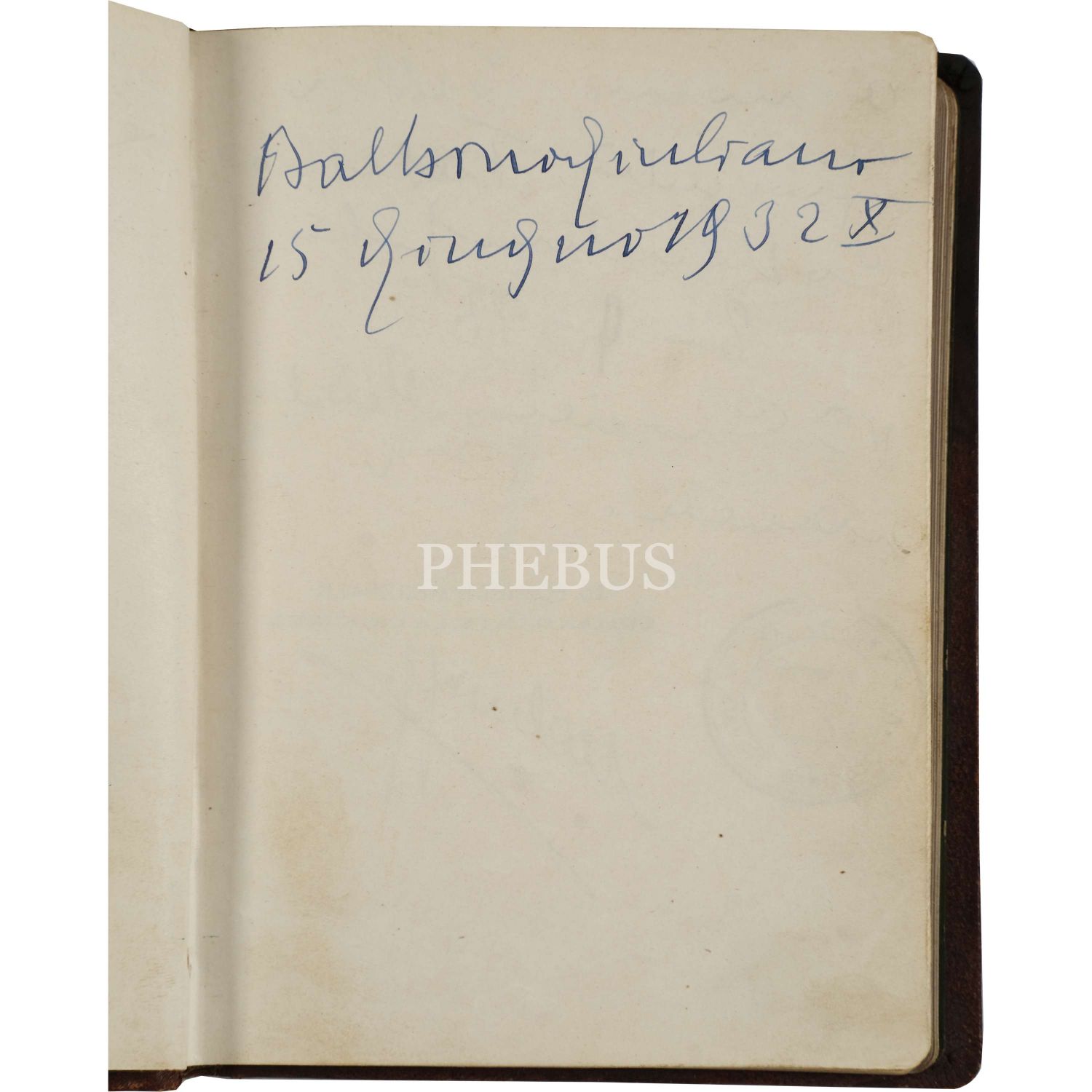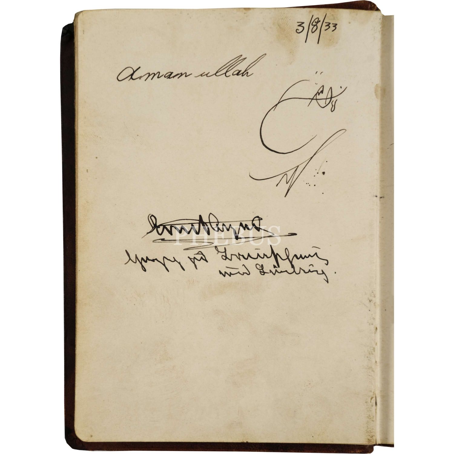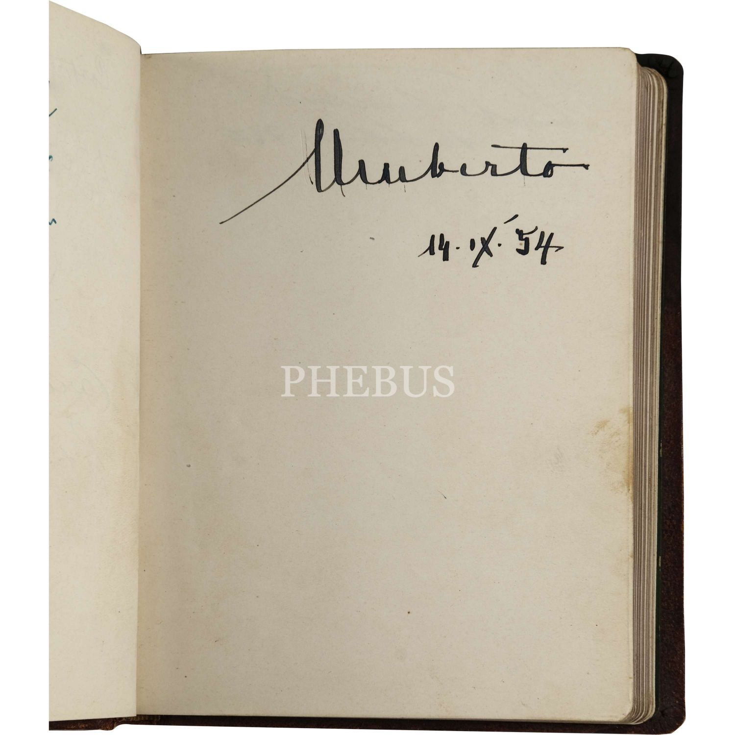 İçinde "Gazi Mustafa Kemal" imzalı menünün de yer aldığı; Eleftherios Venizelos, Amanullah Han, Kral Faysal gibi diplomatik şahsiyetlerin, Fütürizm akımının kurucusu İtalyan şair F. Marinetti'nin ve çok sayıda yazar ve şairin imzaladığı defter, 1931-1954, 22 sayfası dolu, 13x18 cm...