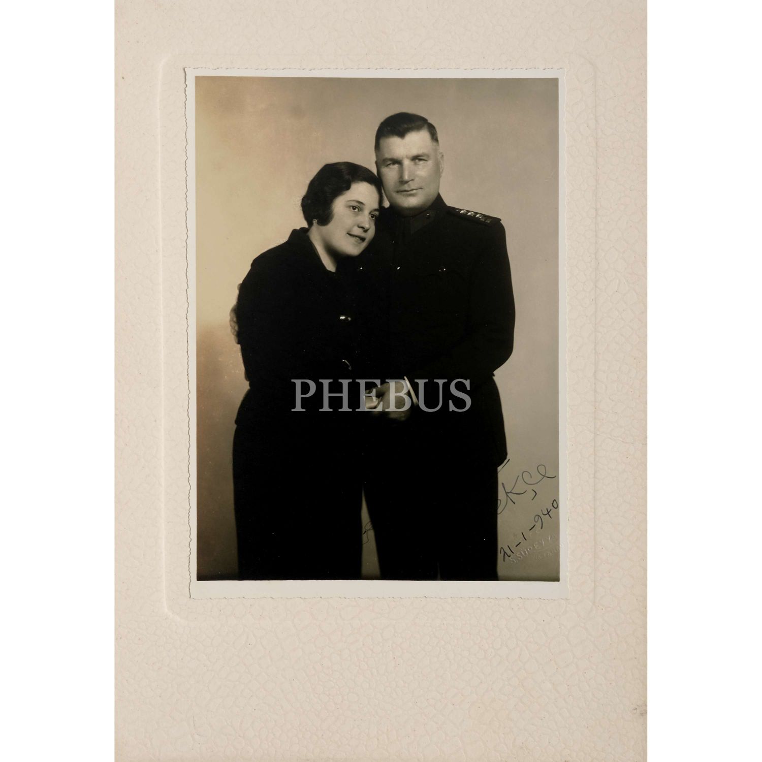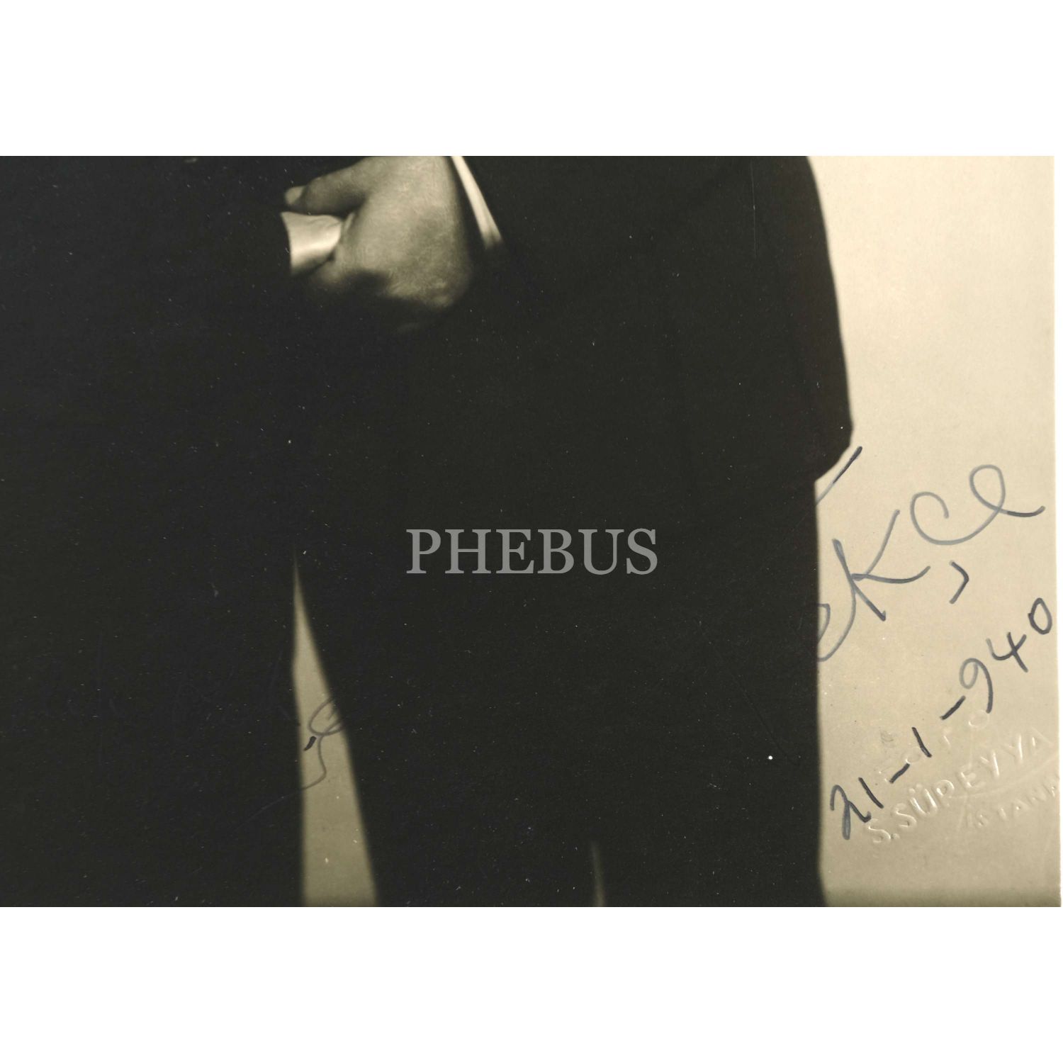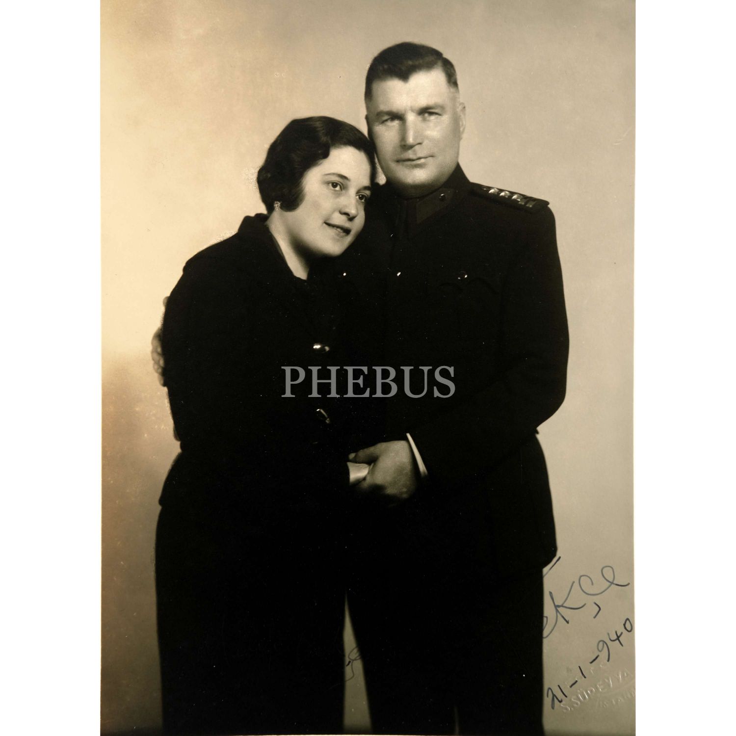 Mustafa Kemal Atatürk´ün refakat subaylığını yapan İsmail Hakkı Tekçe´nin eşiyle beraber çektirdiği ve her ikisinden de imzalı hatıra fotoğrafı, 24x34 cm...